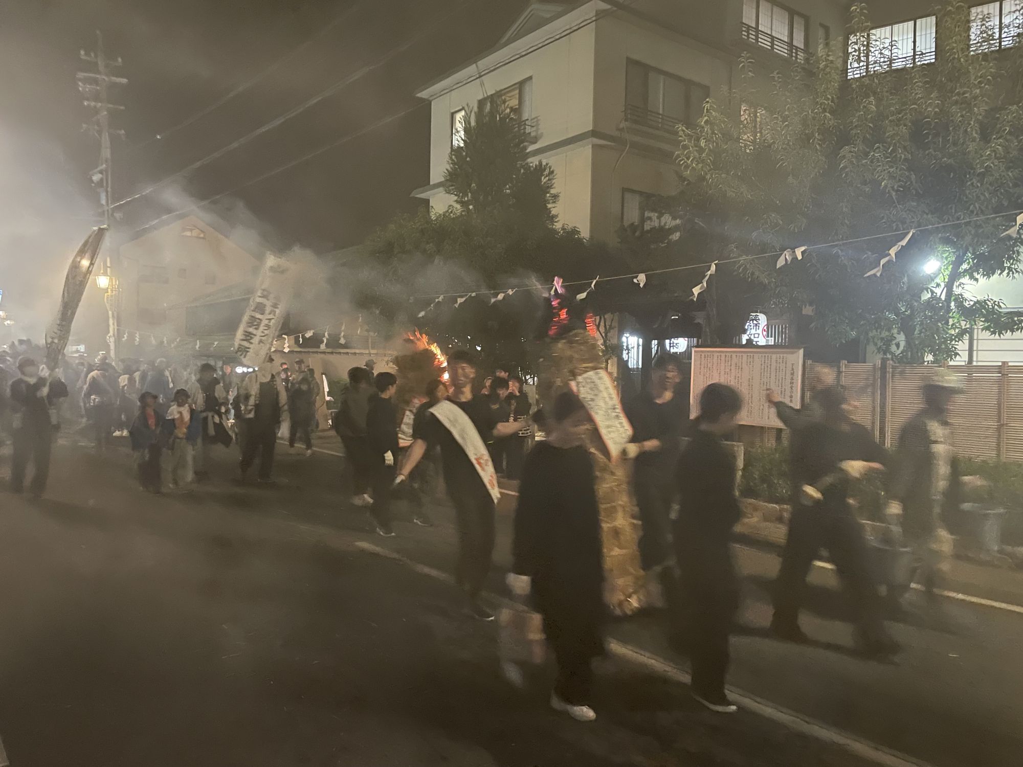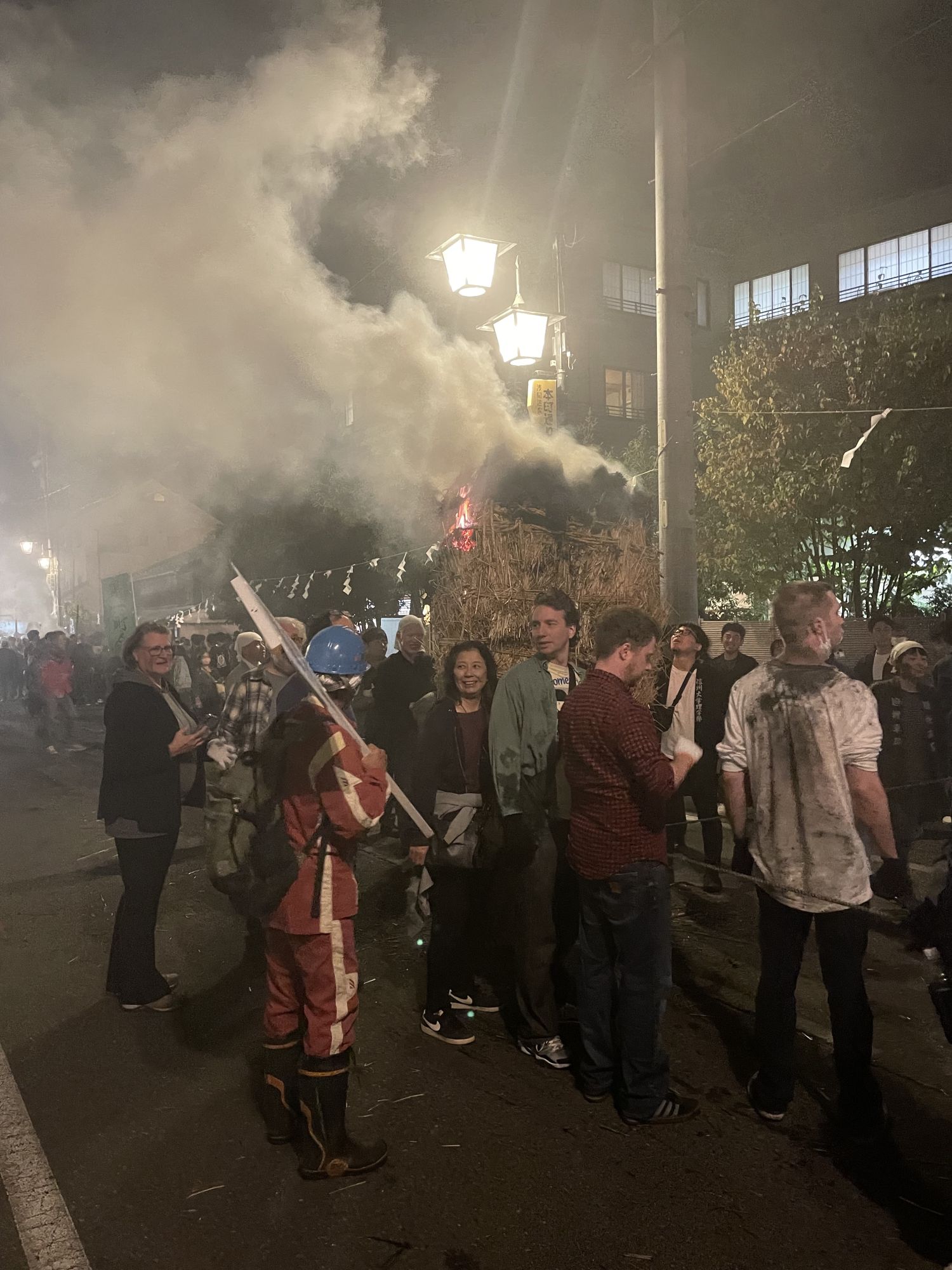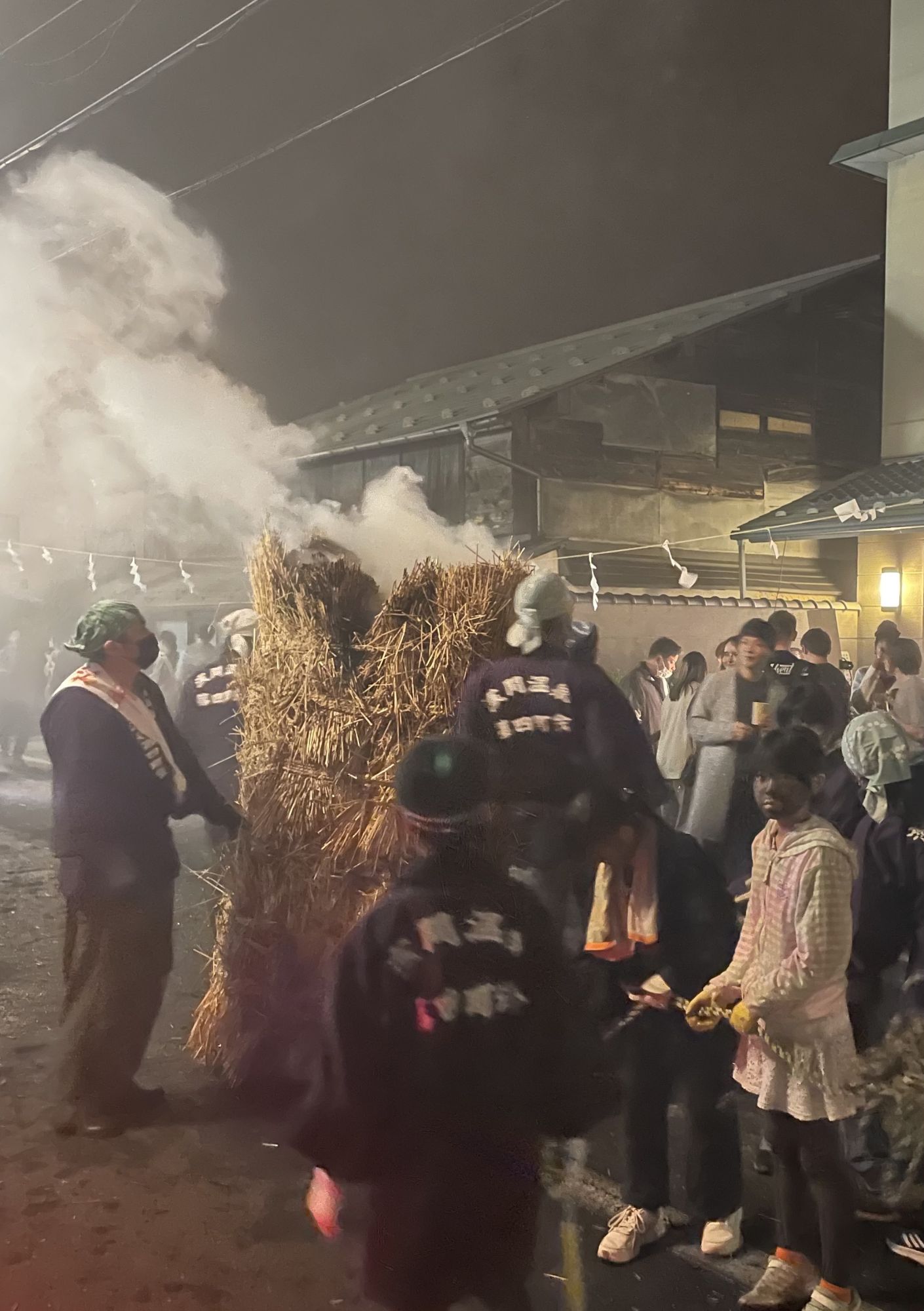 Шествие в сопровождении освященных факелов, зажженных местными жителями, которые проносят или вернее сказать протаскивают по улицам Асама Онсен.