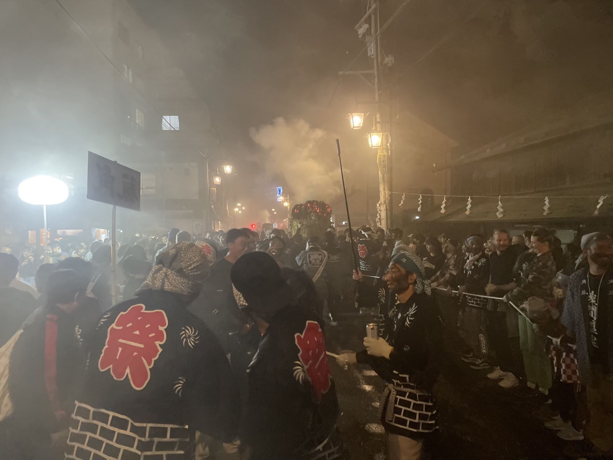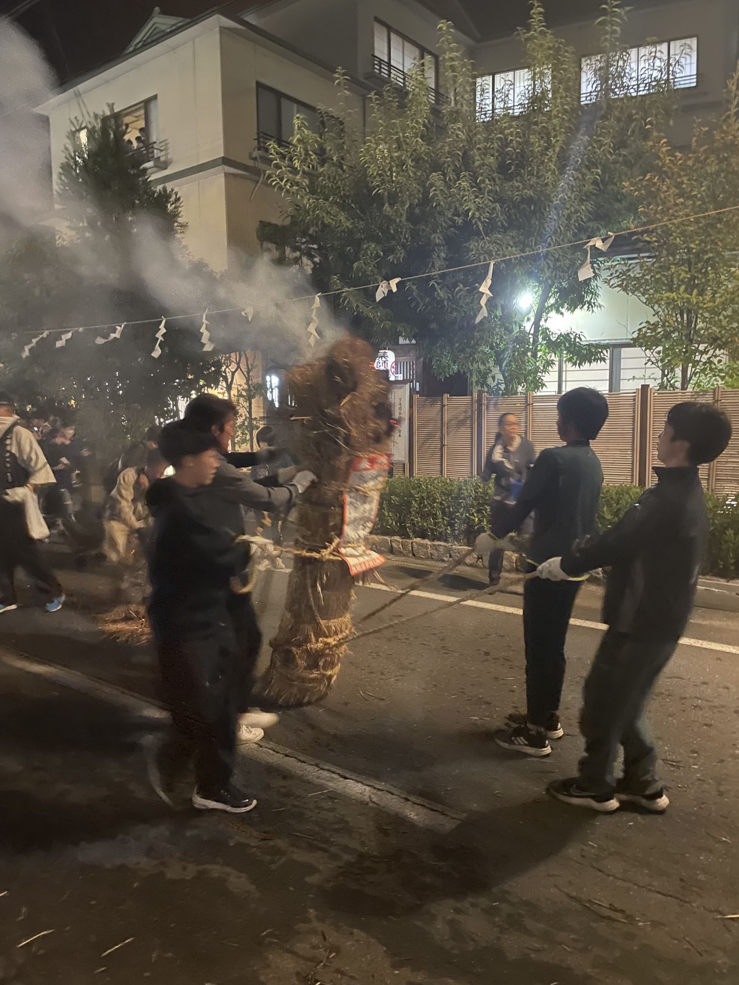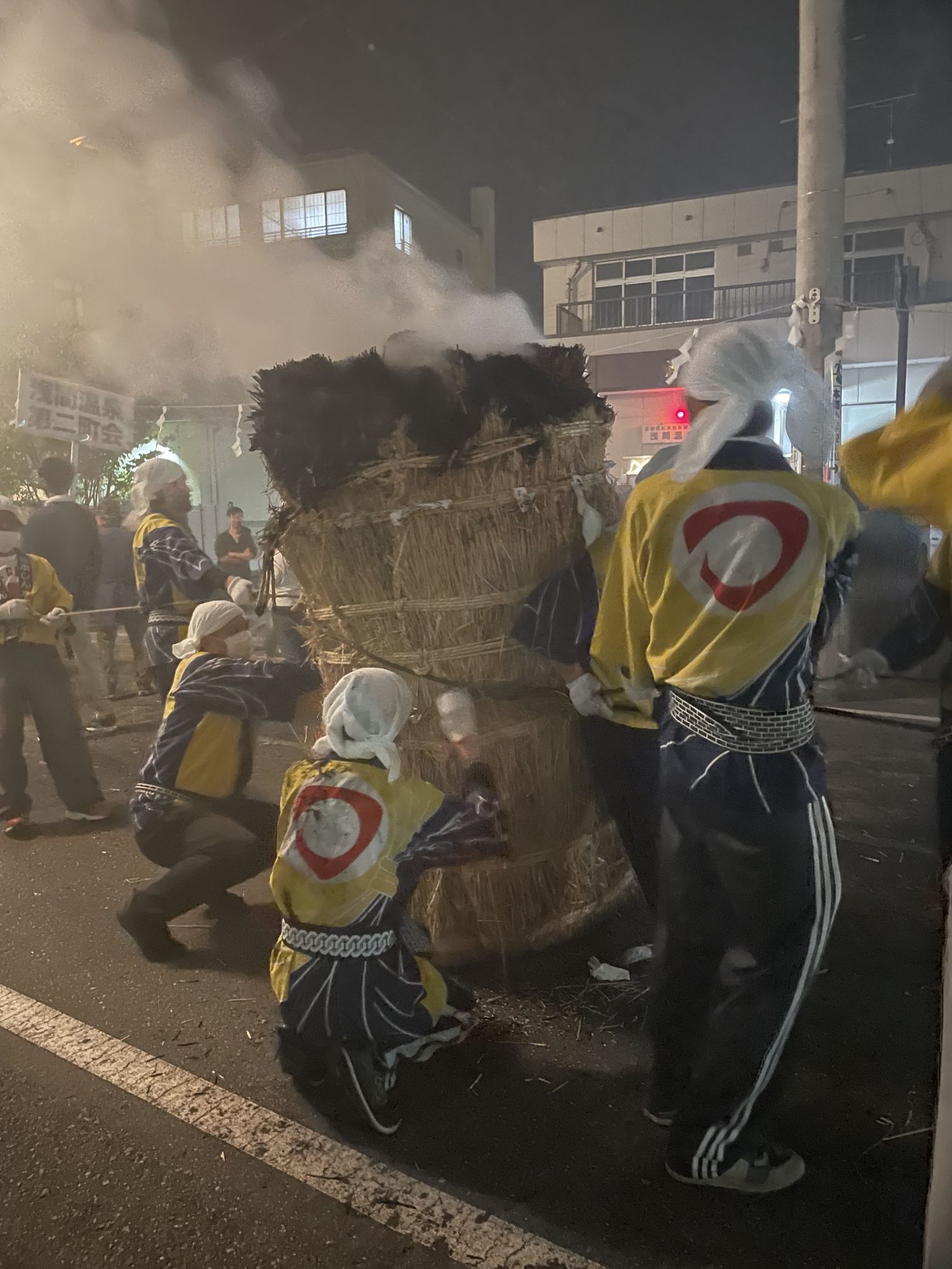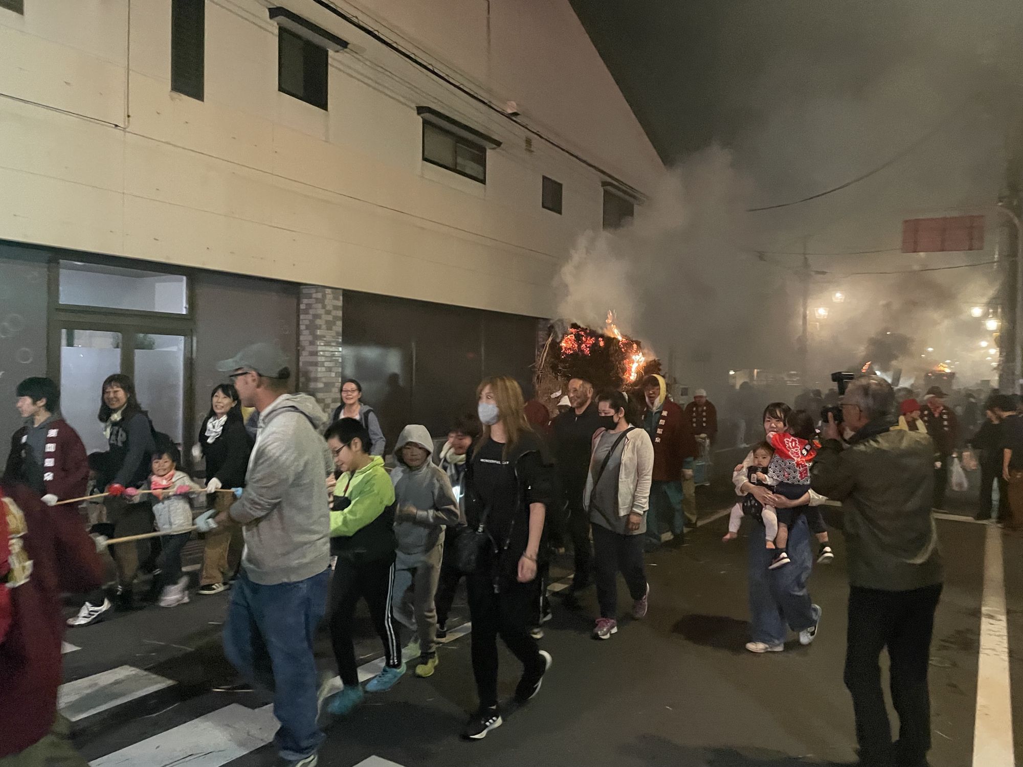 Шествие в сопровождении освященных факелов, зажженных местными жителями, которые проносят или вернее сказать протаскивают по улицам Асама Онсен.