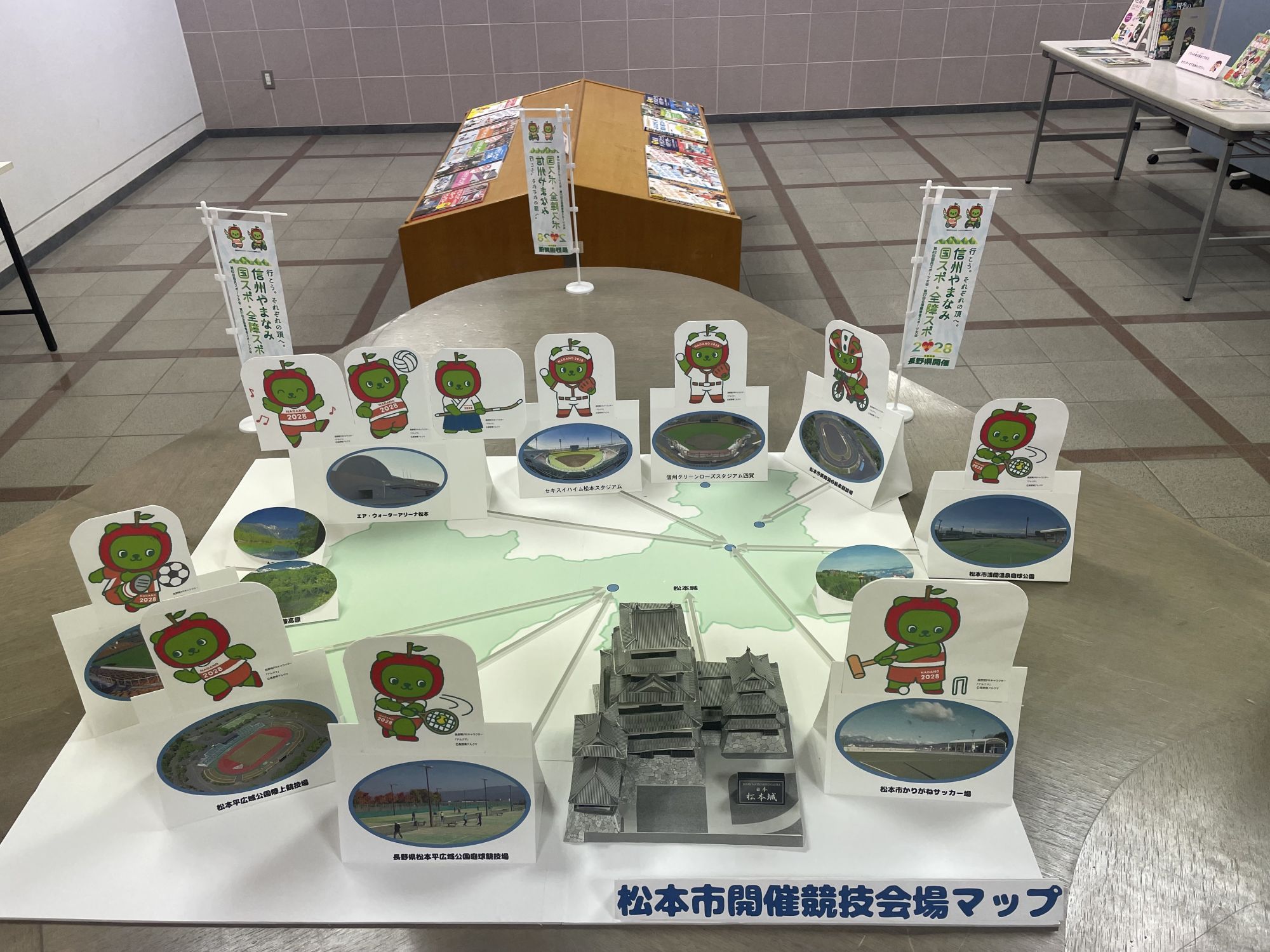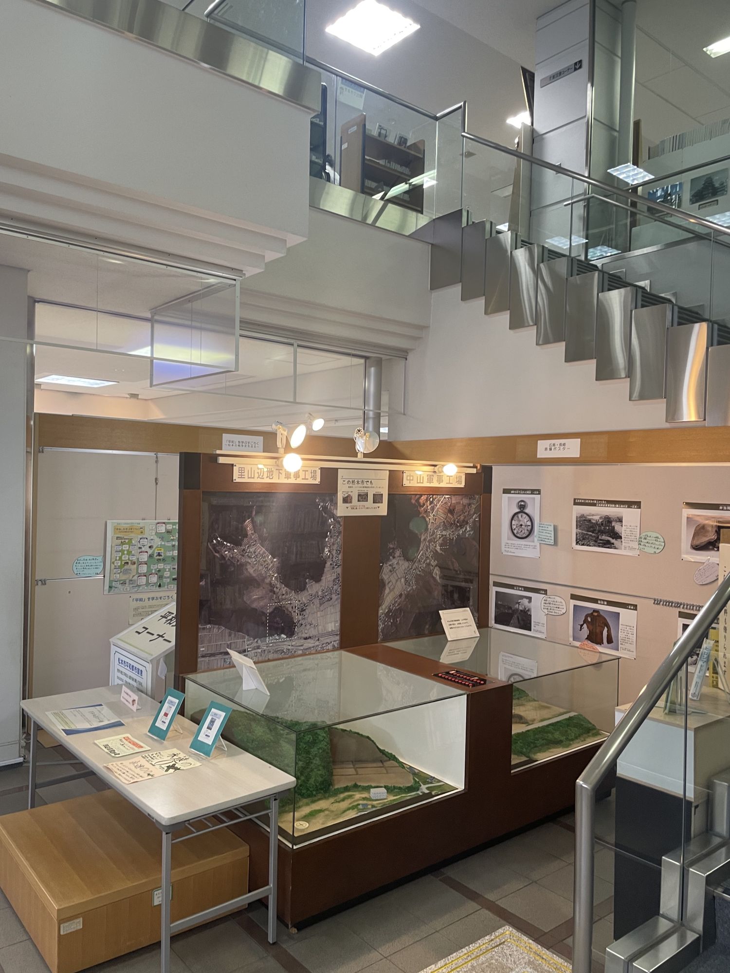 Первый этаж — это ворота в путешествие. Именно здесь вас встречает большая карта Японских Альп, рельефная и подробна. Это уголок посвящен истории и географии Мацумото.