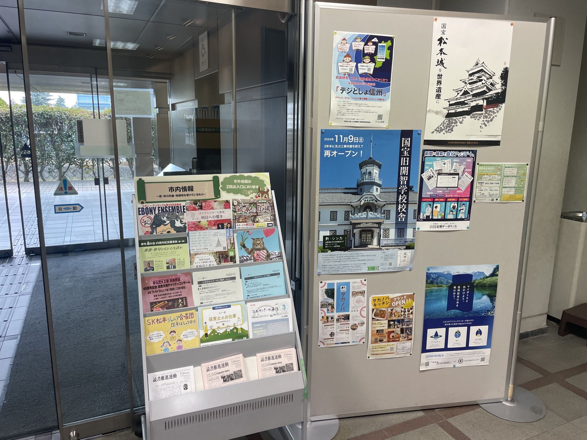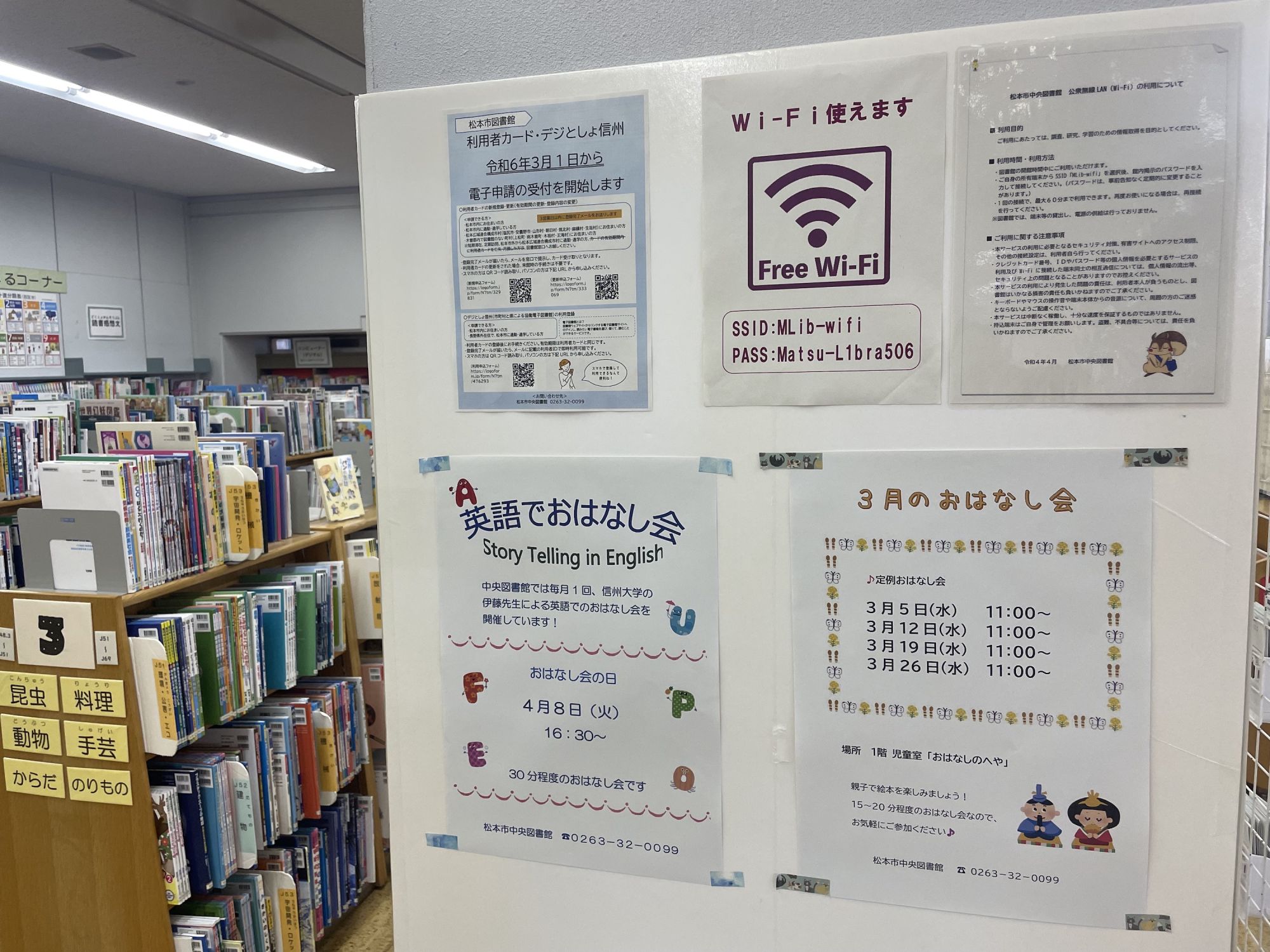 Адрес: 2 Chome-4-40 Arigasaki, Matsumoto, Nagano 390-0861. Официальный сайт: lib.city.matsumoto.lg.jp Часы работы: Вторник — пятница: 9:30–19:00Суббота, воскресенье и праздничные дни: 9:30–17:00 Выходные дни: Понедельник (если понедельник — праздничный день, библиотека открыта, а следующий день становится выходным) Каждая четвёртая пятница месяца (если она совпадает с праздником, выходной переносится на предыдущий день), а так же с 29 декабря по 3 января.