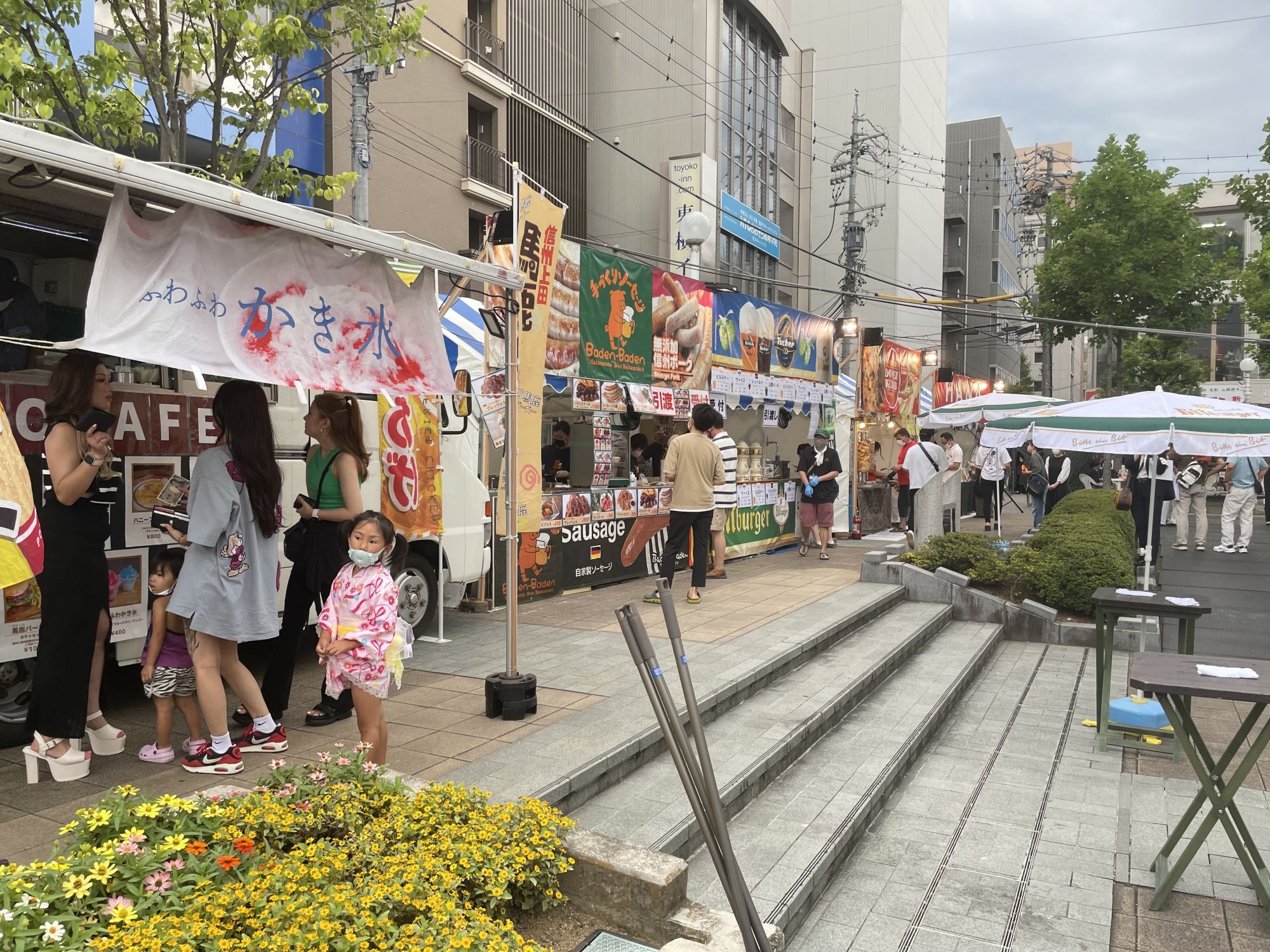 По периметру расположились выездные лавки со всевозможной едой. В мероприятии участвуют и немецкий ресторан, и итальянская пиццерия, и индийский трак-фуд с кебабом, и корейская лавка и множество других заведений.