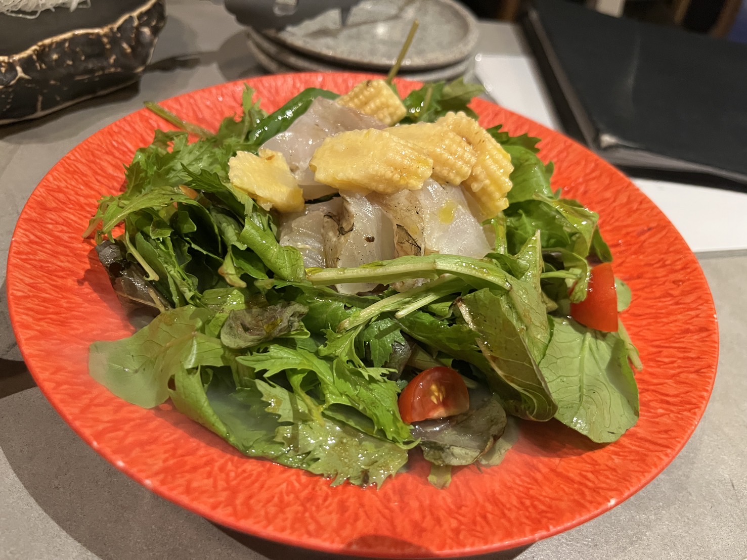 Основной акцент — блюда, приготовленные методом варияки (藁焼き): солома используется для обугливания поверхности продуктов, чаще всего тунца, сыра или местных мясных деликатесов. Такая техника придаёт лёгкий дымный аромат и выделяет вкусовую глубину ингредиентов.