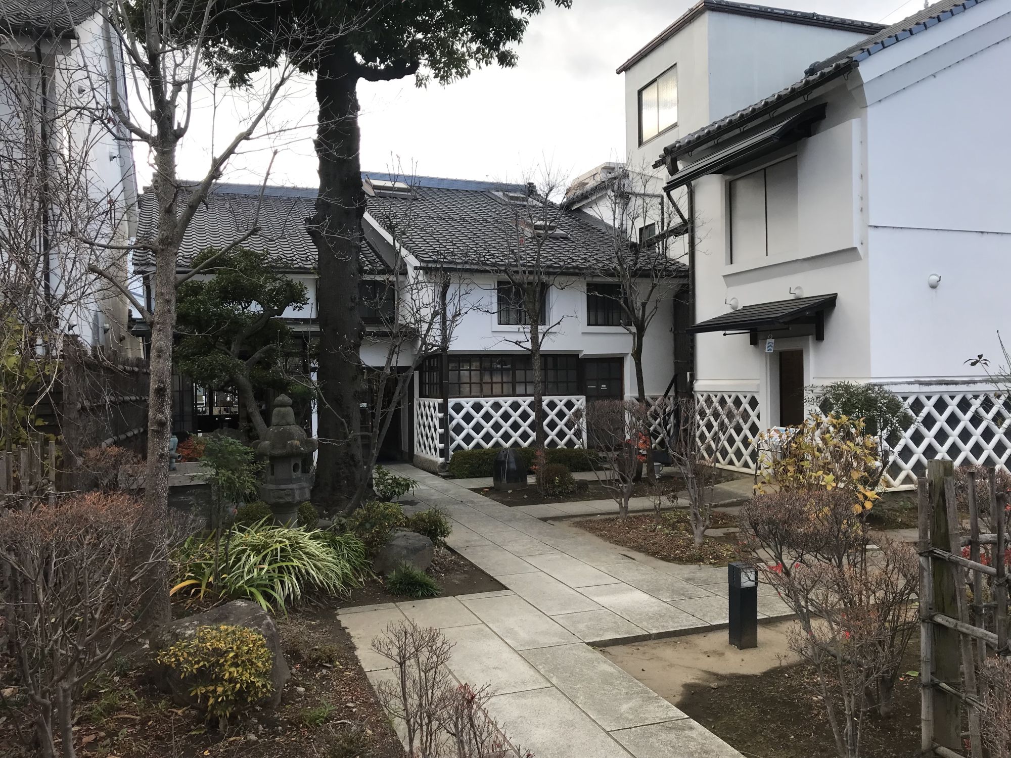 За зданием с основной композицией находится небольшой садик в традиционном японском стиле и небольшое строение, когда-то выполнявшее функцию склада. Теперь здесь располагается выставка весов использовавшихся при продаже и производстве натурального шелка.