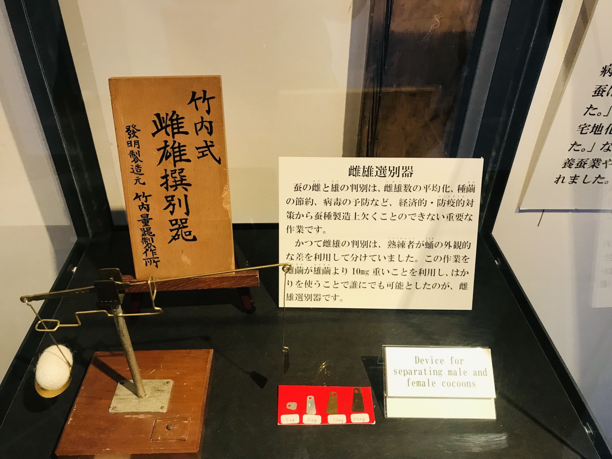 Один из экспонатов —  небольшие весы с помощью которых определяли половую принадлежность коконов шелкопряда. Коконы с женскими особями ценились выше, так как из них можно было получить больше нитей, чем из мужских.