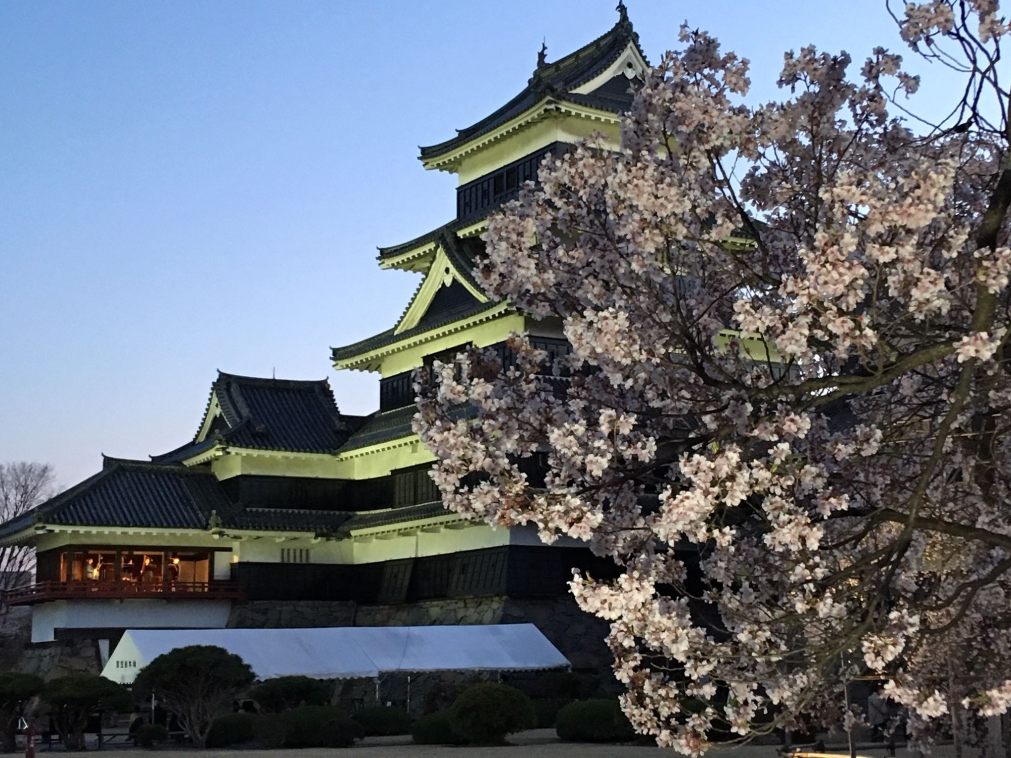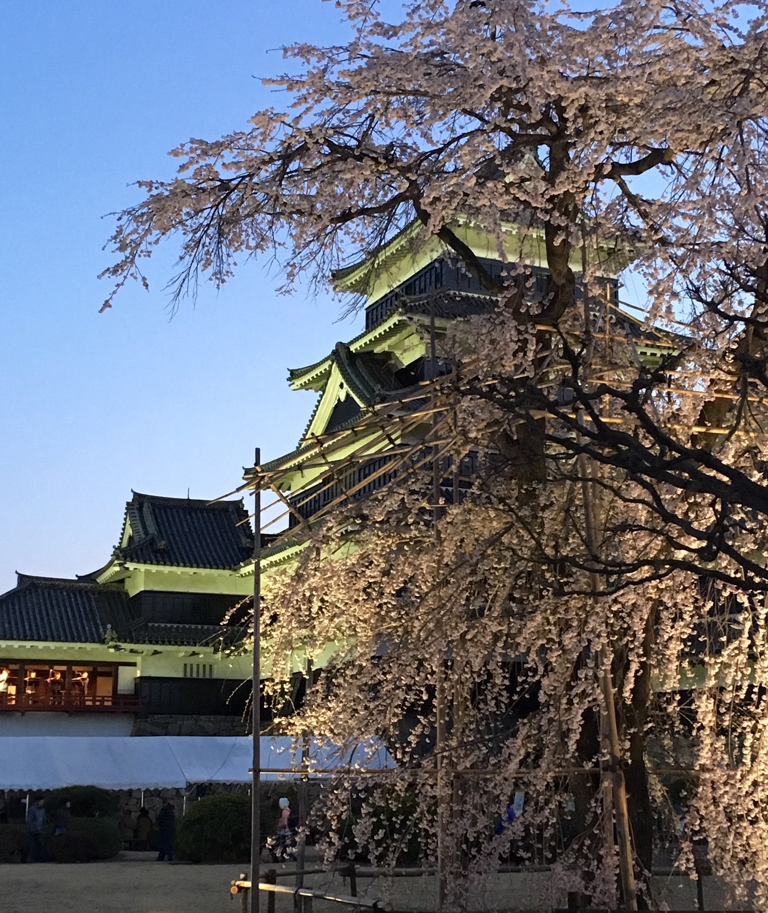 Неделя любование сакурой в саду при замке Мацумото подходит к концу. Завтра последний день, когда можно увидеть красавицу сакуру с подсветкой, на фоне старинного замка.
