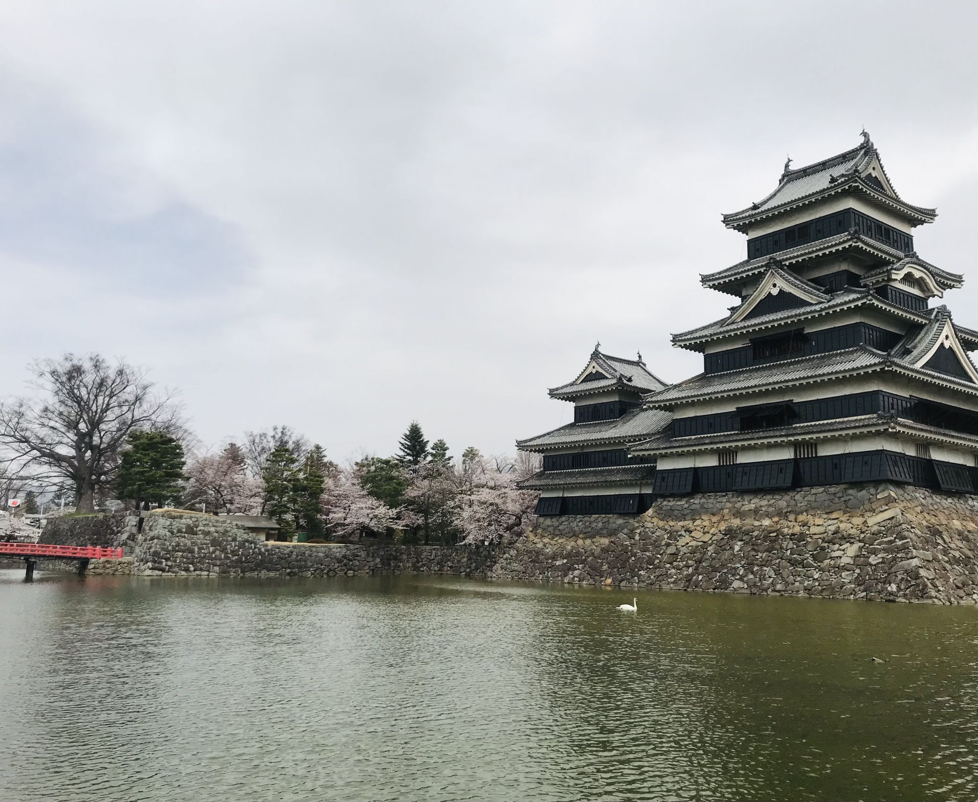 Замок Мацумото, как всегда завораживает картинными видами на фоне розовых облаков сакуры.