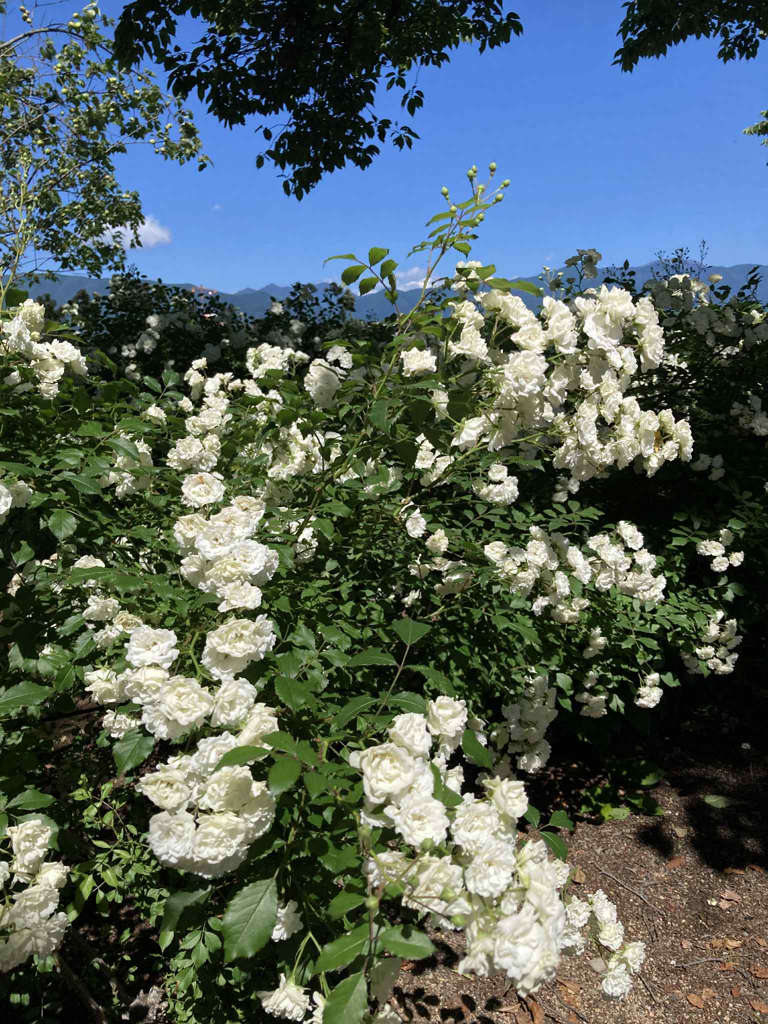 В конце мая – начале июня в саду роз Skyパーク в Мацумото (信州スカイパーク, Shinshu Sky Park) начинается цветение роз, и сейчас здесь во всю цветут ранние сорта. В частности, жёлтая двойная роза «モッコウバラ» (Mokkou‑bara), создающая живописный арочный тоннель, уже в полном цвету и манит ароматами.