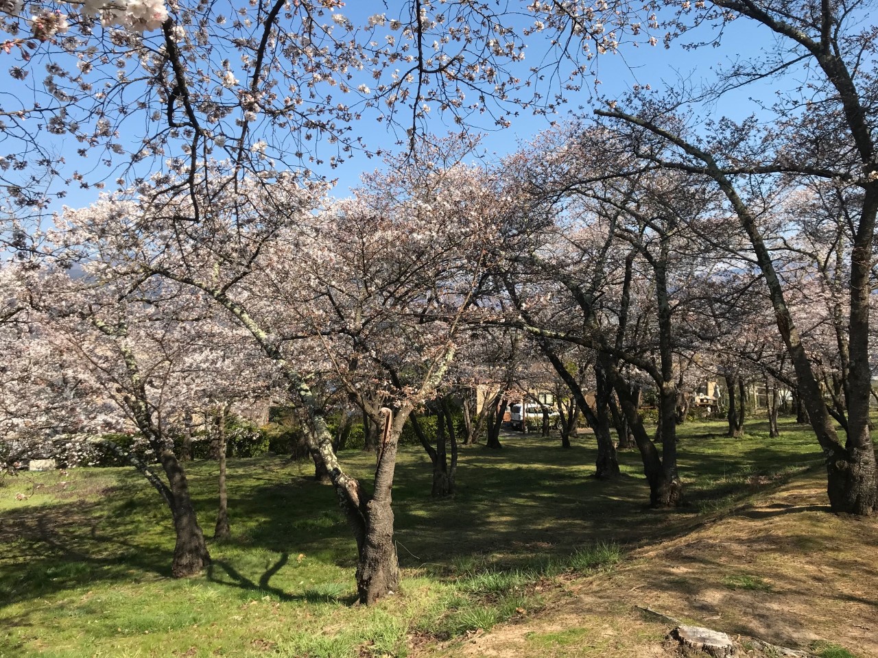 Один из самых немноголюдных парков в Мацумото — парк Джояма, во время пандемии нового короновируса практически пустует. Лишь живущие по соседству семьи выходят прогуляться под цветущей сакурой.