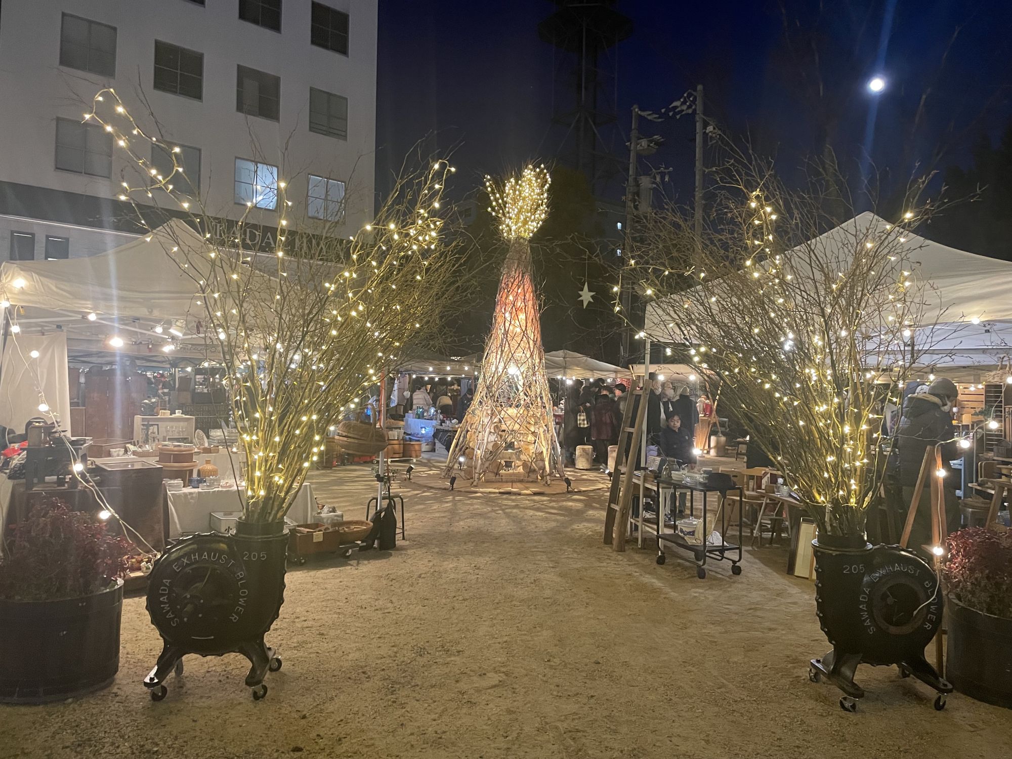 В преддверии новогодних праздников Мацумото, один из самых живописных городов Японии, погрузился в атмосферу волшебства, став местом проведения яркой рождественской ярмарки. 14 и 15 декабря на площади перед торговым центром Parco и на углу улицы Навате собрались десятки участников, чтобы подарить жителям и туристам уникальное праздничное настроение. Площадь перед Parco стала центром притяжения для любителей музыки, рождественских угощений и ярких эмоций. Здесь звучали музыкальные композиции, а модные диджеи задавали тон праздничному настроению, создавая атмосферу веселья и уюта. Множество торговых лавок предлагали не только местные деликатесы и горячие напитки, но и традиционные рождественские угощения, такие как свежие теплые вафли, горячий чай и кофе, которые согревали сердца прохожих.