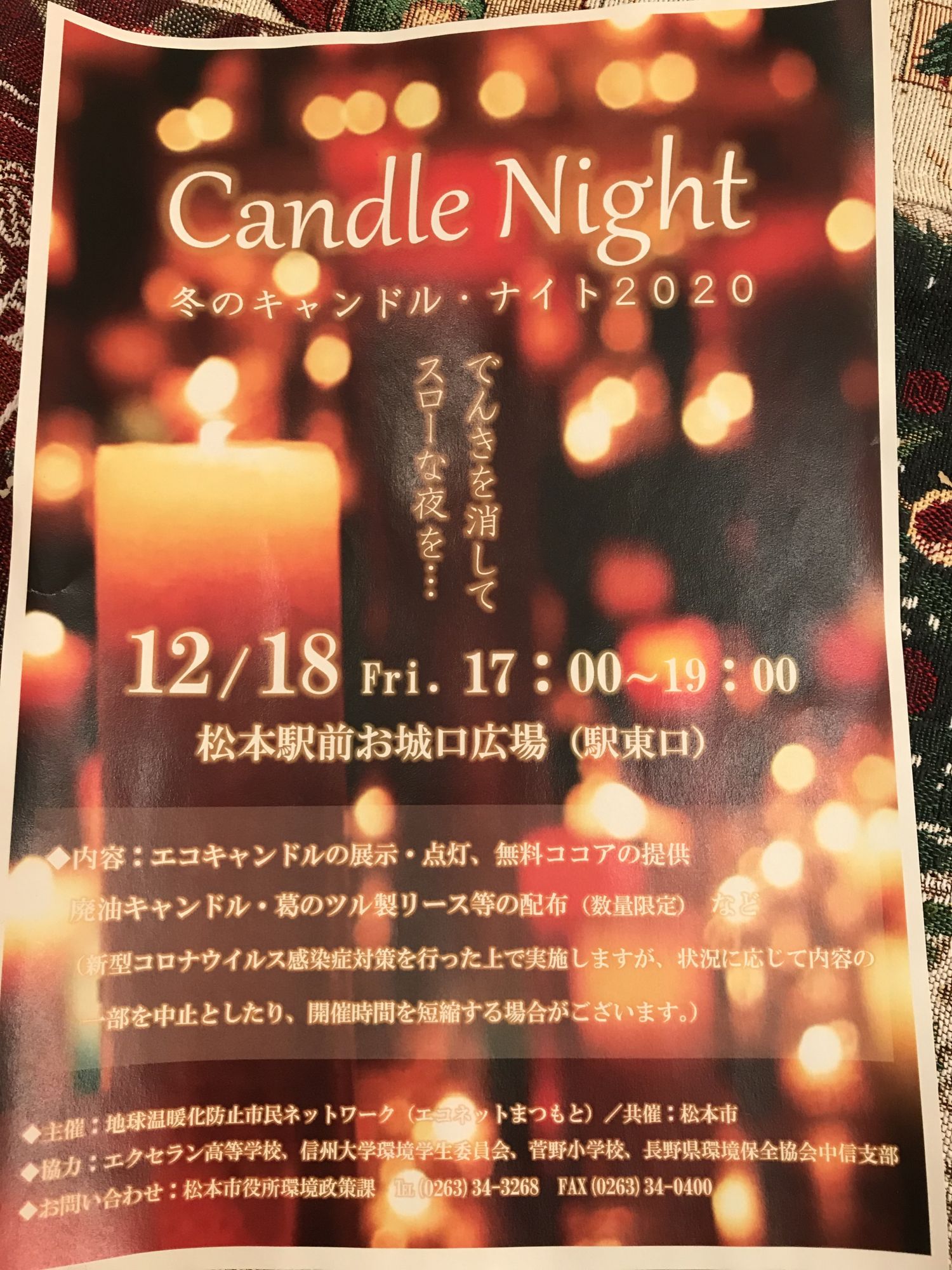 При администрации города Мацумото функционирует некоммерческая организация «Горожане против глобального потепления». Активисты переодически проводят разнообразные мероприятия, общаются с молодежью и активно пропагандируют экологически безопасную продукцию. На протяжении последних 15ти лет, каждый год в третью пятницу декабря на площади расположенной напротив вокзала проходит «Ночь свечей»