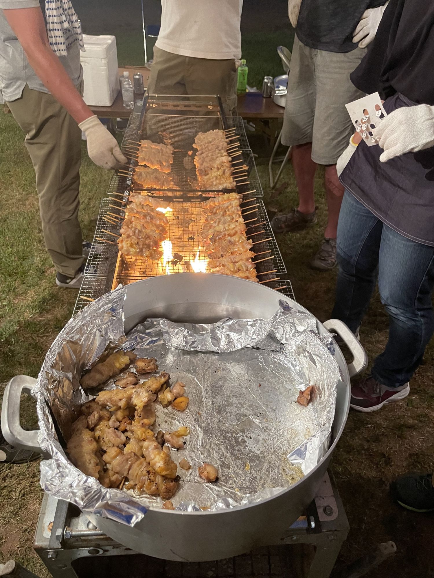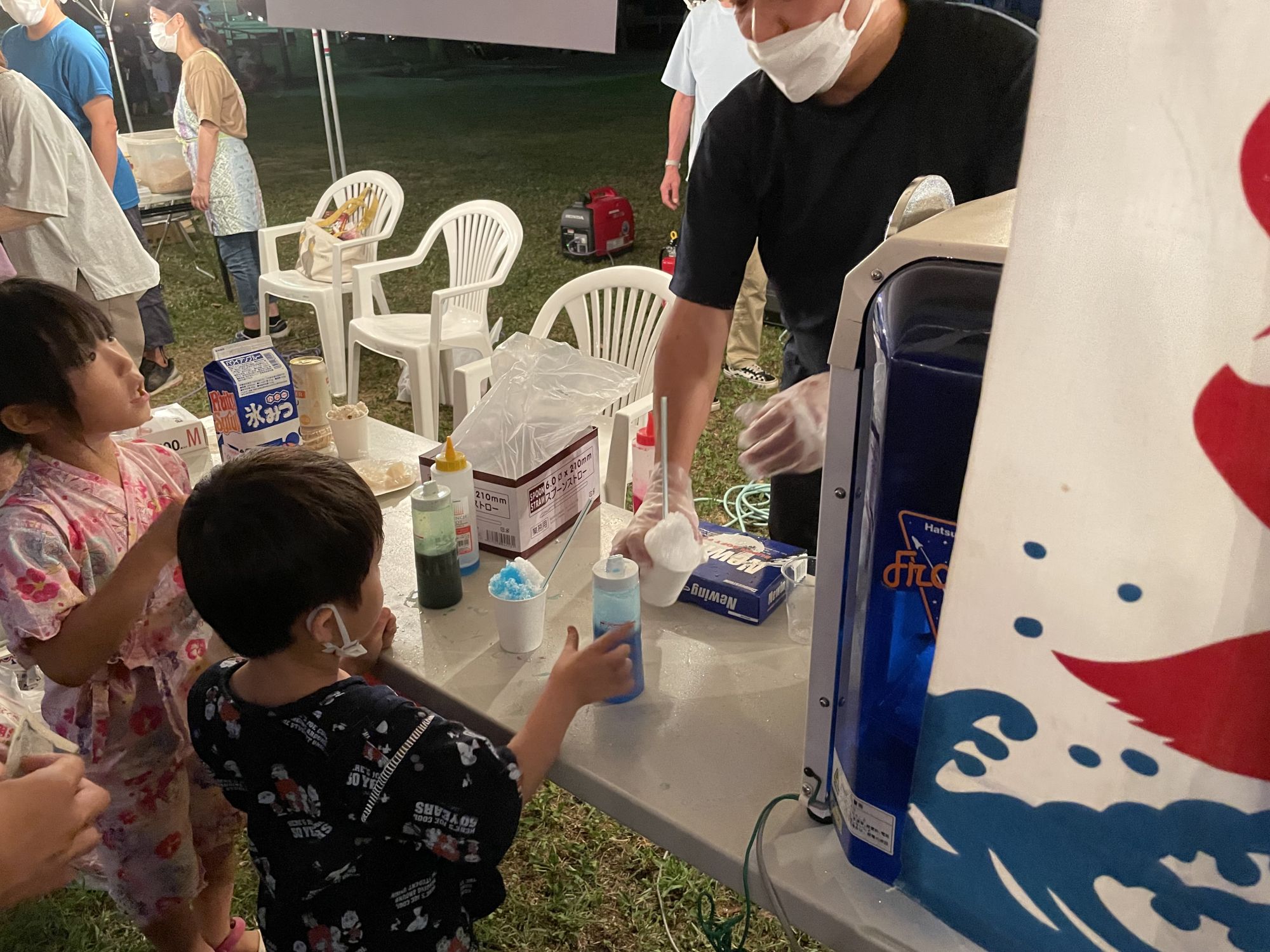 Здесь же можно было отведать традиционные фестивальные угощение — якисобу и якитори. Пока взрослые наслаждались августовским вечером и прохладным пивом, дети поедали «каки-гори» — тёртый лёд, политый сиропом.