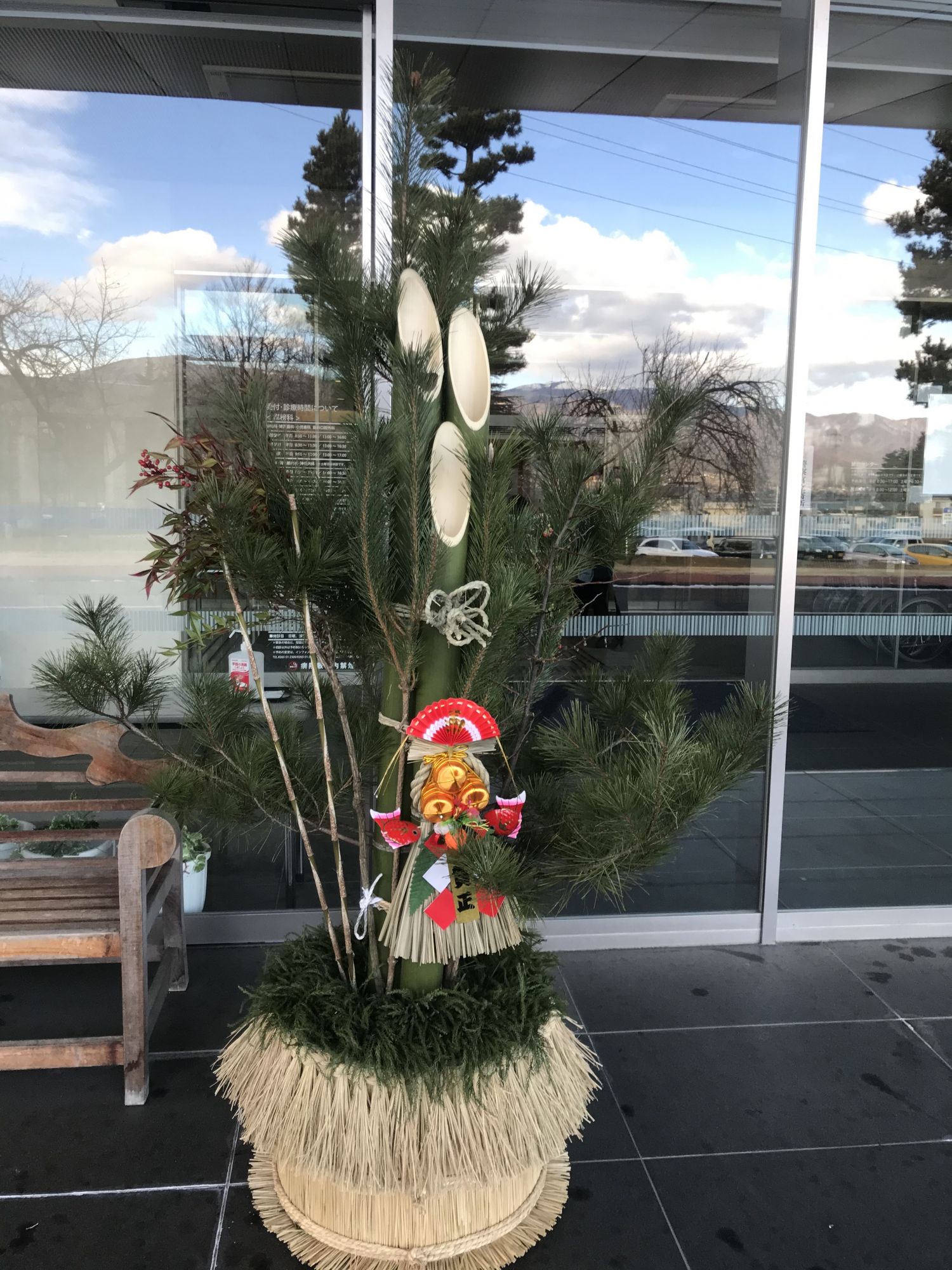 Не менее популярную новогоднюю декорацию кадомацу обычно можно увидеть у входа в дом , а чаще всего в какое-либо учреждение. Каждый элемент кадомацу имеет свой смысл. Так, сосна символизирует здоровье и долголетие, бамбук- благородство и стойкость, папоротник — чистоту и процветание.