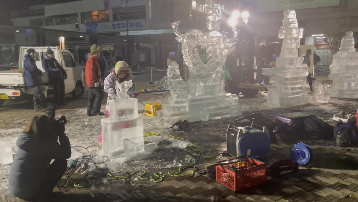 Ежегодный фестиваль ледяных скульптур стартовал в Мацумото, вновь привлекая внимание жителей и гостей города. Работы начались в пятницу вечером на площади возле вокзала, и уже с субботнего утра посетители смогли увидеть несколько впечатляющих композиций.
