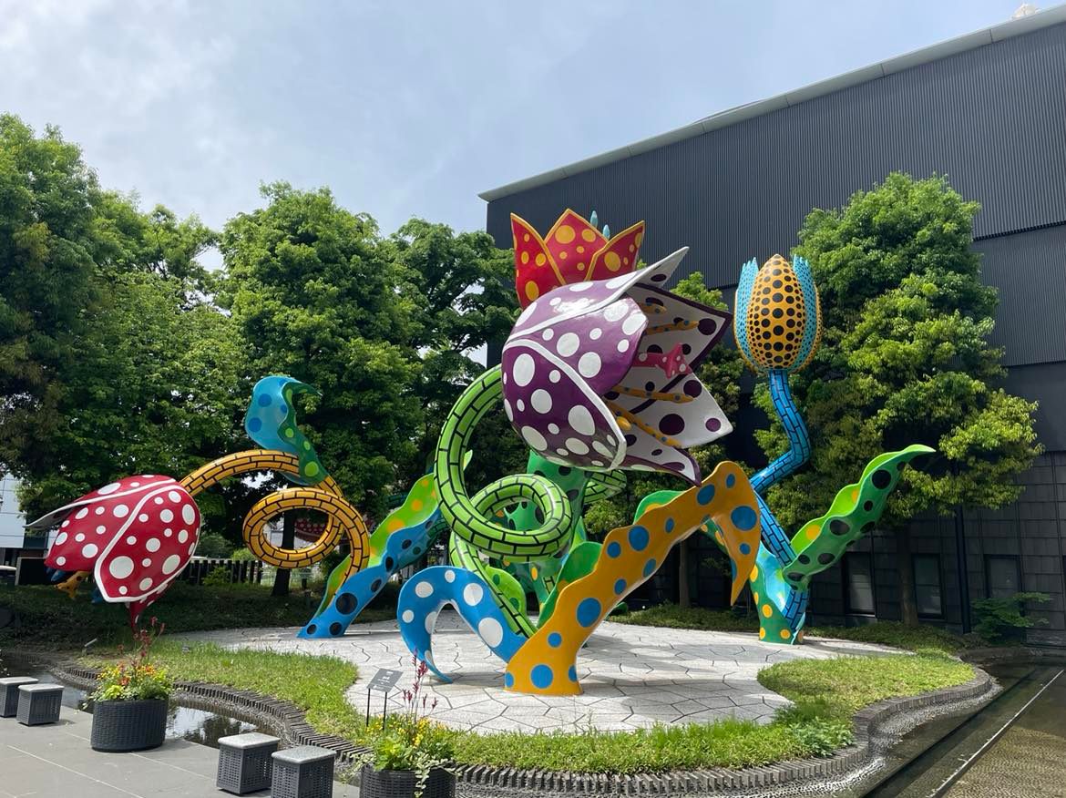 На третьем этаже музея открыта обновленная экспозиция всемерно известной художницы Кусама Яёи, рожденной в Мацумото. Её необычные работы можно увидеть в музеях разных стран. Родному городу художница подарила огромную композицию ярких цветов, установленных перед зданием музея.