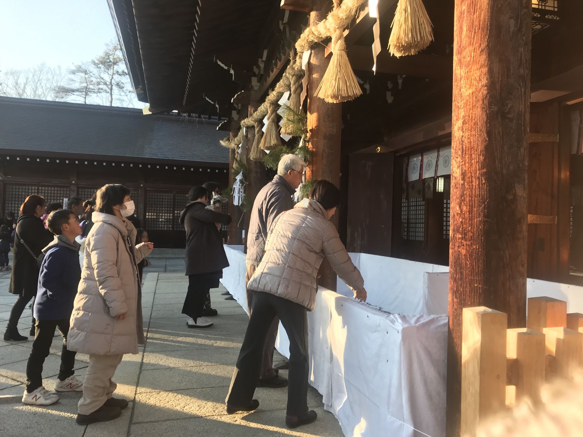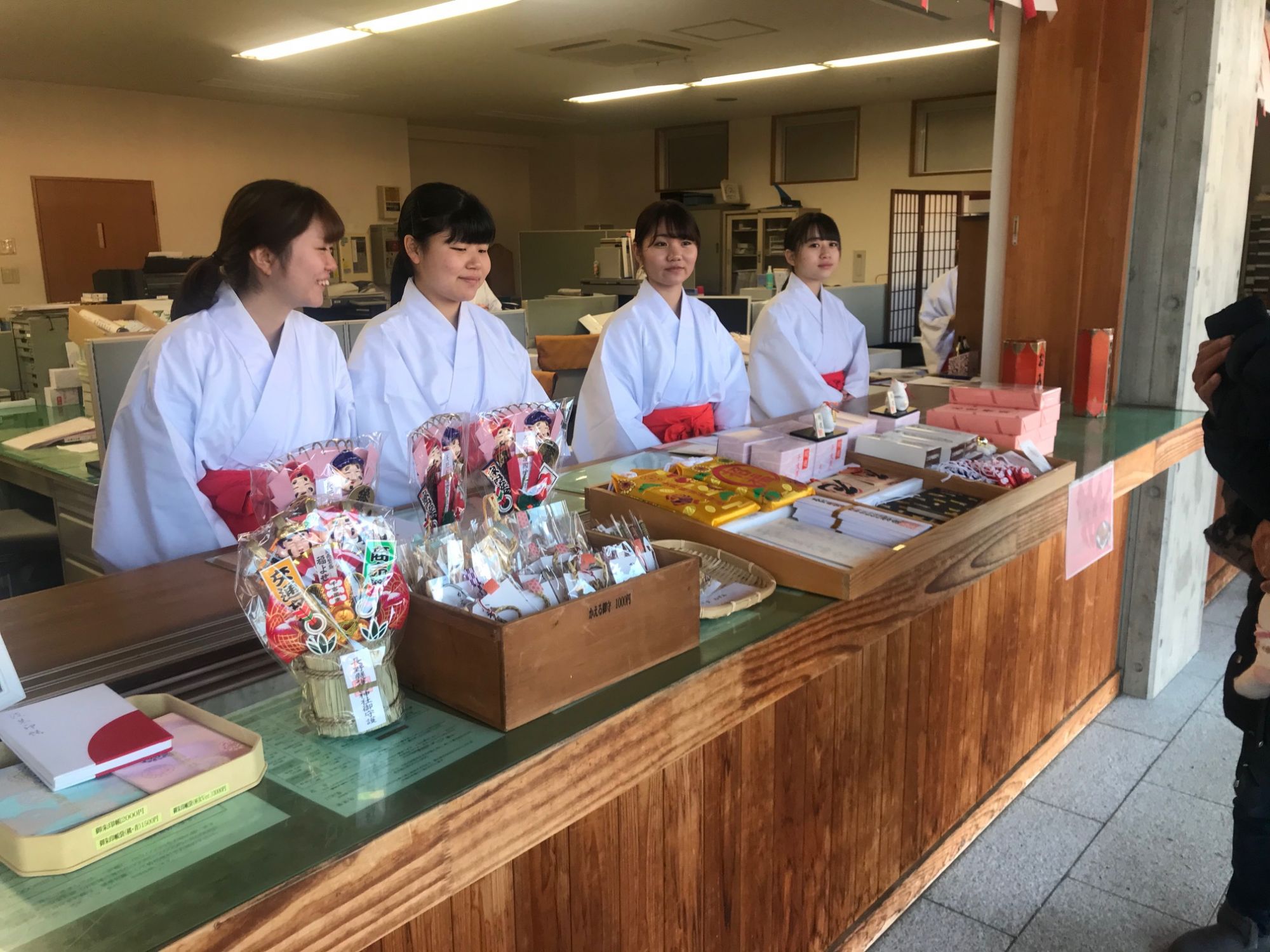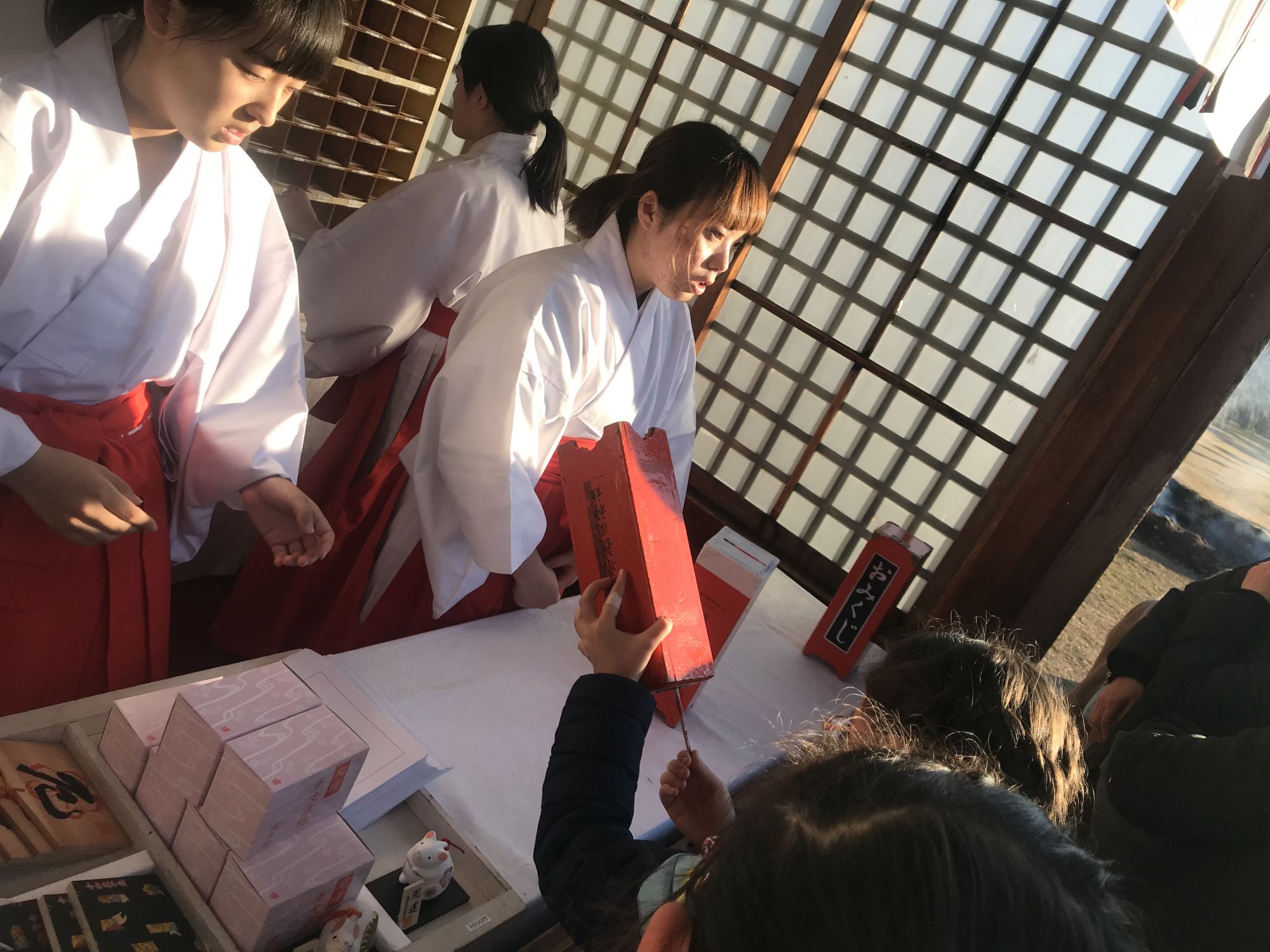 В первые дни января японцы приходят в храм, что бы помолится о благополучии в новом году, купить оберег и вытянуть предсказание.