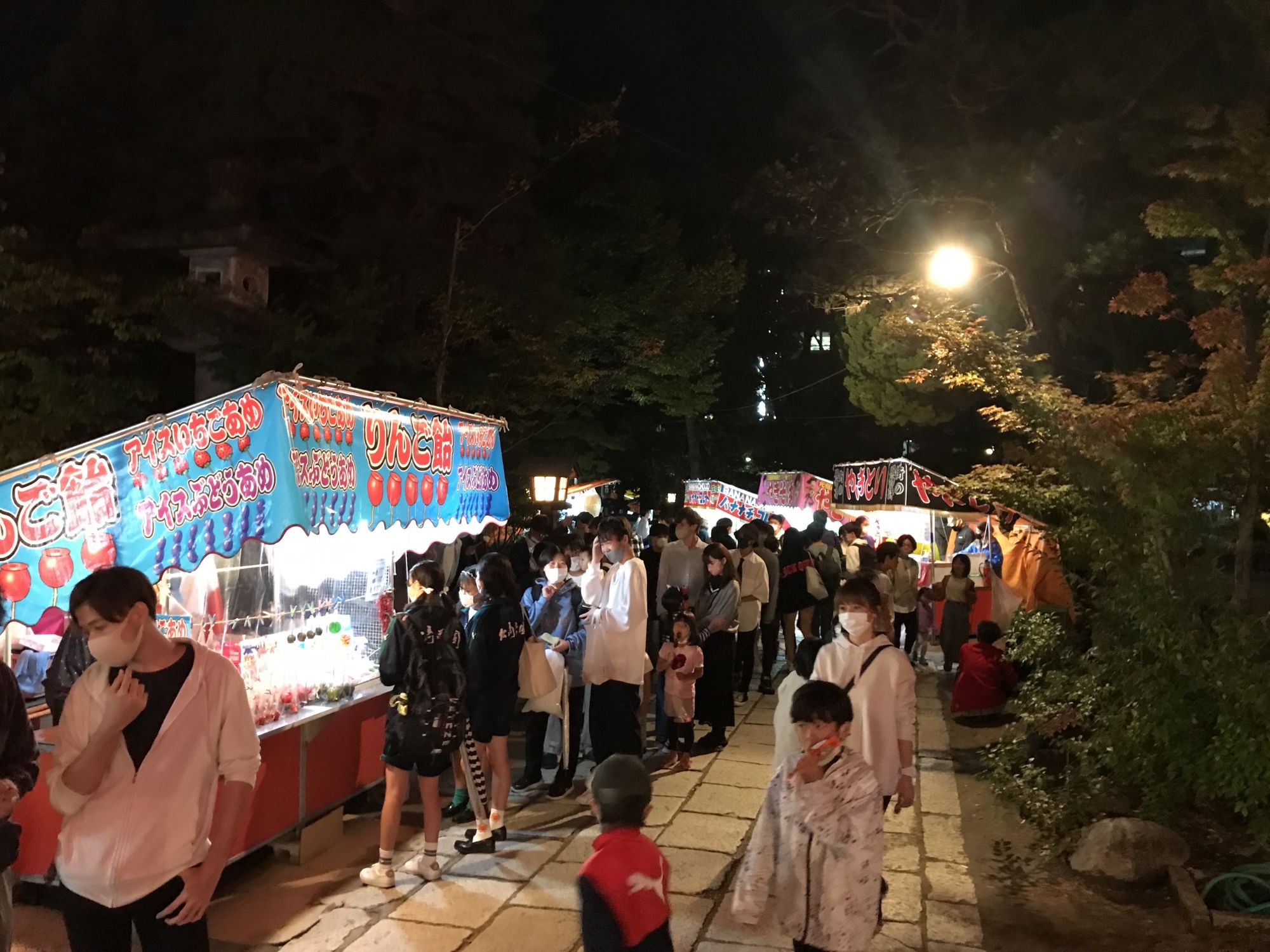 В эти выходные — с 1го по 3е октября проходит традиционный фестиваль храма. Как обычно улица Навате и дорожки территории при храме заполнились лавками с всевозможной уличной едой, детскими аттракционами и тирами.