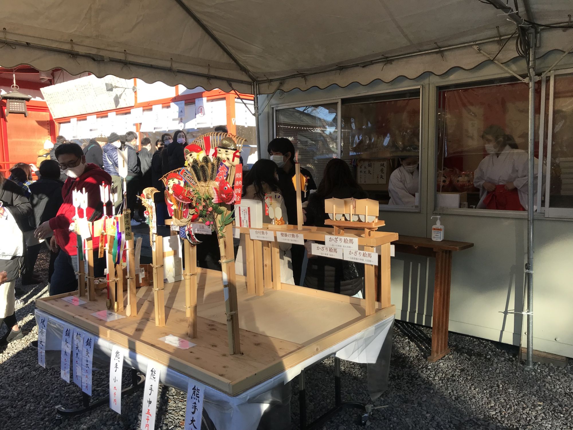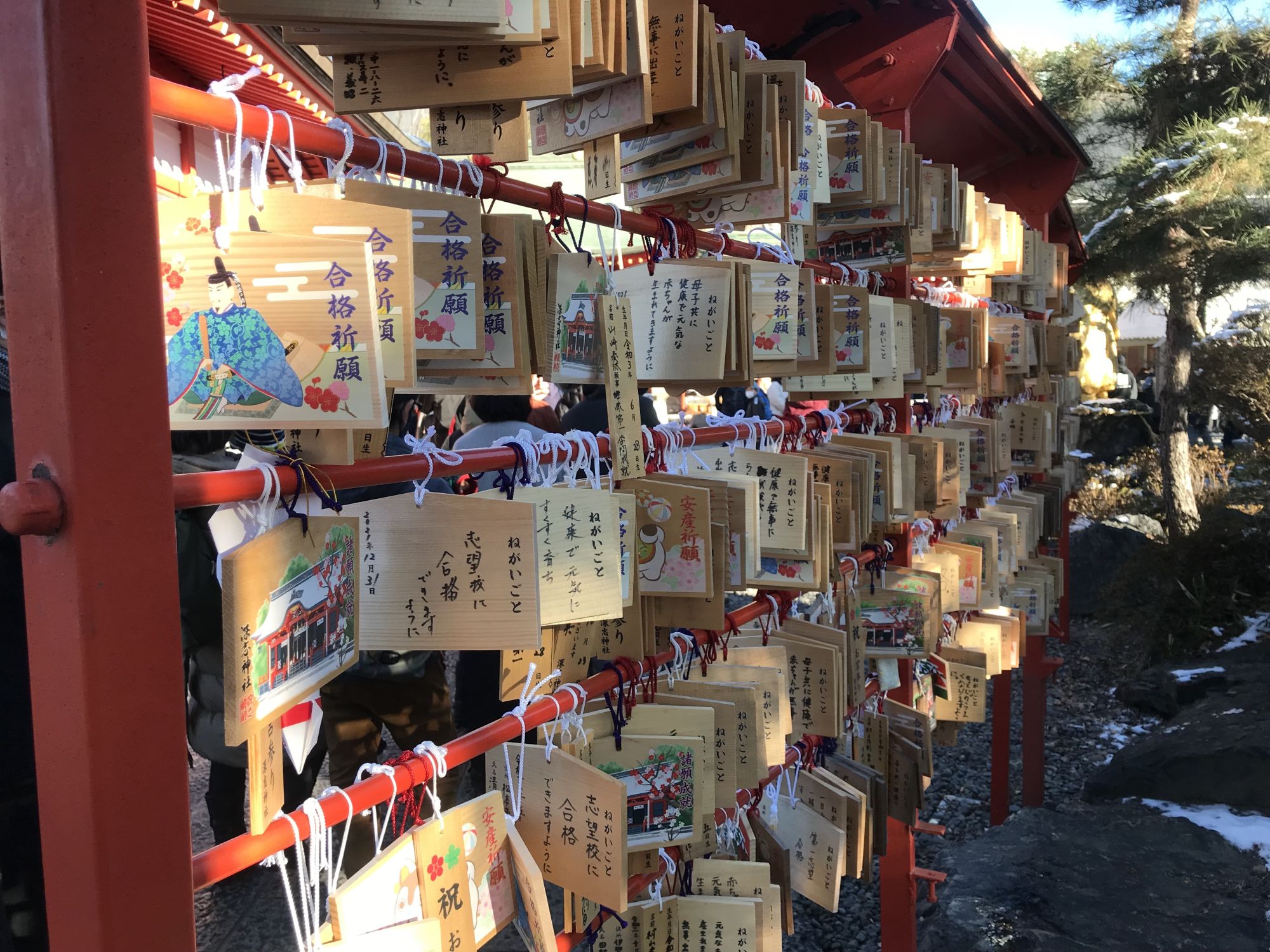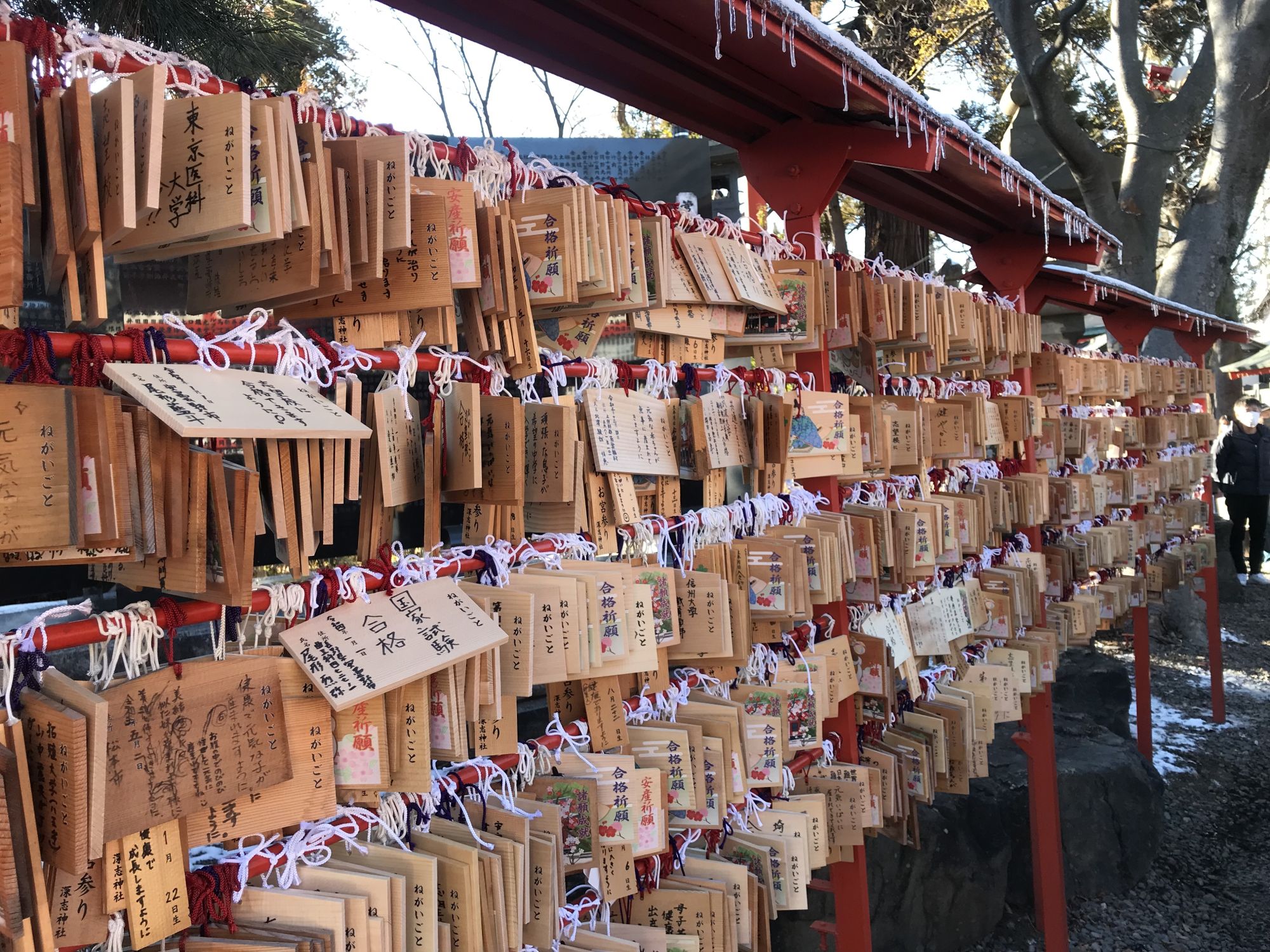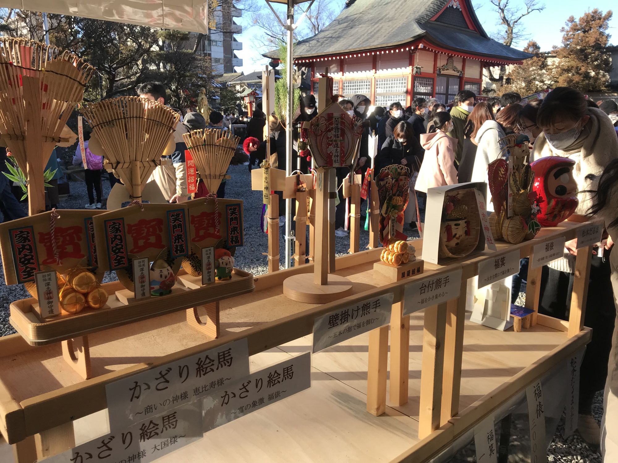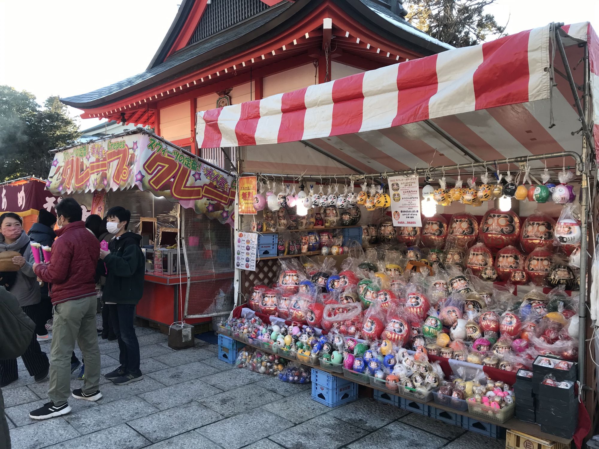 На территории храма, как обычно в новогодние дни можно приобрести всевозможные обереги и талисманы, а так же исполнителя желаний — дарума.