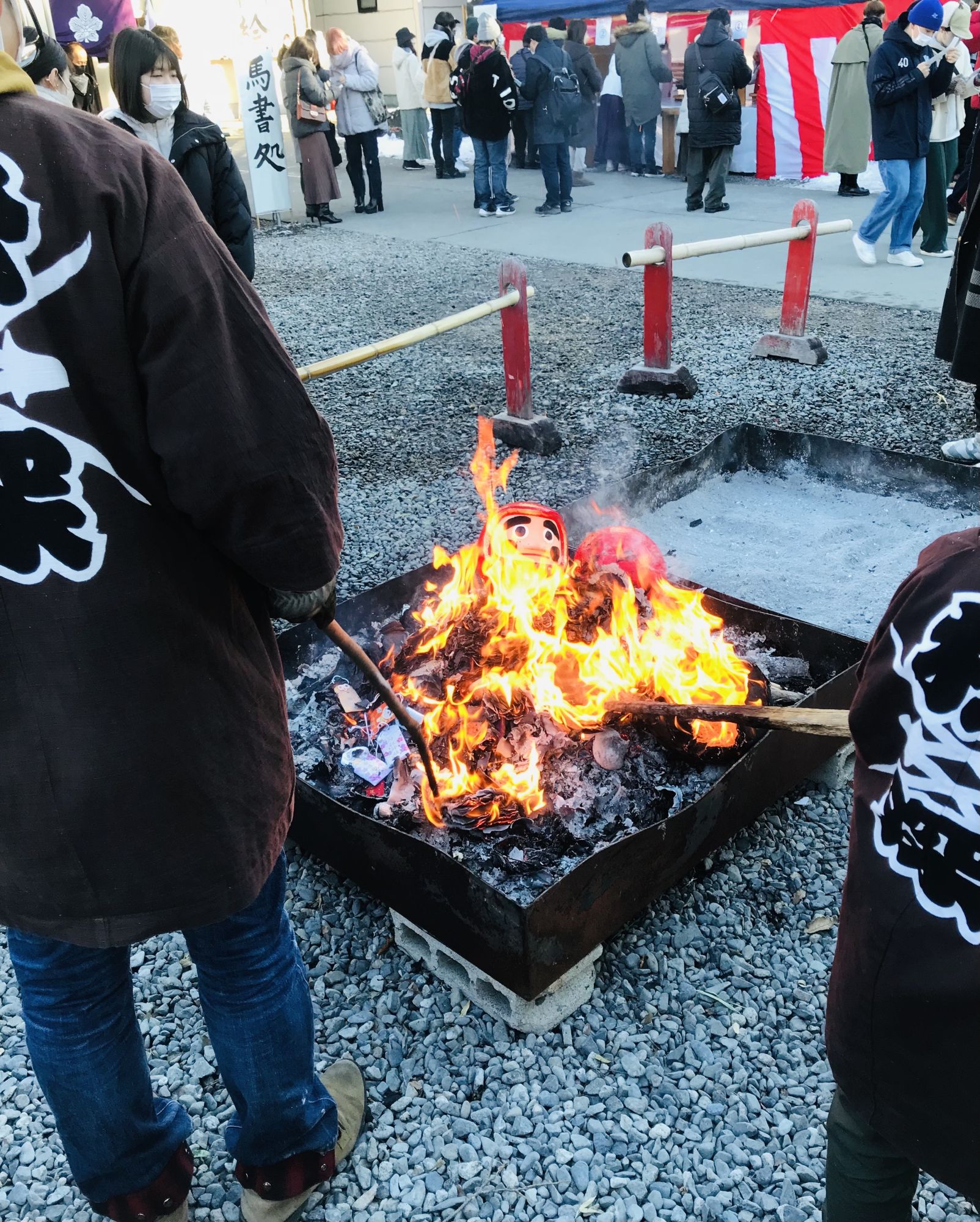 Прошлогодние украшения, а так же дарума, исполнивших желания, сжигают здесь же.