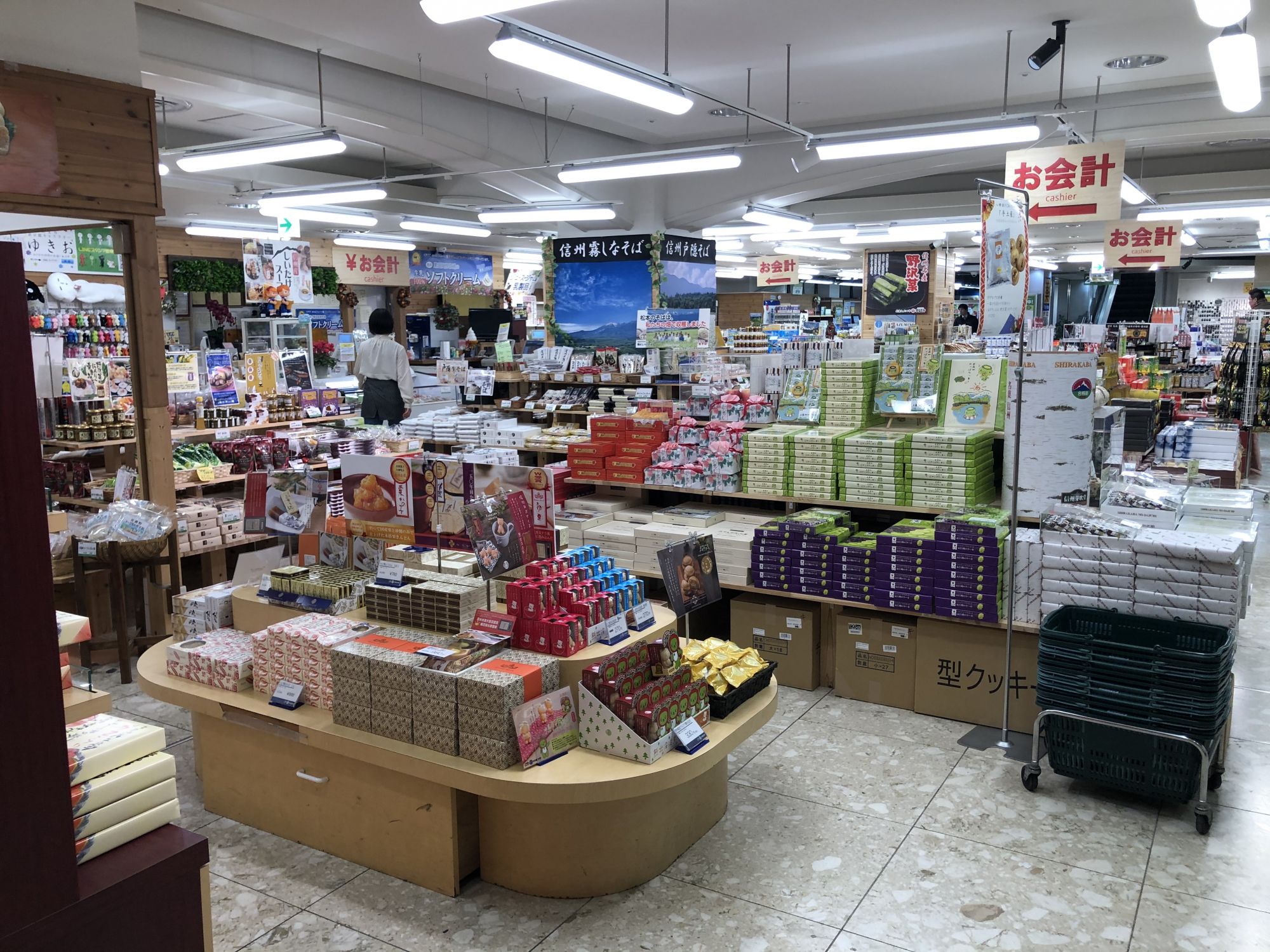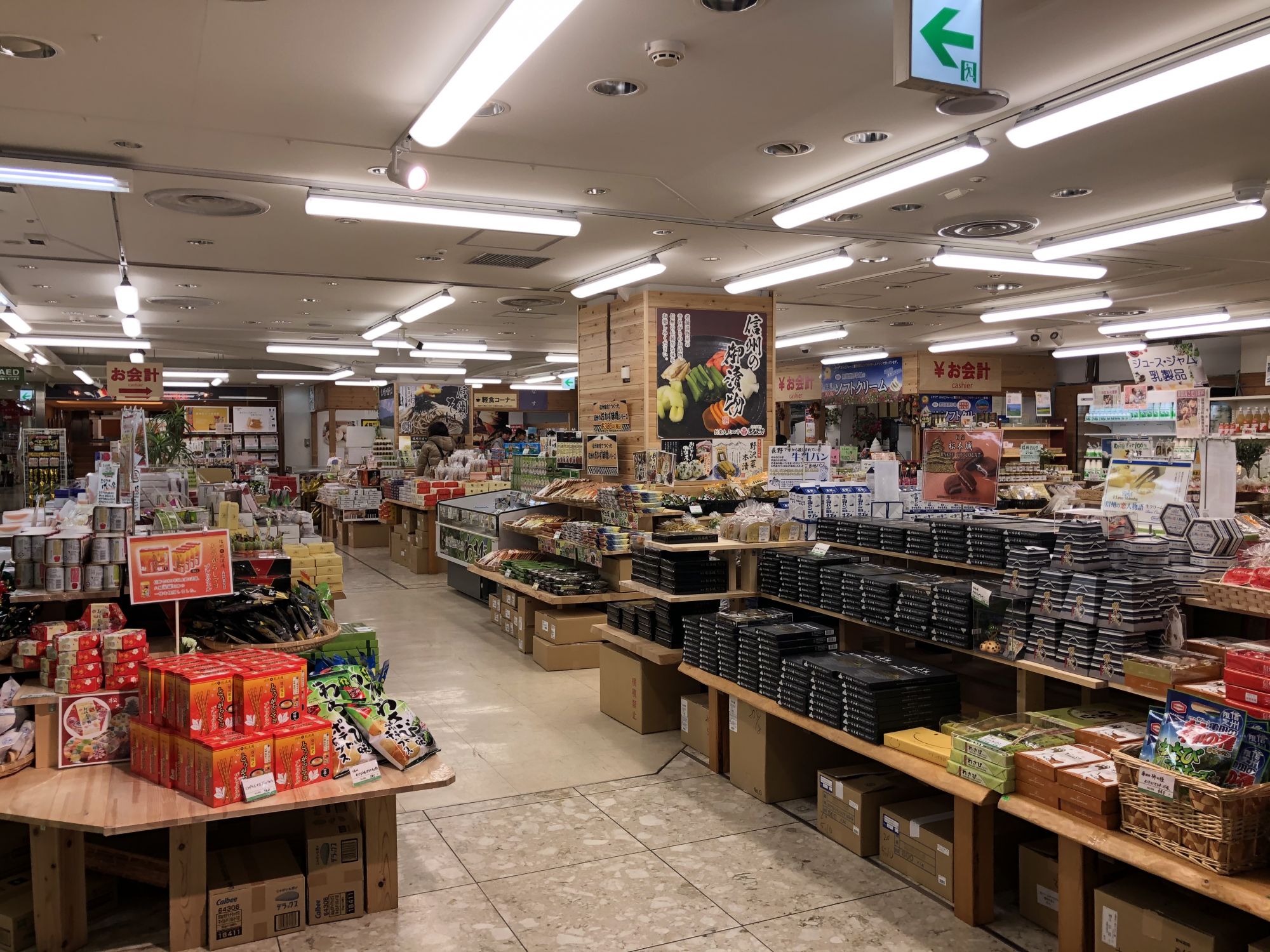 สำหรับร้านนี้ นอกจากจะมีของฝากพื้นเมืองของมัตสึโมโต้แล้ว ยังมีผัก ผลไม้ เช่น แอปเปิ้ลที่ปลูกในนากาโน่จำหน่ายในราคาไม่แพงอีกด้วย