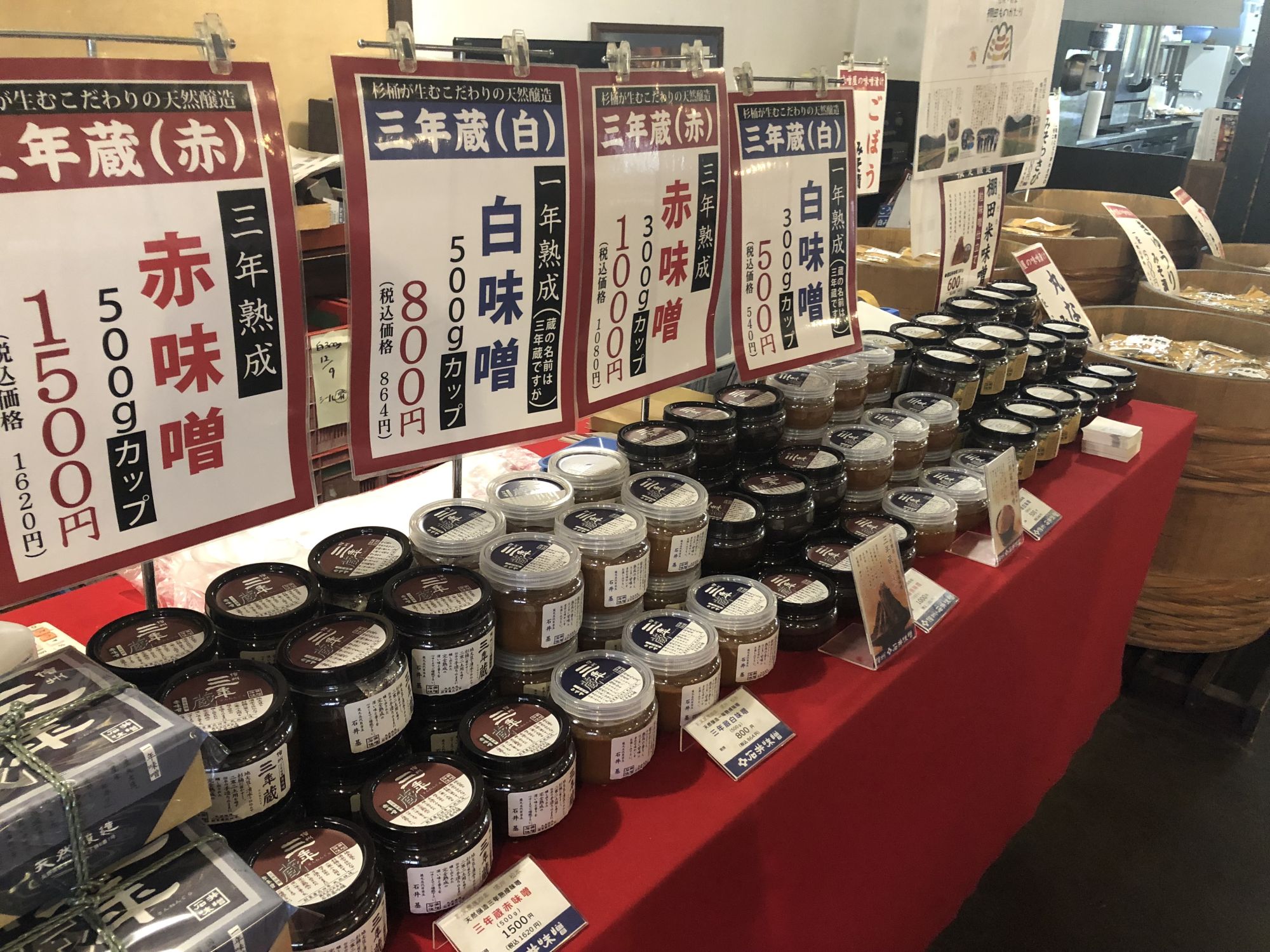 ของฝากมีให้เลือกมากมาย ตั้งแต่มิโซะสีขาว มิโซะสีแดง หมักนาน 1 ปีขึ้นไปจนถึง 3 ปี เค้าจะมีเขียนระบุไว้ นอกจากนี้ยังมีขนมที่ทำจากมิโซะ และไอศครีมรสมิโซะ