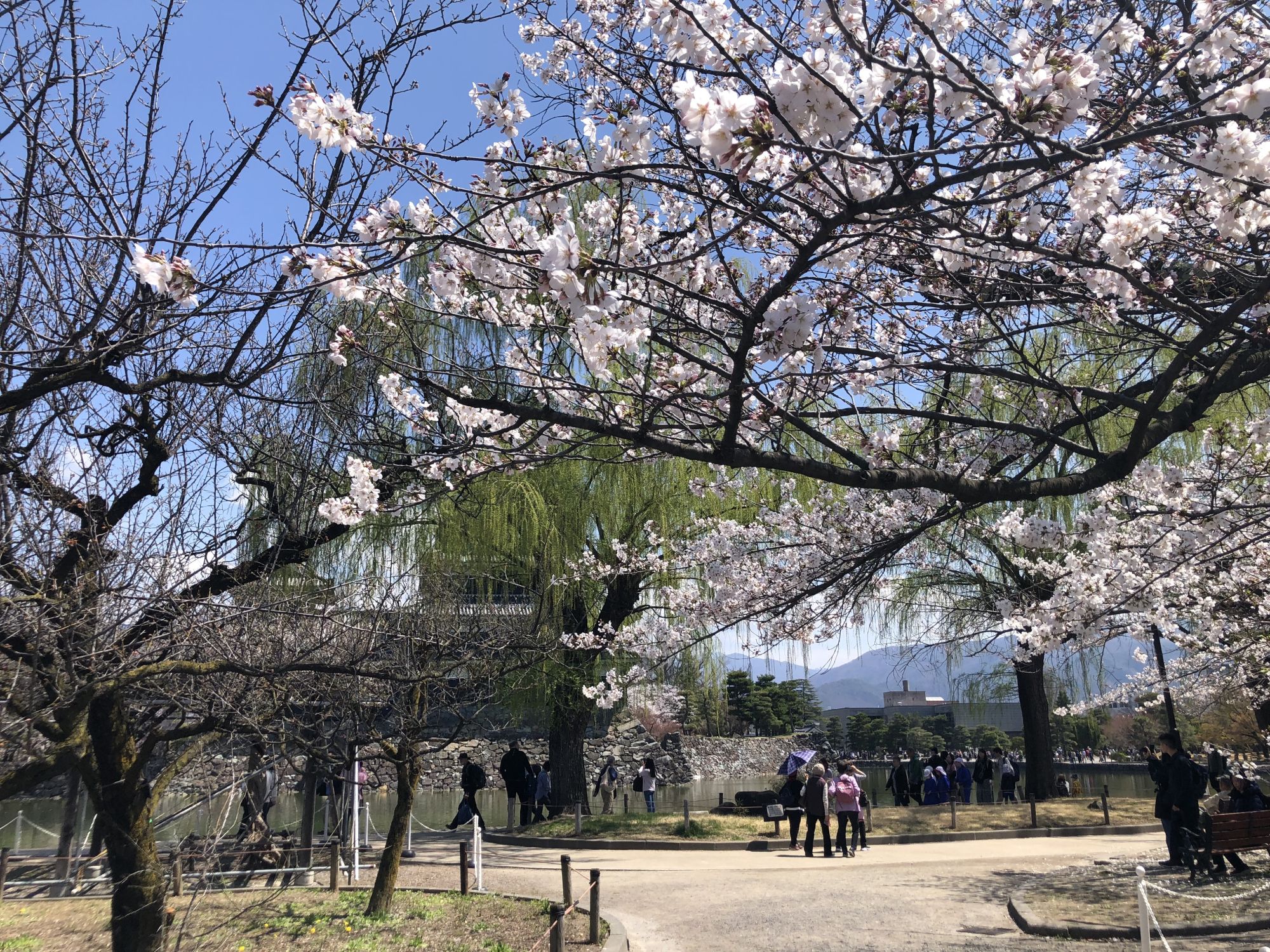 ปีนี้ ดอกซากุระที่เมืองมัตสึโมโต้บานช้ากว่าทุกปี เกือบ 2 อาทิตย์ ณ วันที่ 12 เมษายน ดอกซากุระที่ปราสาทมัตสึโมโต้พึ่งจะเริ่มบานแค่บางส่วน น่าจะบานเต็มที่ช่วงต้นสัปดาห์หน้า นอกจากช่วงกลางวันแล้ว ระหว่างวันที่ 10-17 เมษายน เวลา 17:30-21:00 น. ที่สวนฮงมารุซึ่งอยู่ด้านในได้มีการจัดงานชมดอกซากุระยามค่ำคืนด้วย สามารถเข้าไปชมซากุระยามค่ำคืนได้ฟรี (แต่ไม่สามารถเข้าไปในตัวปราสาทได้ เนื่องจากตัวปราสาทไม่เปิดให้เข้าชมตอนกลางคืน)