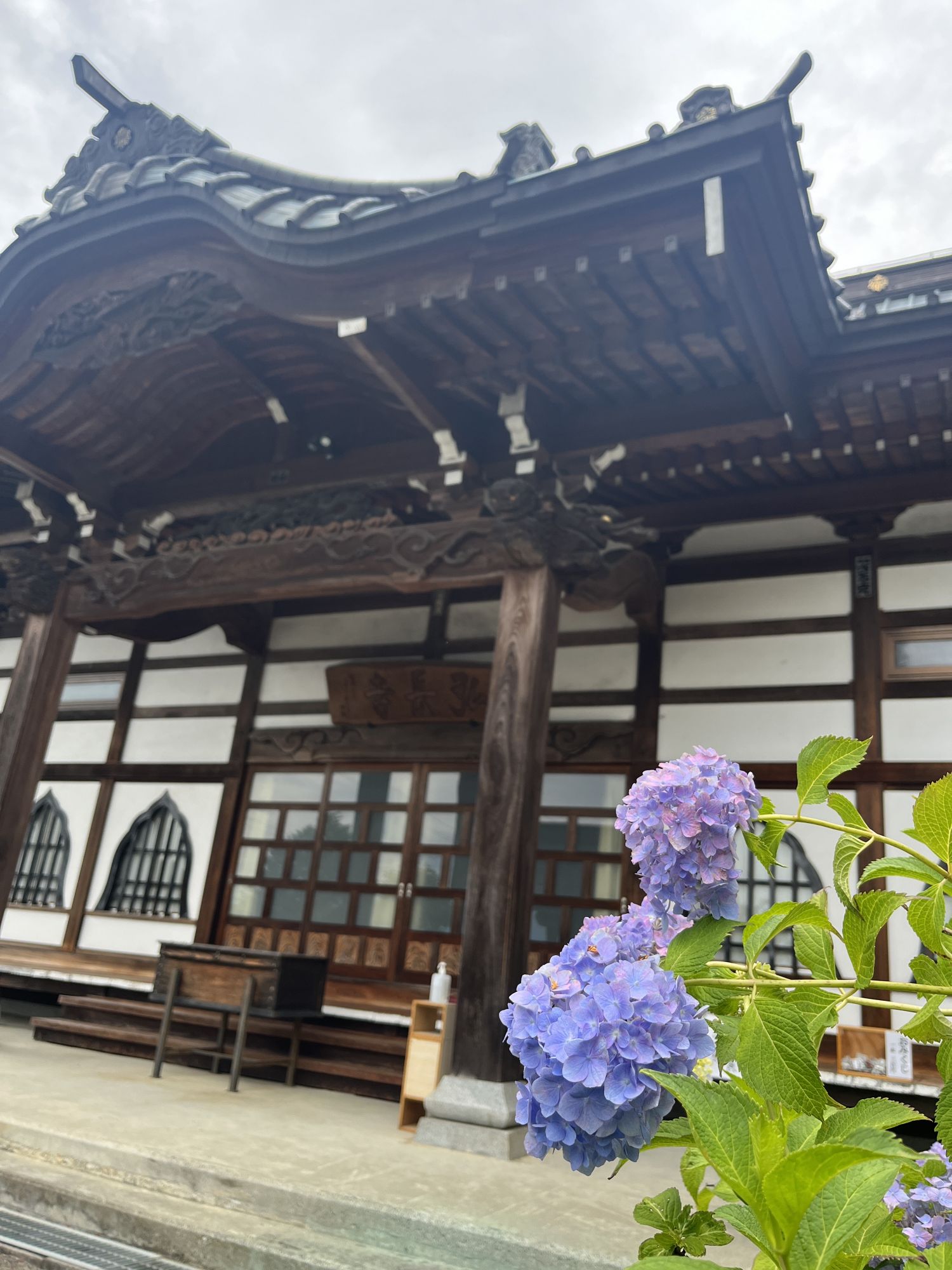 สวนไฮเดรนเยียที่นี่มีดอกไฮเดรนเยีย 90 สายพันธุ์บานสะพรั่ง ใต้ดอกไฮเดรนเยียแต่ละดอกจะมีป้ายชื่อพันธุ์ดอกไฮเดรนเยียเขียนไว้ เพื่อให้ผู้มาเยือนทราบว่าเป็นพันธุ์อะไร การได้ชมดอกไฮเดรนเยียหลังจากเห็นชื่อพันธุ์แล้วนั้นช่างรื่นรมย์น่าสนใจ เพราะบางคนอาจไม่เข้าใจว่าทำไมถึงตั้งชื่อนี้ ภายในสวน คุณจะได้พบกับรูปปั้นพระโพธิสัตว์กวนอิม สวนดอกไฮเดรนเยียและพุ่มไม้เล็กๆ และคูน้ำรอบวัดเบ็นเท็นโดที่ดอกบัวสายกำลังบานสะพรั่ง บนเนินเขาด้านหลังวิหารหลัก มีดอกไฮเดรนเยียและไฮเดรนเยียภูเขาสายพันธุ์หายาก และคุณสามารถเพลิดเพลินกับดอกไฮเดรนเยียหลากหลายสายพันธุ์ที่คุณไม่เคยเห็นมาก่อนค่ะ