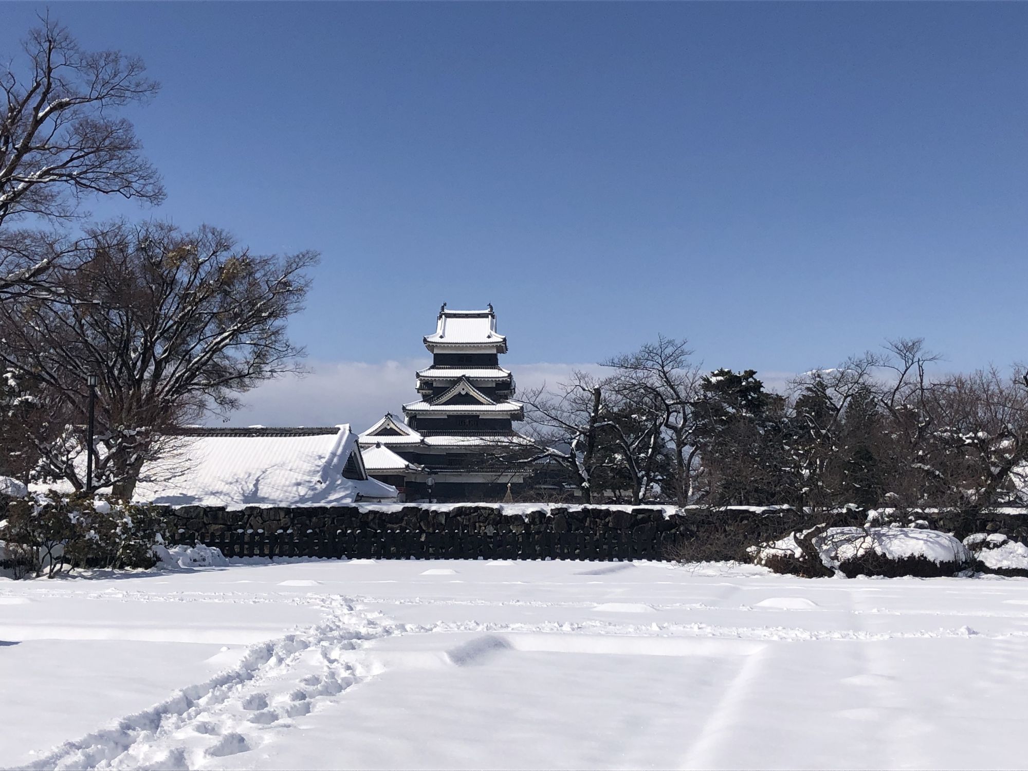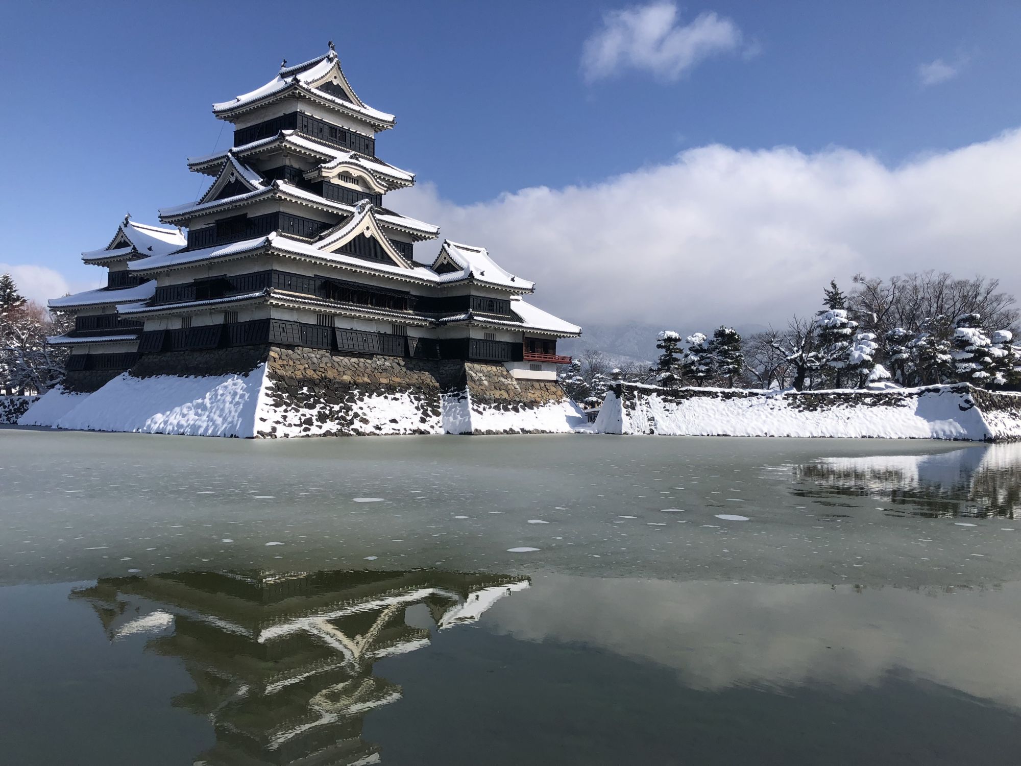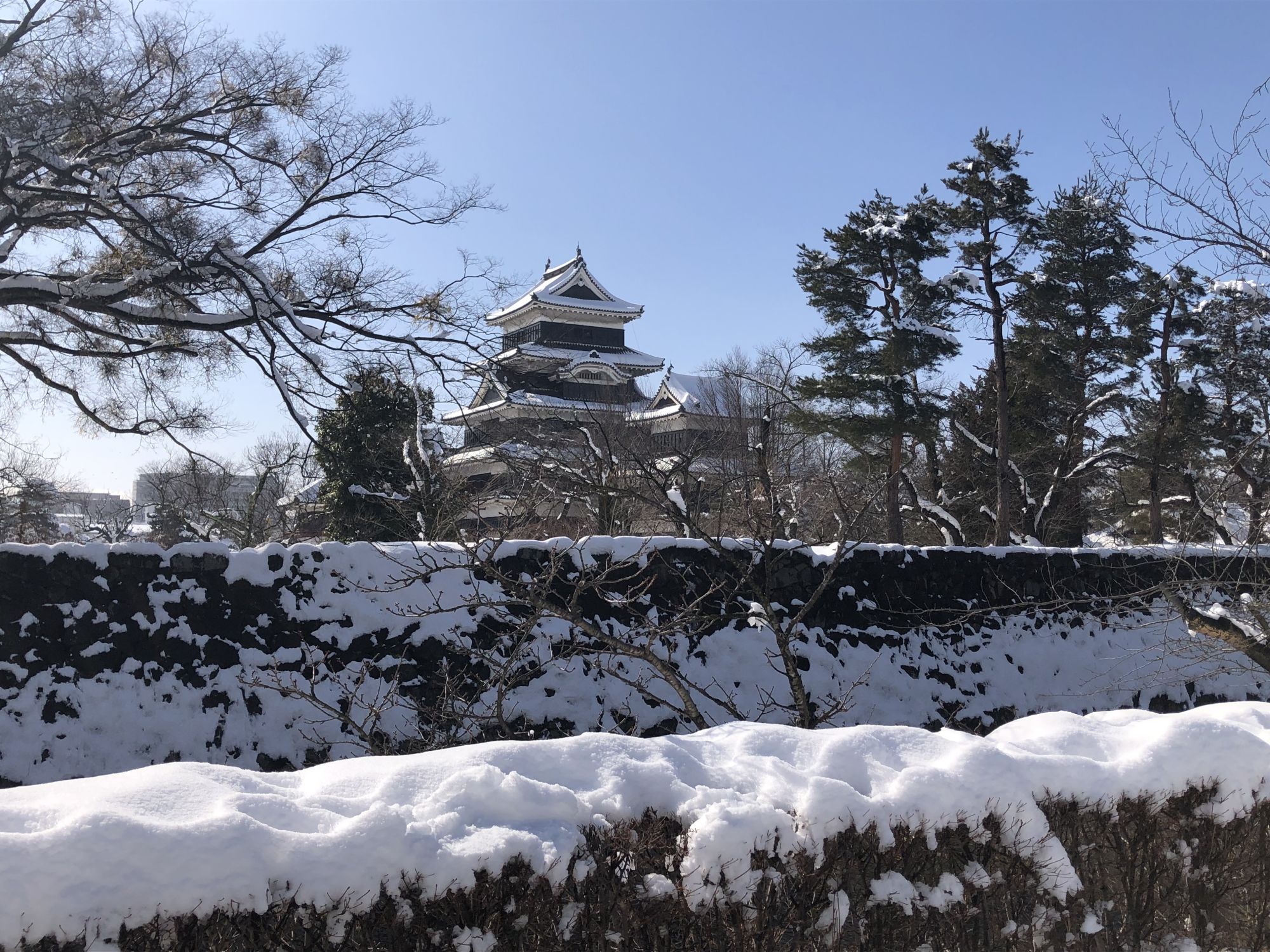 ปราสาทมัตสึโมโต้เมื่อถูกปกคลุมด้วยหิมะ