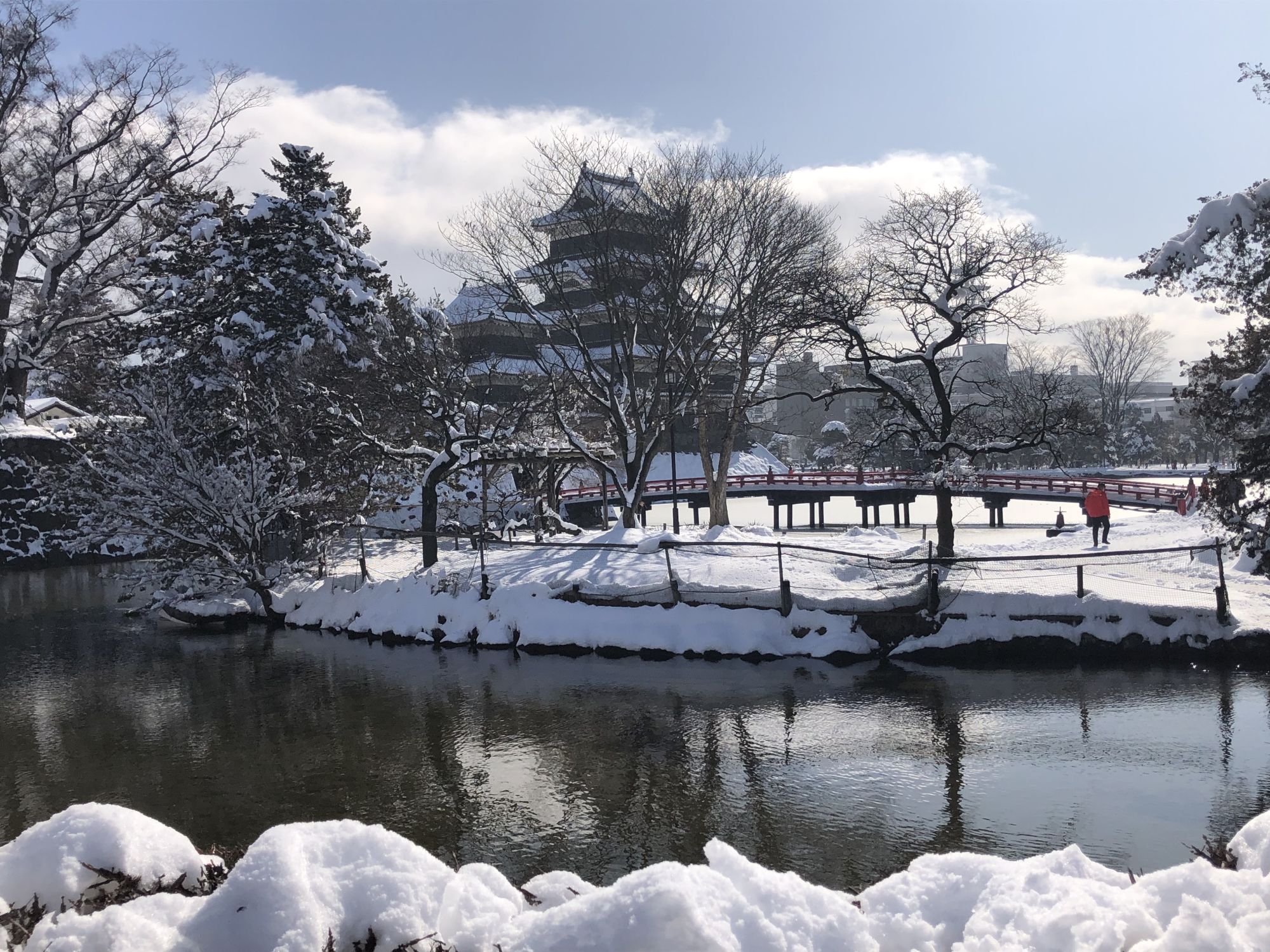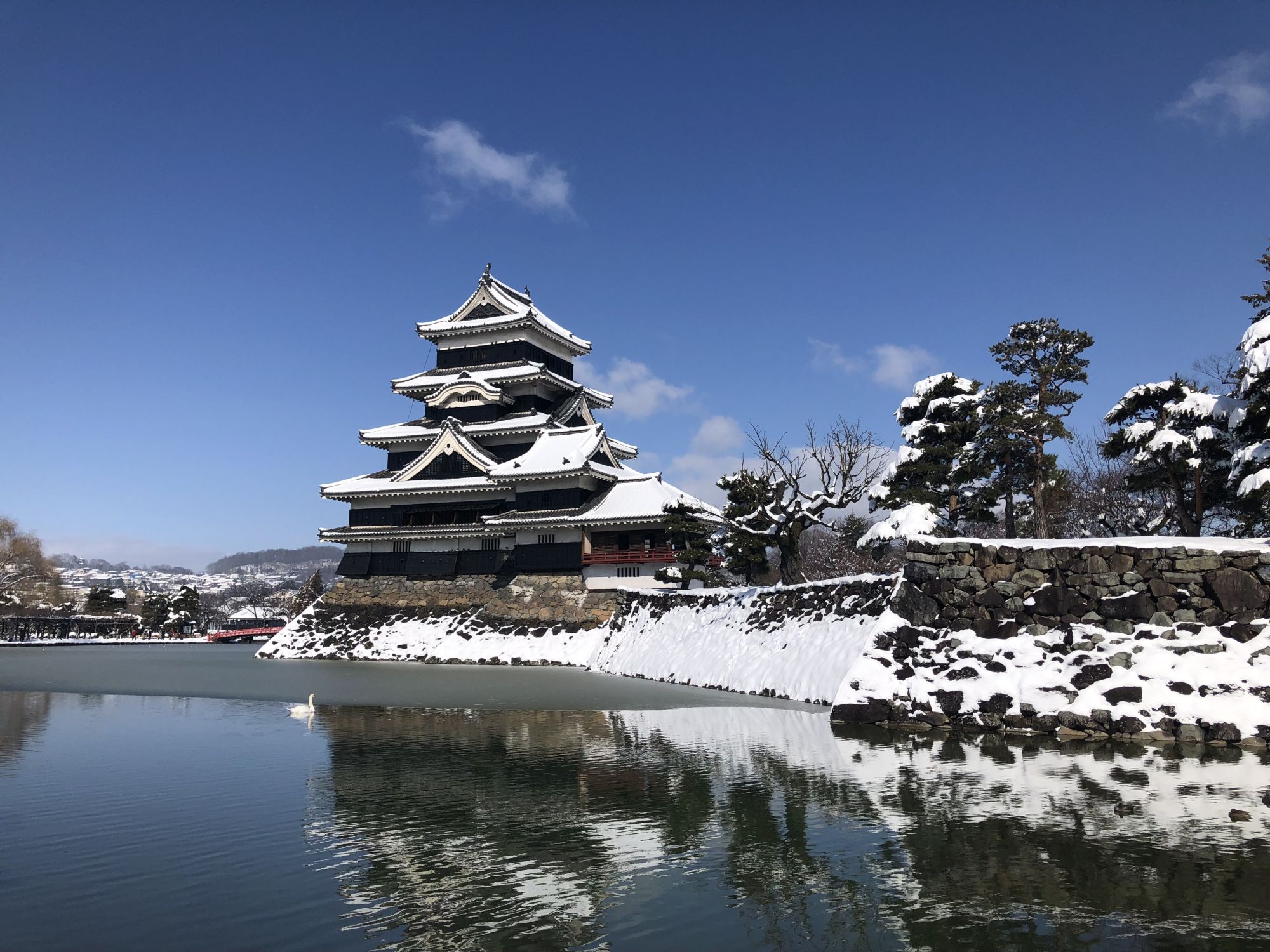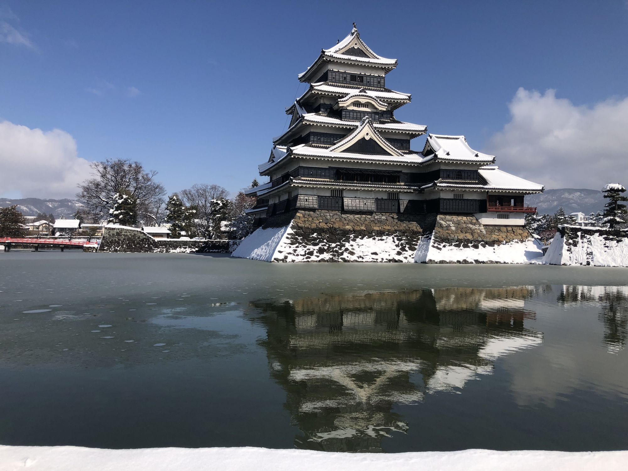 ปราสาทมัตสึโมโต้เมื่อถูกปกคลุมด้วยหิมะ