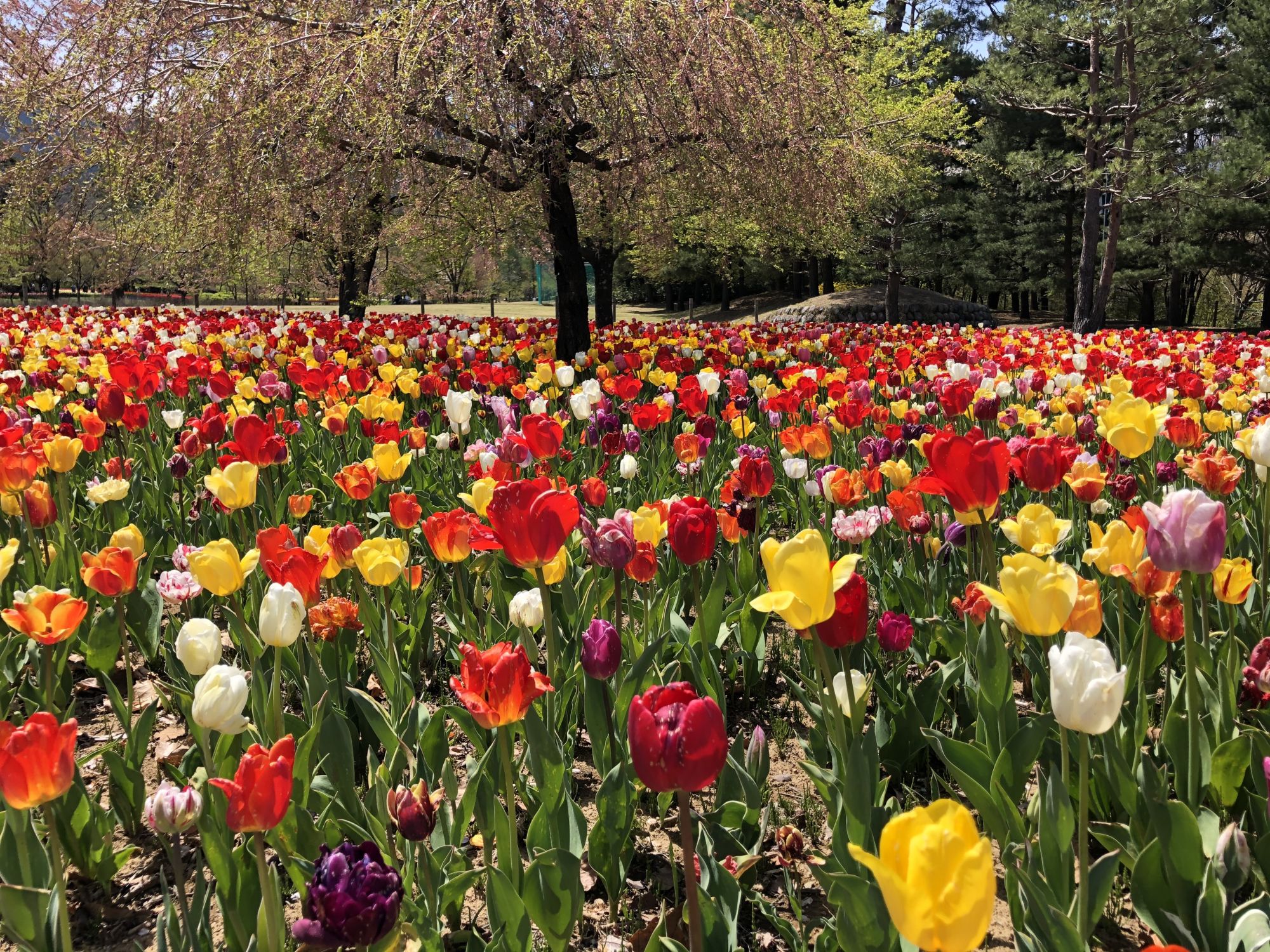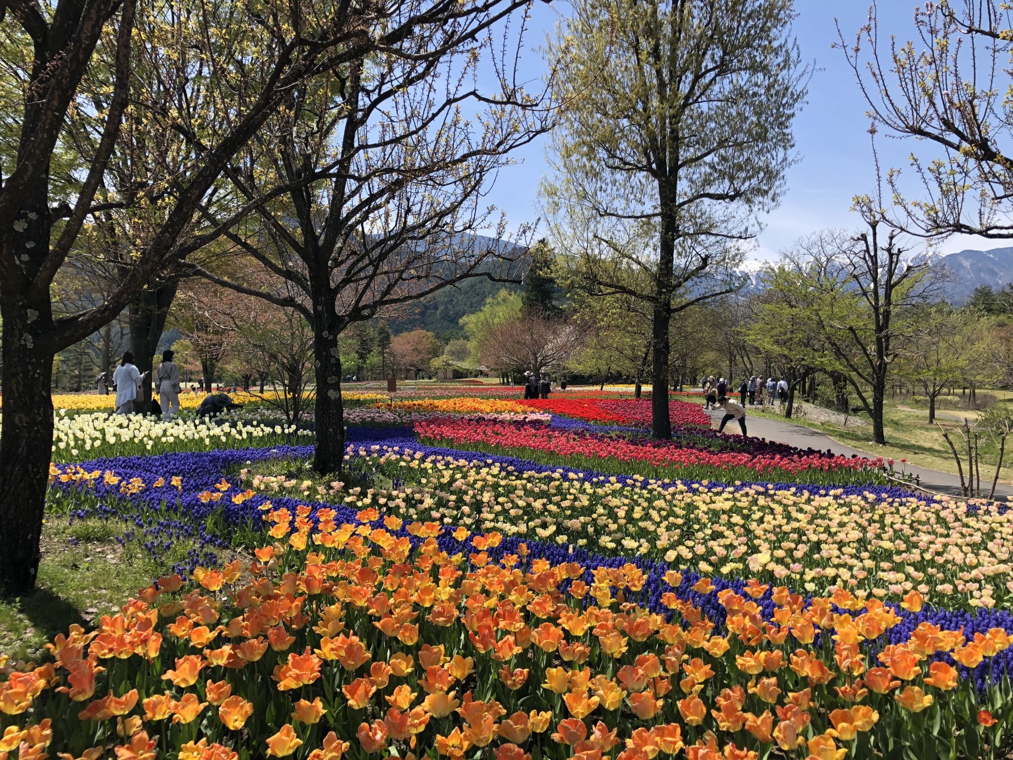 ช่วงกลางเดือนเมษายนถึงต้นเดือนพฤษภาคมเป็นช่วงที่ดอกไม้นานาพันธุ์ออกดอกบานสะพรั่งสวยงาม ที่สวน Alps Azumino หรือชื่อเต็มว่าสวน Alps Azumino National Goverment Park ซึ่งอยู่ที่อำเภออะซูมิโน่ (ติดกับมัตสึโมโต้) เค้ามีการจัดงาน Spring Festa 2021 ขึ้น งานนี้มีไฮไลต์อยู่ที่ดอกทิวลิปซึ่งมีให้ชมมากมายถึง 300,000 ต้น จำนวน 93 สายพันธุ์ นอกจากนี้ยังมีทุ่งดอกนาโนะฮานะสีเหลืองอร่ามให้ถ่ายรูปกันอีกด้วย สำหรับสถานที่ชมดอกทิวลิปและดอกนาโนะฮานะเค้าจะแยกโซนกัน เนื่องจากสวน Alps Azumino มีขนาดใหญ่ติดเชิงเขาแอลป์ตอนเหนือ ที่จอดรถสำหรับชมดอกไม้ก็จะแยกกันคนละที่ นอกจากนี้ยังกินพื้นที่ทั้งอำเภอ Azumino และ Omachi ด้วย สำหรับดอกทิวลิปจะต้องไปที่สวน Alps Azumino ที่อยู่ตรง Horigane/Hotaka