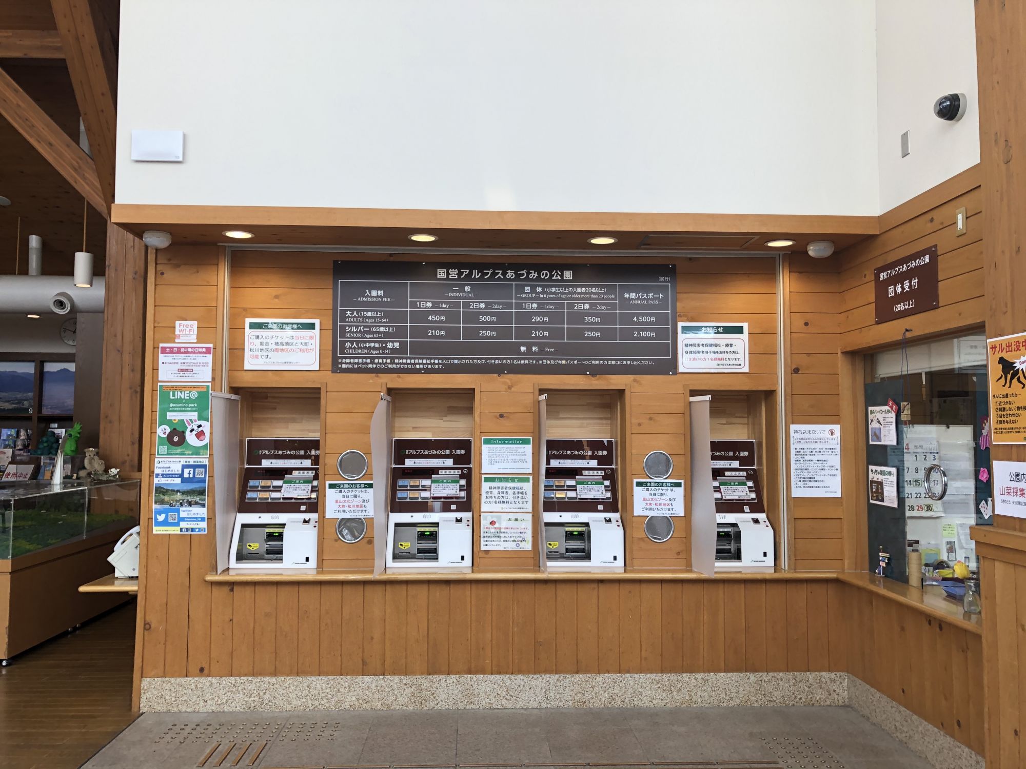 ทางเข้าสวน เมื่อเข้าไปในอาคารแล้ว ให้ซื้อบัตรผ่านประตูที่เครื่องขายตั๋วอัตโนมัติ โดยใส่แบ็งค์ 1,000 หรือ 10,000 เยนหรือจะใส่เหรียญ 10,50,100,500 เยนก็ได้ ค่าบัตรผ่านประตูผู้ใหญ่ 450 เยน เด็ก 210 เยน เด็กต่ำกว่ามัธยมต้นไม่ต้องเสียเงิน เมื่อซื้อบัตรแล้วจะมีเจ้าหน้าที่ตรวจตั๋วเดินตามทางและข้ามสะพานขนาดเล็กๆ เข้าไปก็จะเจอกับอาคารซึ่งเป็นทางลงไปยังสวน