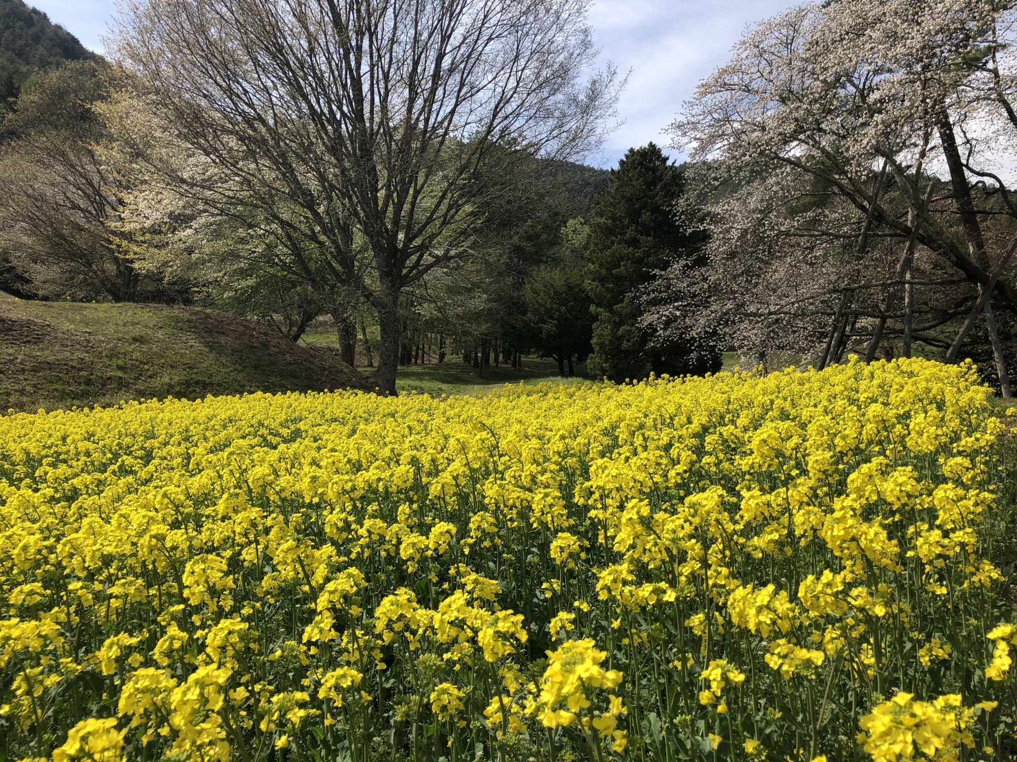 ต้นฤดูใบไม้ผลิไปทางไหนต้นไม้ดอกไม้ก็ออกดอกสวยงามเต็มไปหมด ครั้งที่แล้วนำเสนอเรื่องราวของดอกทิวลิปที่สวน Alps Azumino National Goverment Park ที่อำเภออะซูมิโน่ ซึ่งอยู่ติดกับมัตสึโมโต้ไปแล้ว คราวนี้จะขอนำเสนอทุ่งดอกนาโนฮานะซึ่งอยู่ที่สวน Alps Azumino เหมือนกันแต่คนละโซนกันค่ะ ทุ่งกว้างมากระยะทางเดินไปกลับน่าจะเกิน 3 กิโลค่ะ เค้ามีทางสีเหลืองๆ ให้เราเดินไปตามทาง ระหว่างทางเราจะแวะเข้าไปถ่ายรูปที่แปลงดอกไม้ก็ได้ จะเดินขึ้นเนินเขาไปถ่ายวิวจากมุมสูง ถ่ายกับต้นซากุระก็ได้หมดค่ะ สวนแทบไม่มีคนเลย แต่ปลอดภัยมาก เพราะเค้ามีรั้วกั้นระหว่างทุ่งนาของบุคคลทั่วไปกับสวนสาธารณะ คนที่จะเข้าไปเดินในสวนได้ต้องซื้อบัตรผ่านประตูเท่านั้นค่ะ