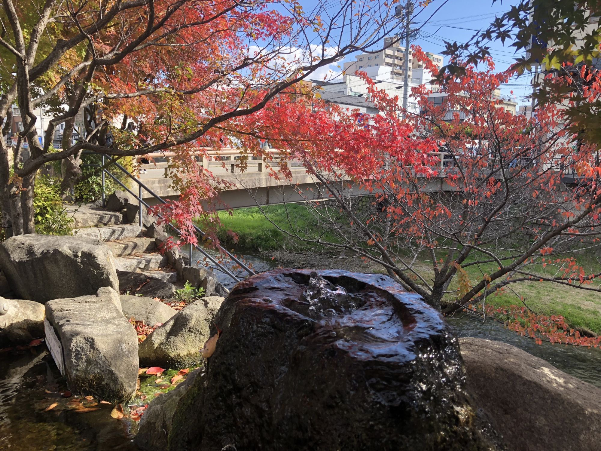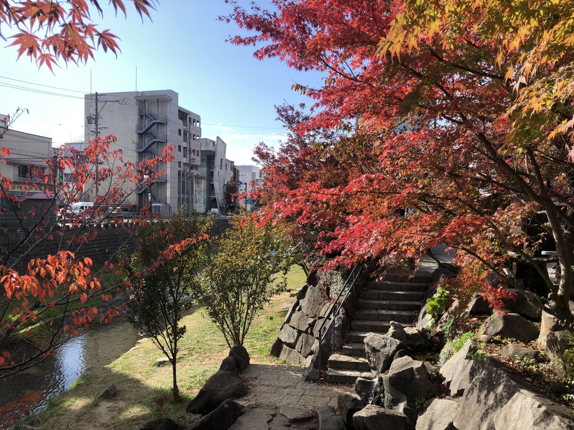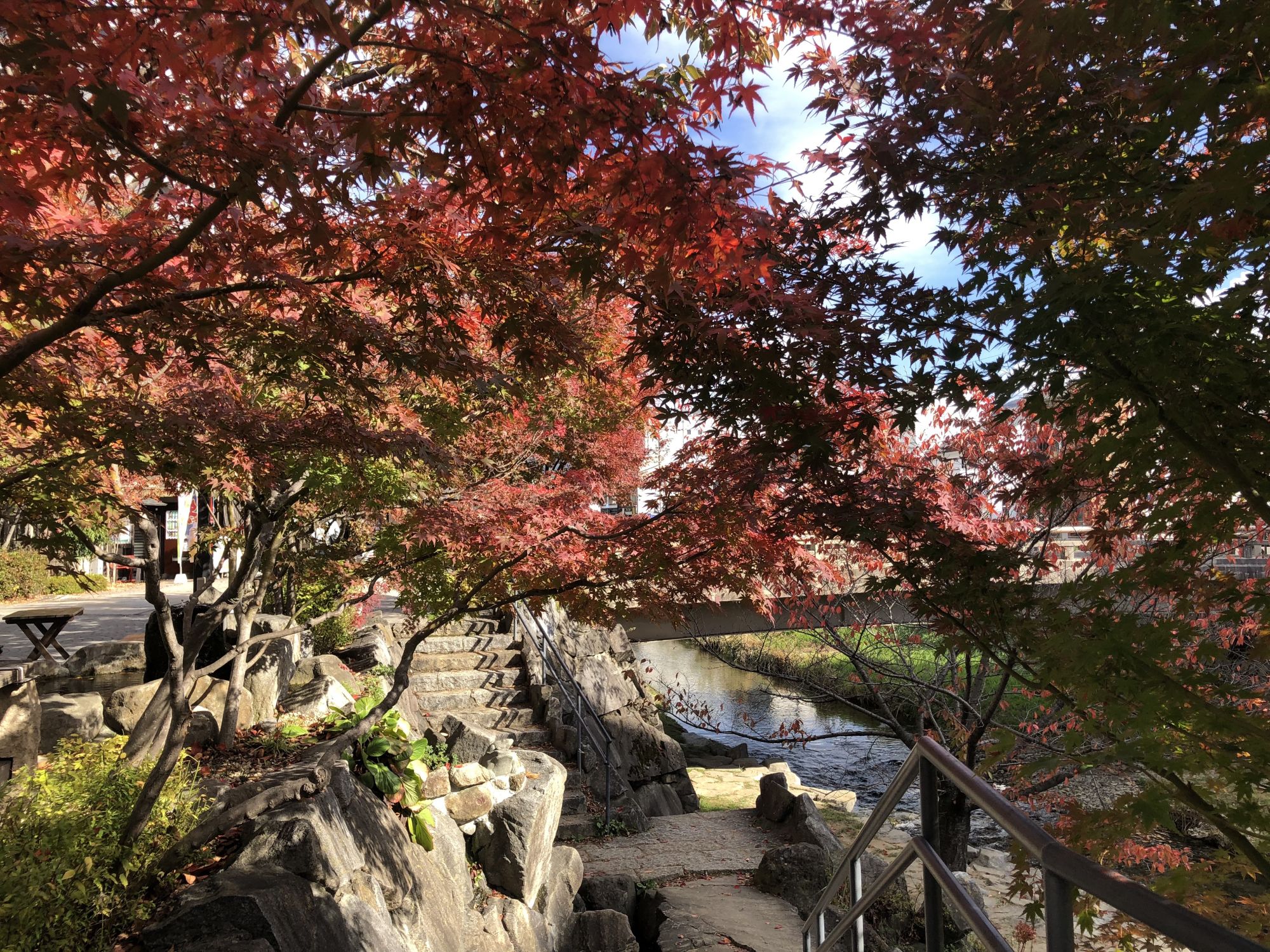 ช่วงฤดูใบไม้เปลี่ยนสีเป็นฤดูที่ใบไม้จะเปลี่ยนสีสวยงาม แต่ละต้นก็จะมีสีสันที่สวยงามต่างกันออกไป แต่ความคิดเห็นส่วนตัวผู้เขียนคิดว่าตรงไหนที่มีต้นเมเปิ้ลจะสวยงามเป็นพิเศษ ใบเมเปิ้ลจะมีทั้งแบบสีแดงสด สีเหลือง สีส้ม ดูแล้วมีสีสันกว่าต้นไม้ชนิดอื่นๆ เมืองมัตสึโมโต้มีต้นเมเปิ้ลให้ได้ชมกันไม่กี่แห่ง วันนี้จะพาไปชมใบเมเปิ้ลสีสันสดใสที่ศาลเจ้าโยฮาชิร่าตรงถนนนาวาเตะ ที่อยู่ติดกับแม่น้ำเมะโตบะ