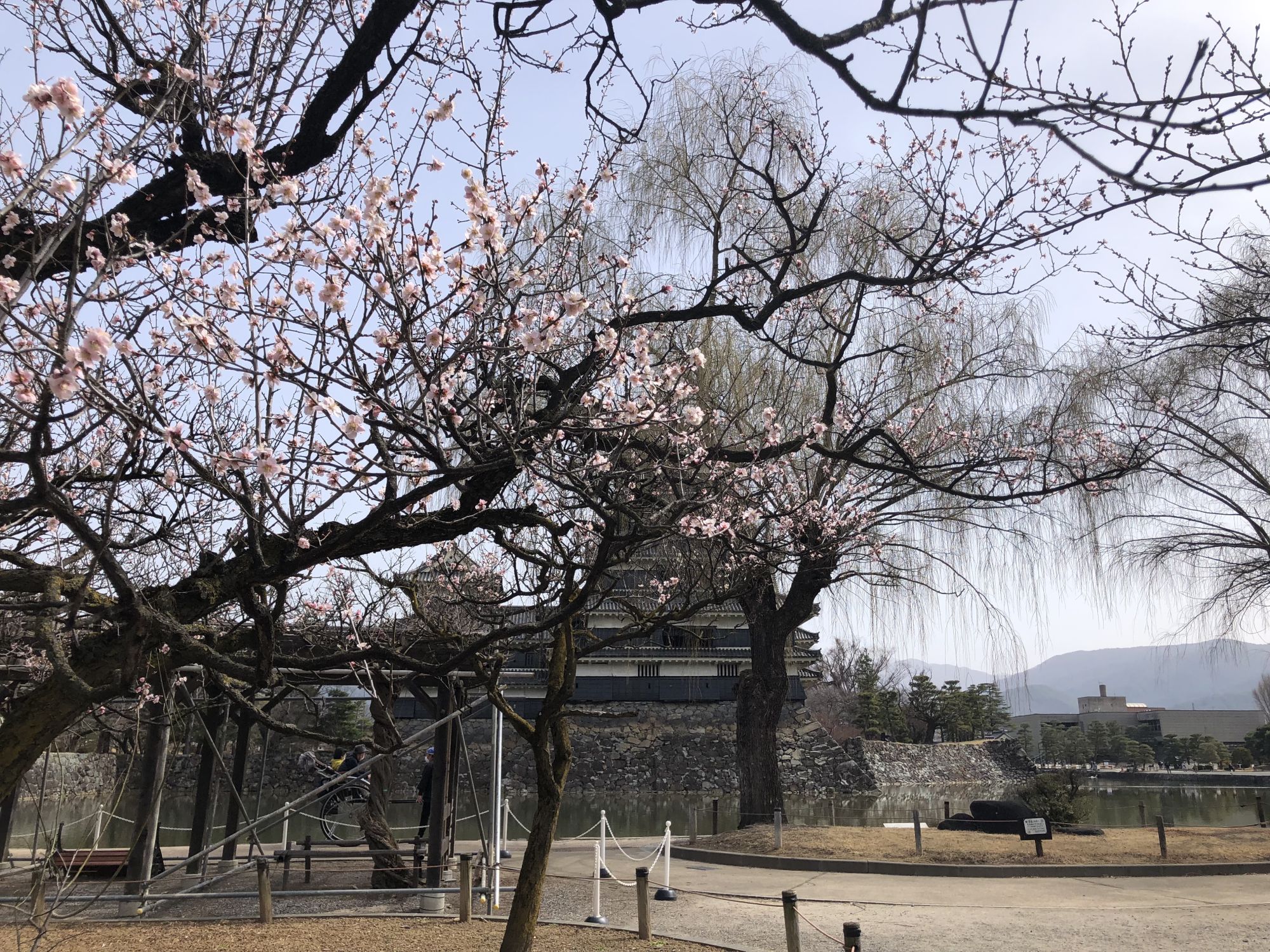 สำหรับดอกซากุระ ณ วันที่ 16 มีนาคม ดอกซากุระยังไม่เริ่มบาน คาดว่าดอกซากุระบริเวณรอบๆ ปราสาทมัตสึโมโต้น่าจะบานสะพรั่งช่วงประมาณปลายเดือนมีนาคม ถึงต้นเดือนเมษายน