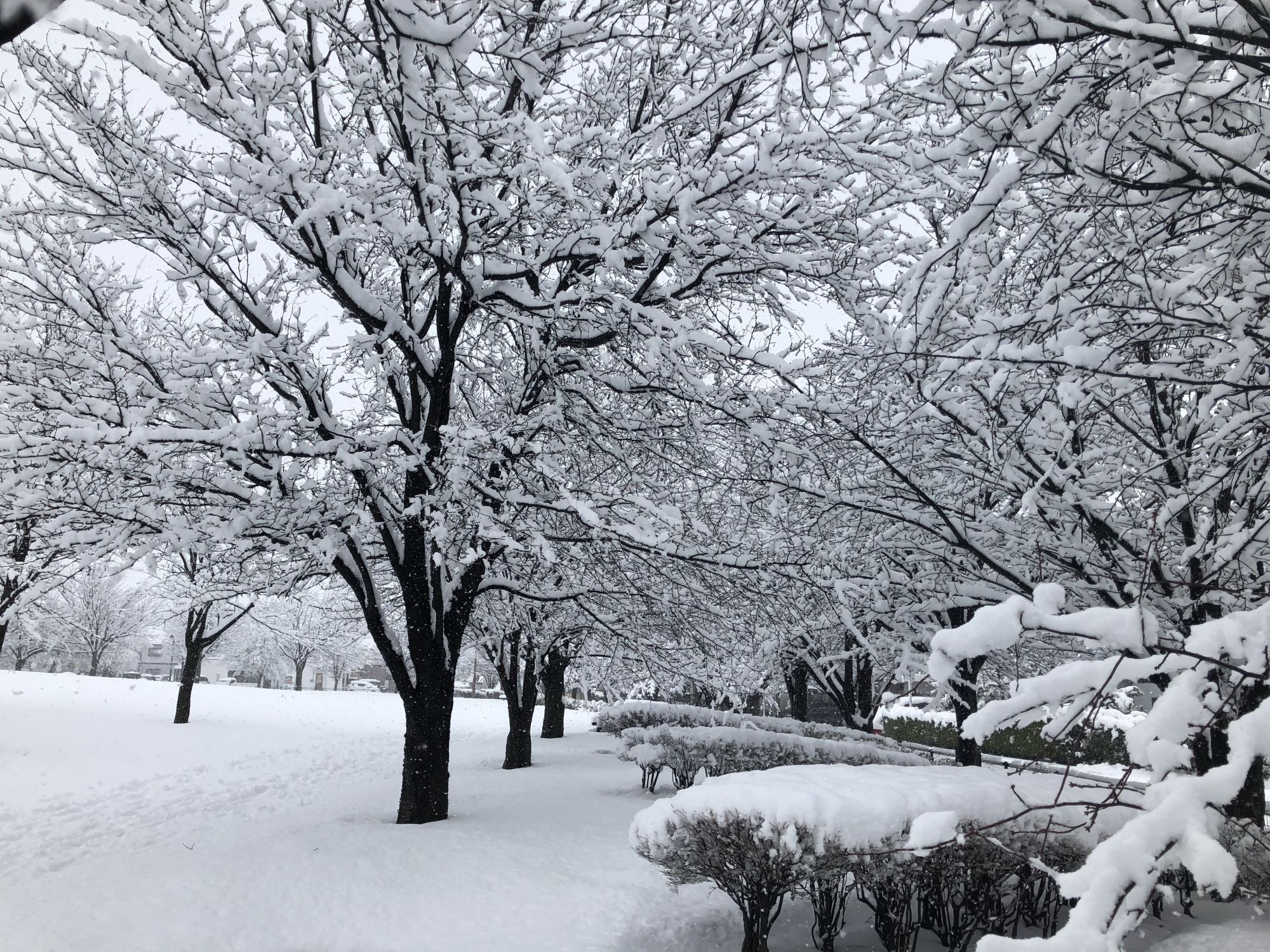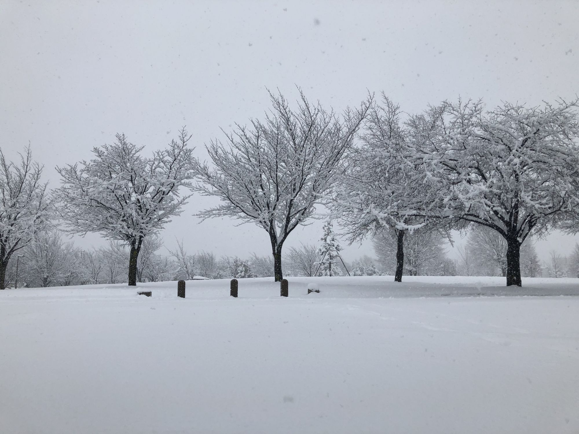 สวนทั้งสวนเป็นของเรา เพราะไม่มีใครออกไปเดินเล่นช่วงหิมะตกหนักค่ะ