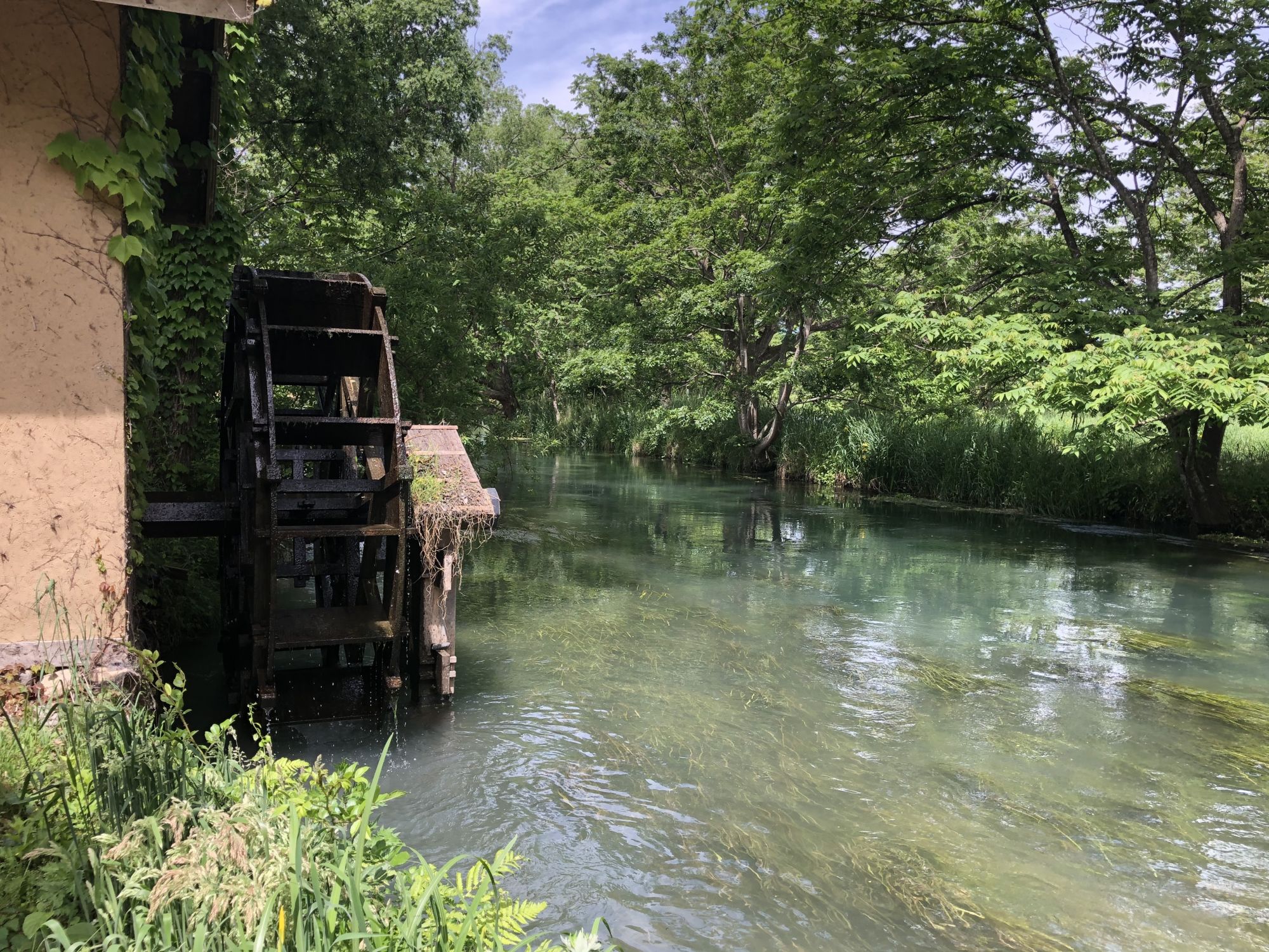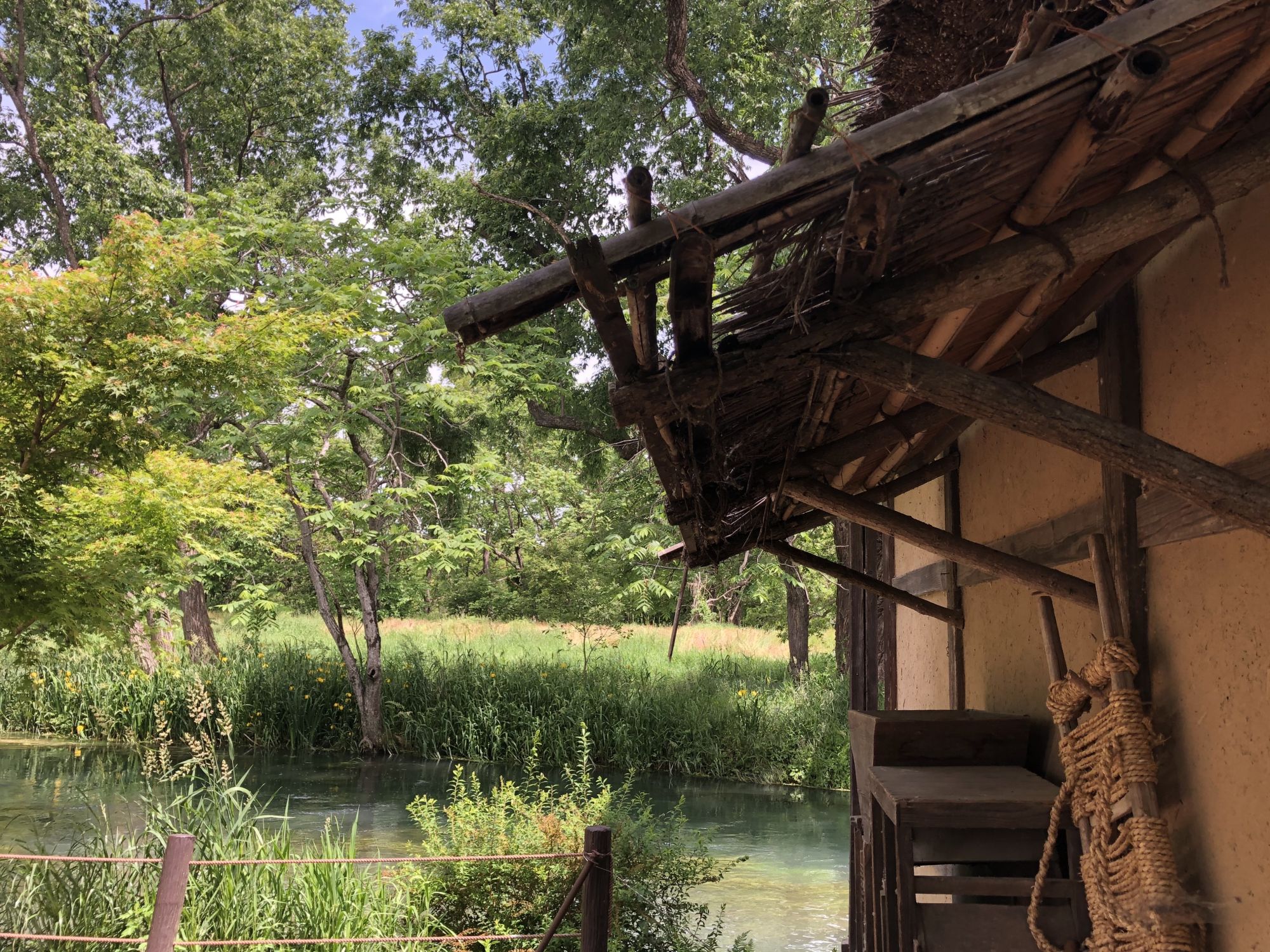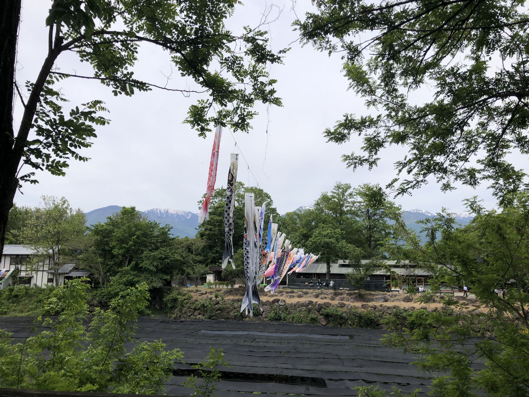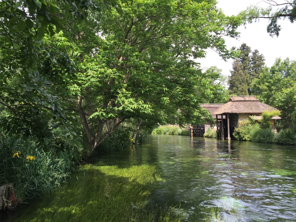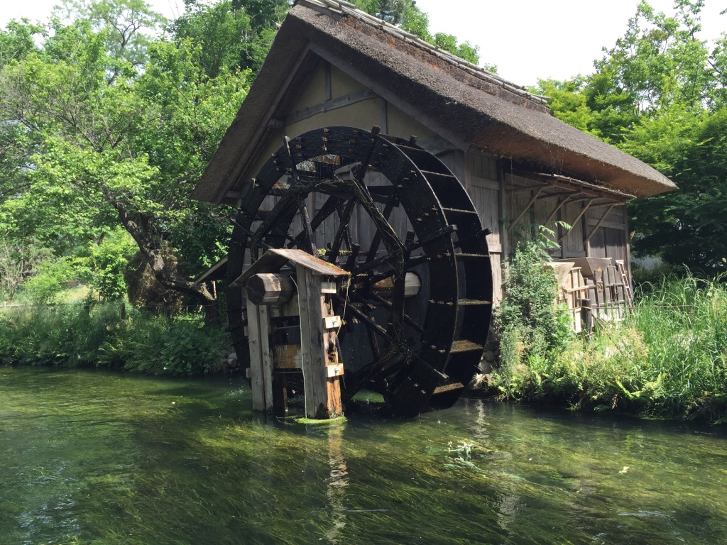 เมื่อหันหน้าเข้าอาคารที่มีร้านขายของที่ระลึก ฝั่งซ้ายมือจะมีลำธารน้ำใสแจ๋ว น้ำที่ไหลเป็นน้ำใต้ดินที่เกิดจากการละลายของหิมะบนเทือกเขาแอลป์ญี่ปุ่น ช่วงที่ไปเป็นช่วงเดือนพฤษภาคม ไปหลังจากที่ฝนตก 2 วันน้ำในลำธารเลยไม่ใสเท่าไหร่
