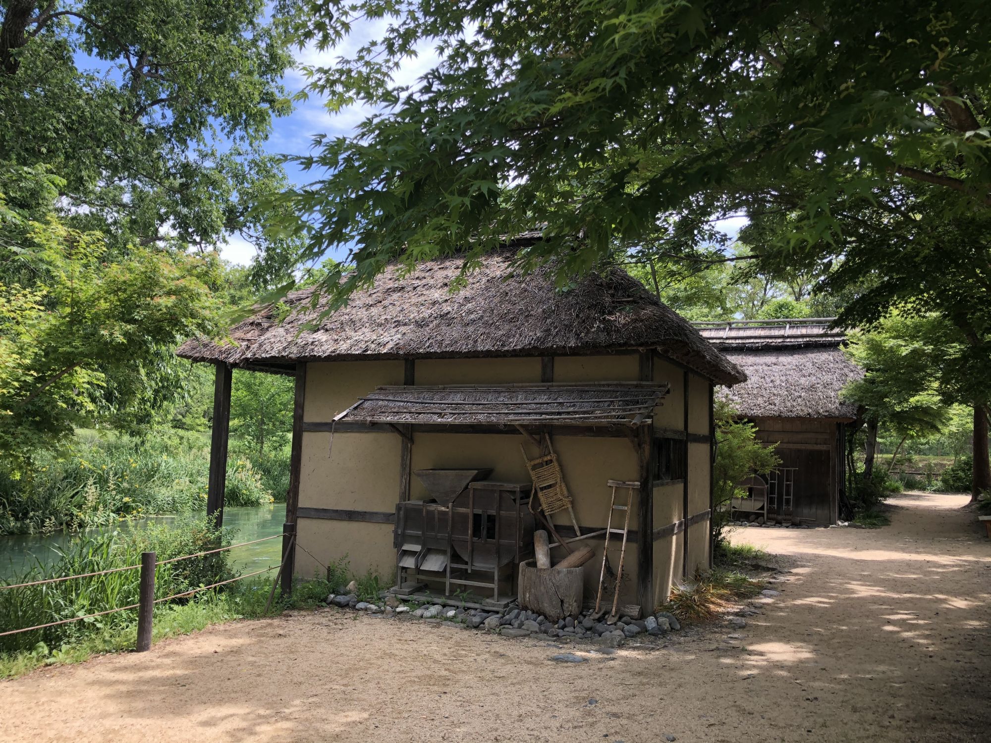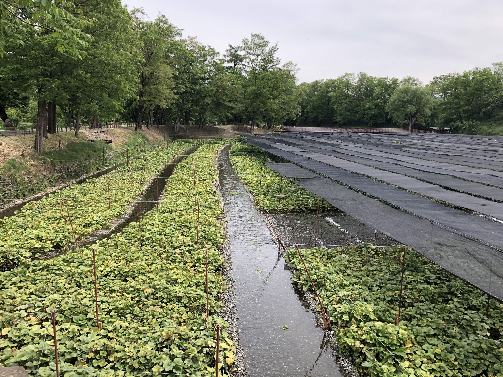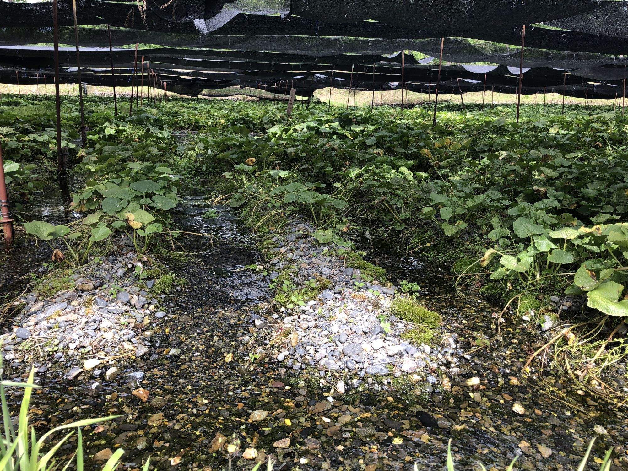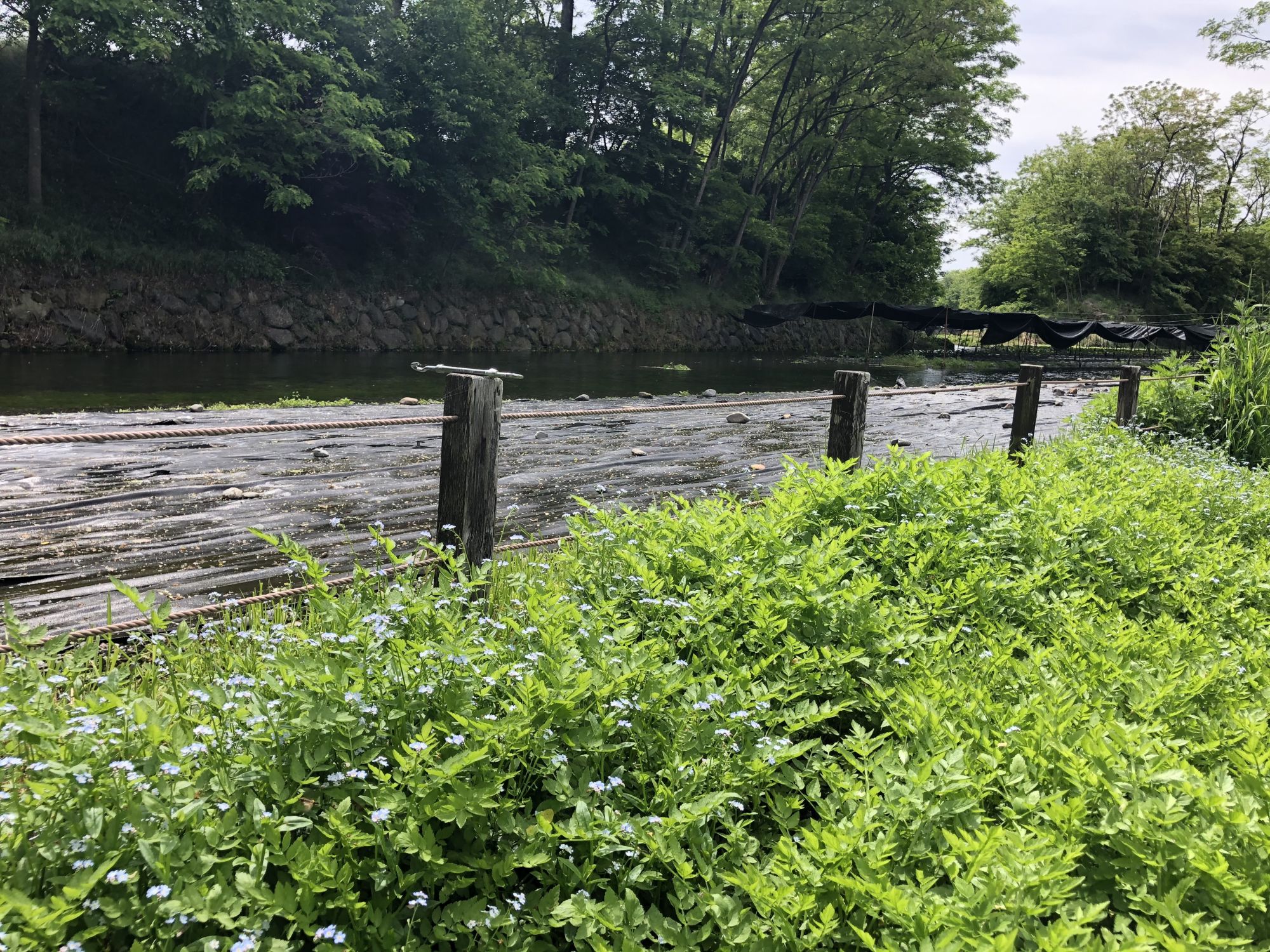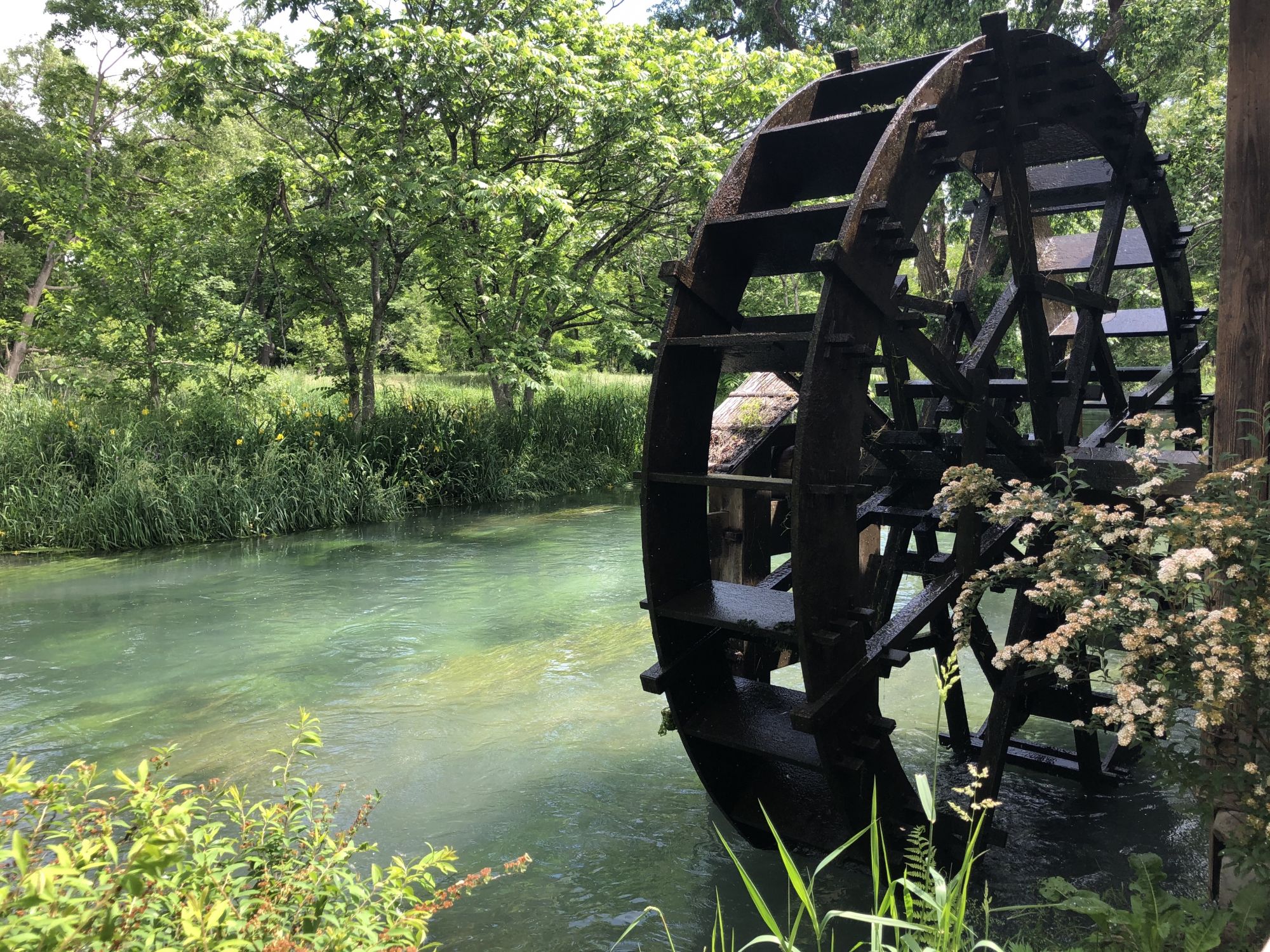 เมื่อหันหน้าเข้าอาคารที่มีร้านขายของที่ระลึก ฝั่งซ้ายมือจะมีลำธารน้ำใสแจ๋ว น้ำที่ไหลเป็นน้ำใต้ดินที่เกิดจากการละลายของหิมะบนเทือกเขาแอลป์ญี่ปุ่น ช่วงที่ไปเป็นช่วงเดือนพฤษภาคม ไปหลังจากที่ฝนตก 2 วันน้ำในลำธารเลยไม่ใสเท่าไหร่