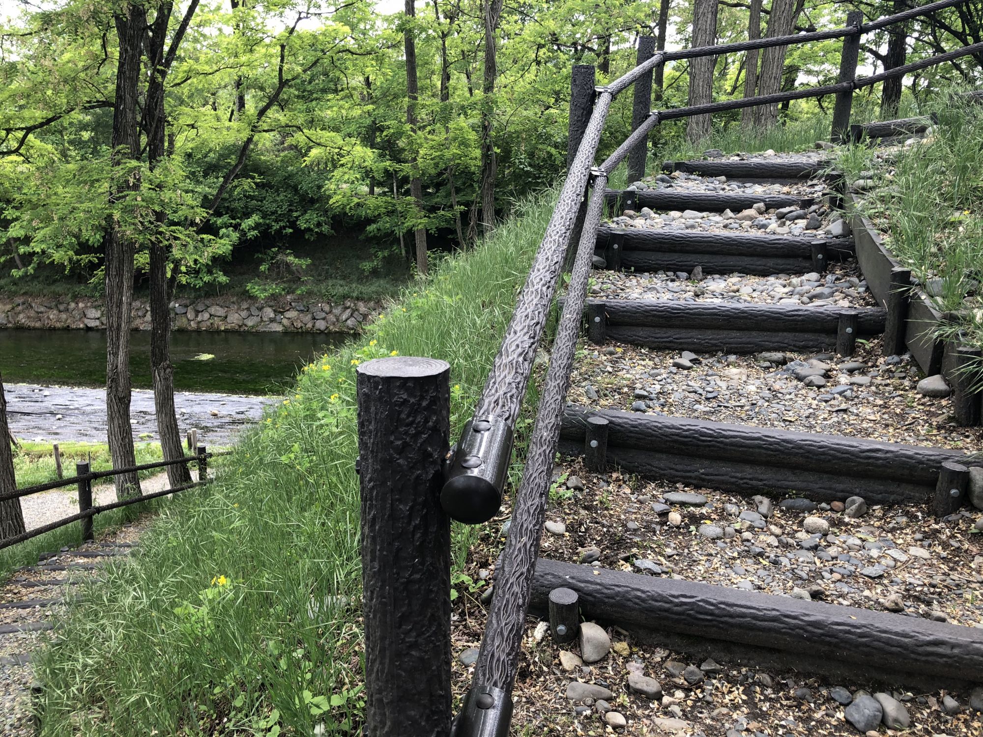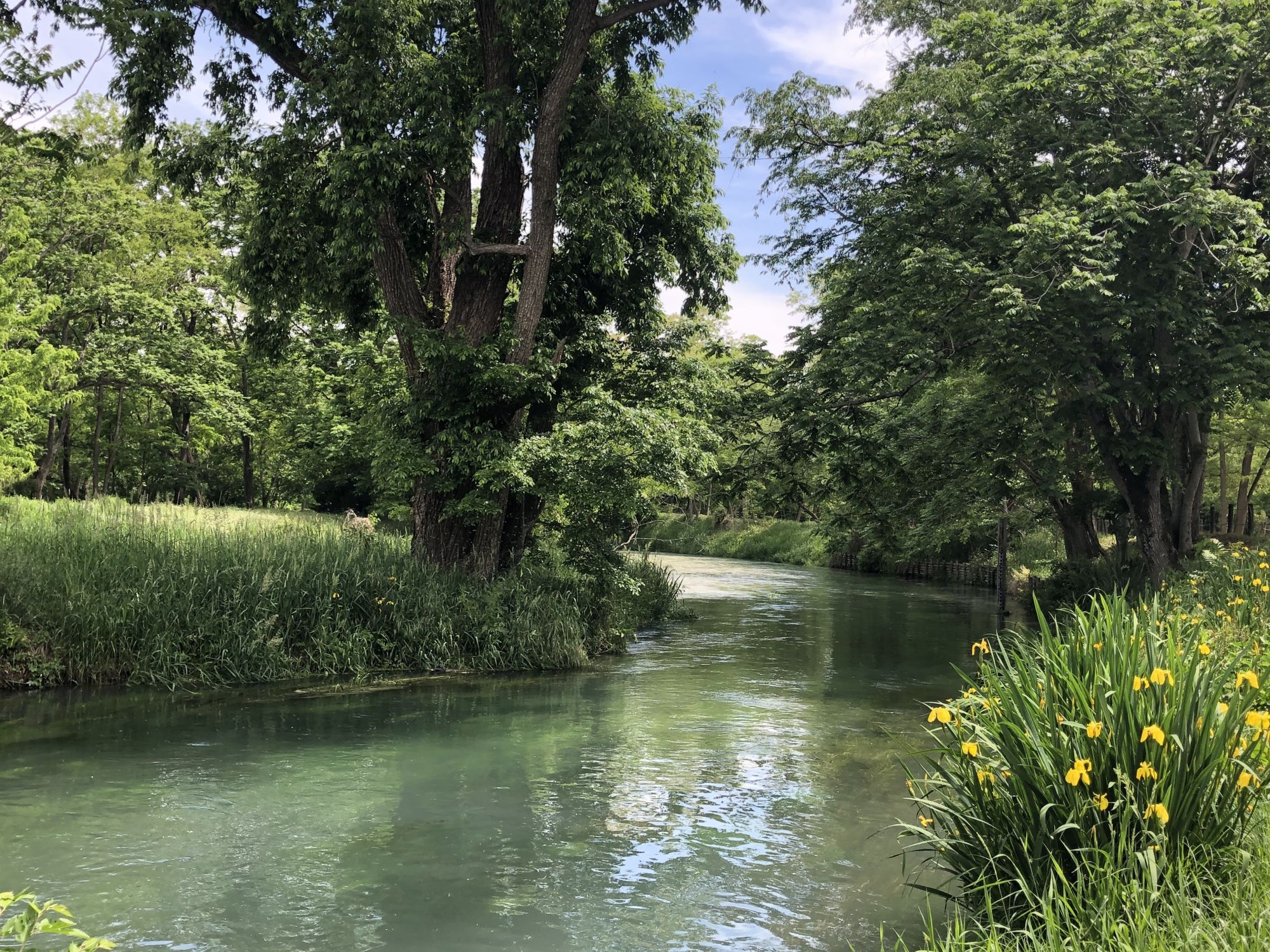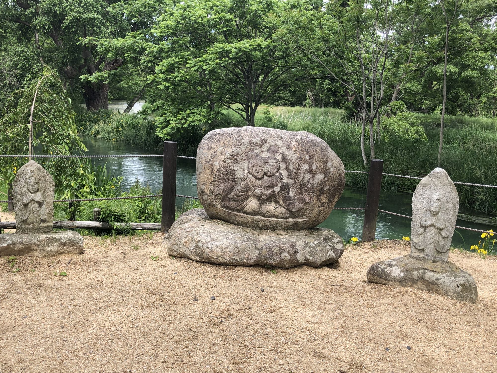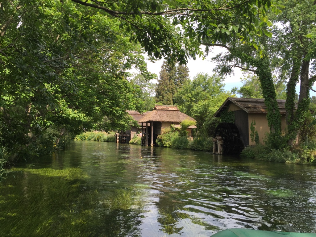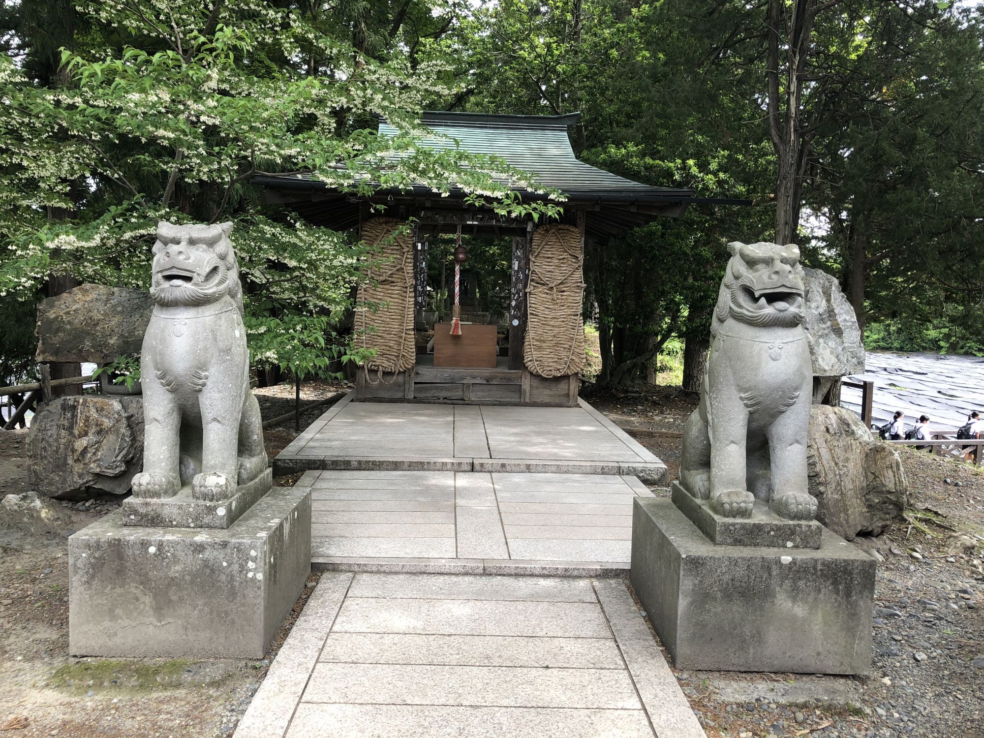 เมื่อหันหน้าเข้าอาคารที่มีร้านขายของที่ระลึก ฝั่งซ้ายมือจะมีลำธารน้ำใสแจ๋ว น้ำที่ไหลเป็นน้ำใต้ดินที่เกิดจากการละลายของหิมะบนเทือกเขาแอลป์ญี่ปุ่น ช่วงที่ไปเป็นช่วงเดือนพฤษภาคม ไปหลังจากที่ฝนตก 2 วันน้ำในลำธารเลยไม่ใสเท่าไหร่