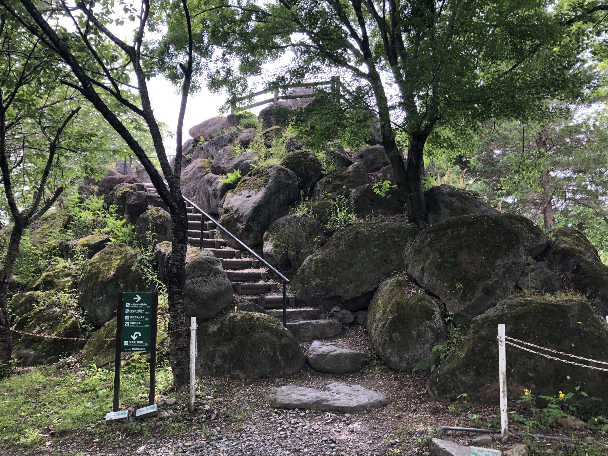 เมื่อเดินตามทางไปเรื่อยๆ จะมีสะพานให้เดิมข้างแปลงเพาะวาซาบิ เมื่อข้ามสะพานไปแล้ว จะเป็นเนินเขาเล็กๆ มีถ้ำที่เค้าทำขึ้นมา