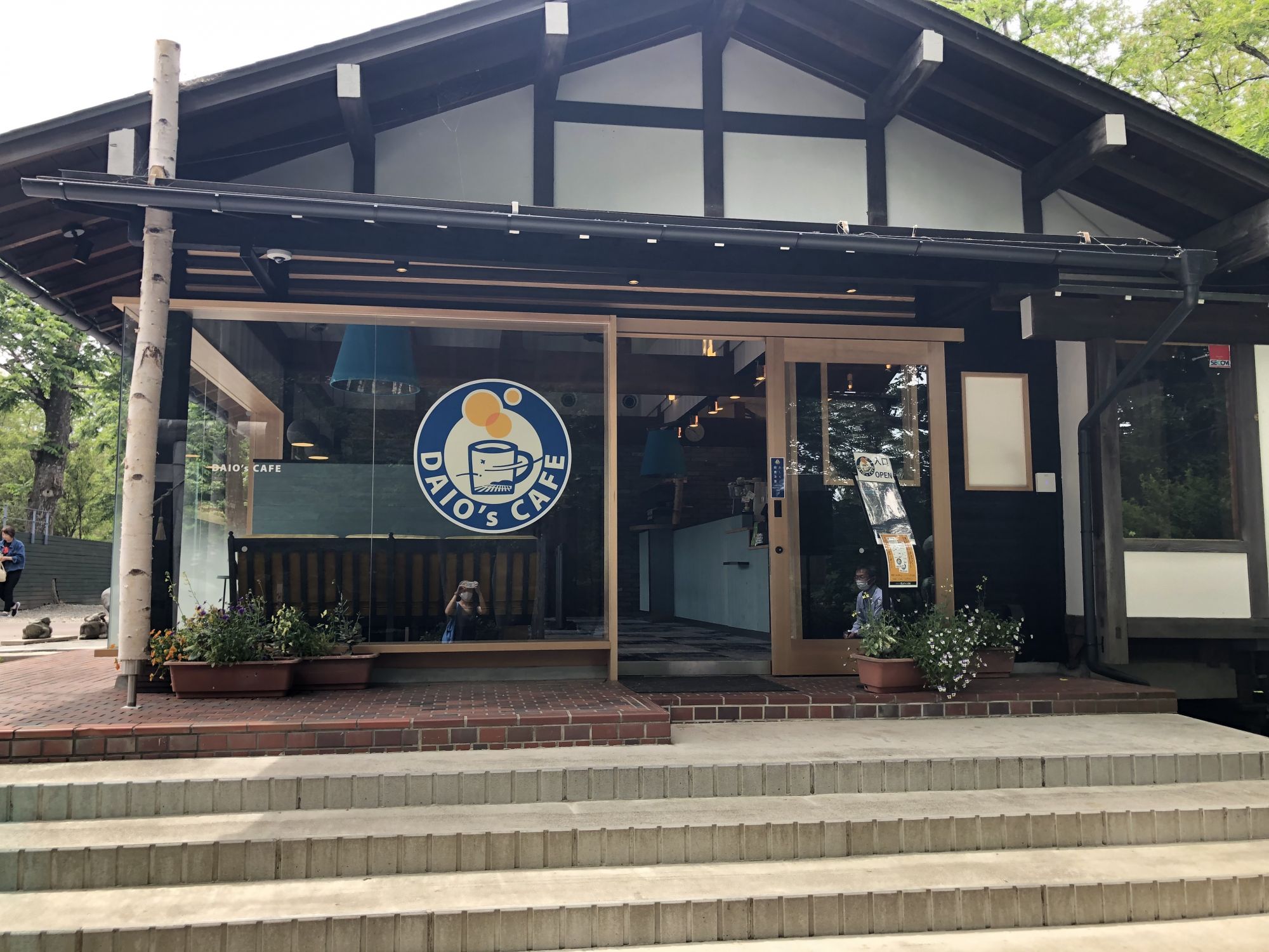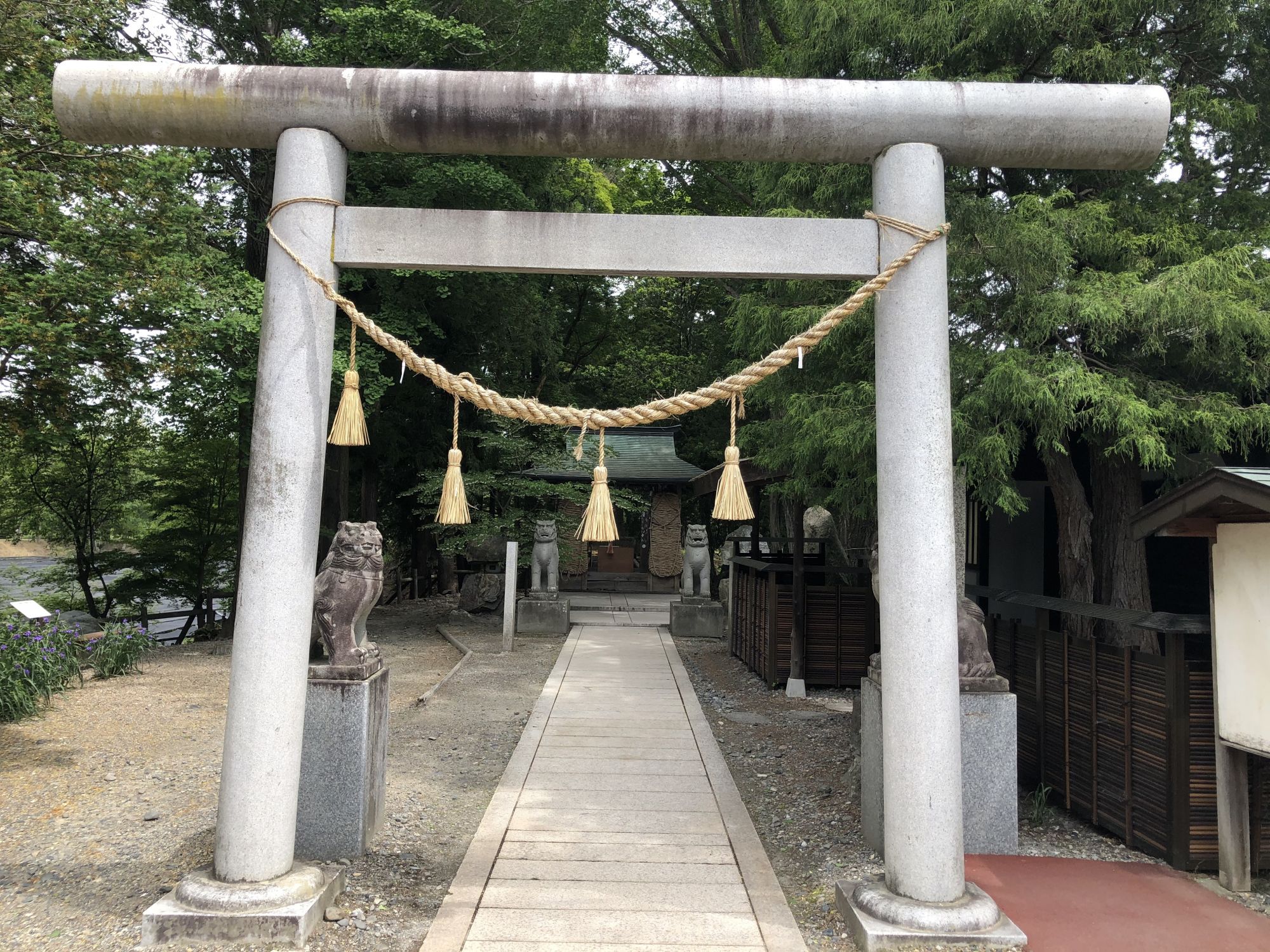 หรือหากจะไม่เดินข้ามสะพานก็สามารถสักการะศาลเจ้าก็ได้ ตรงศาลเจ้าเค้ามีคาเฟ่ให้นั่งรับประทานอาหารด้วย