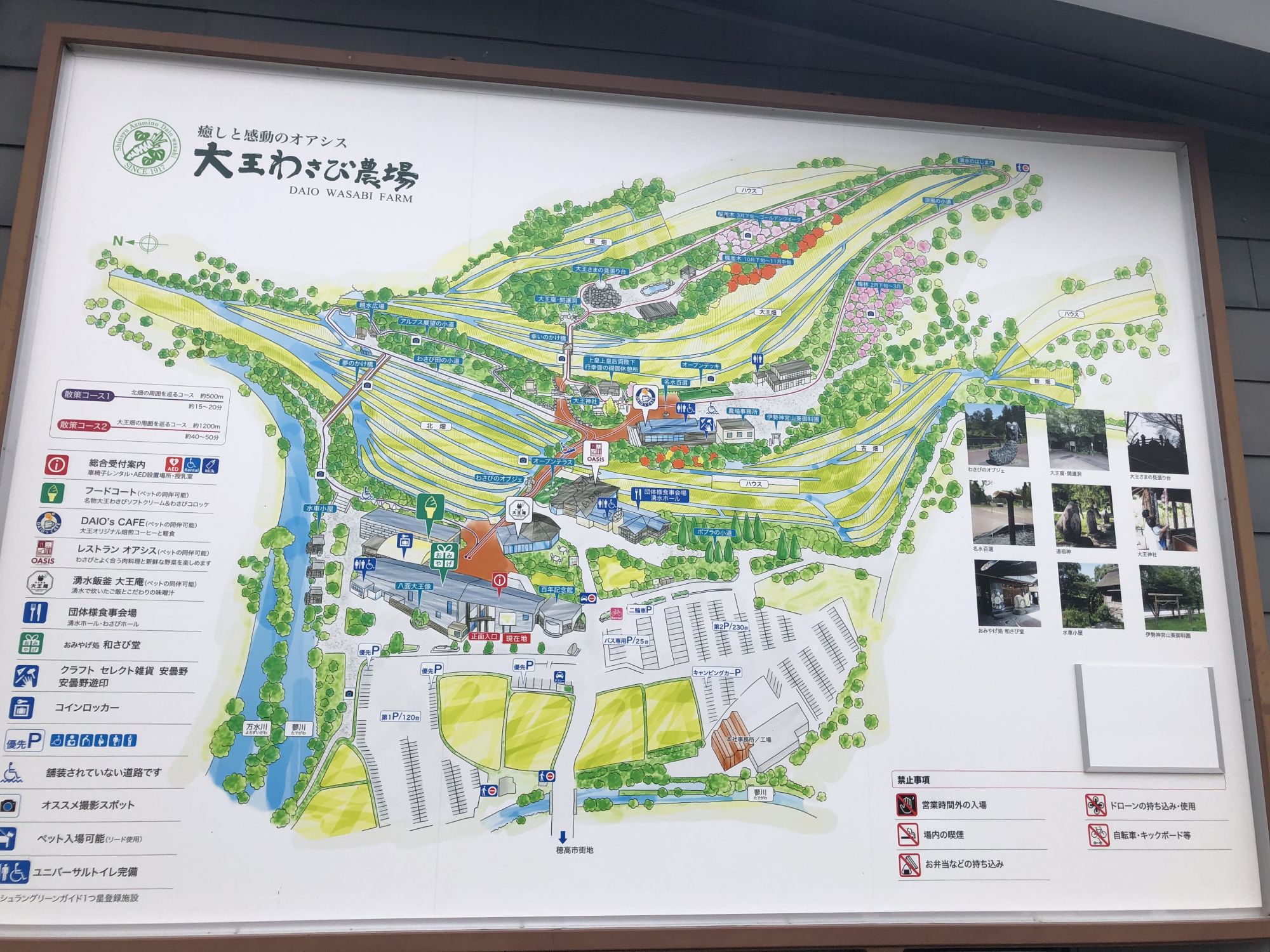 จังหวัดนากาโน่เป็นจังหวัดที่ปลูกวาซาบิมากเป็นอันดับ 1 ในประเทศญี่ปุ่น และไร่วาซาบิส่วนใหญ่จะอยู่ที่อำเภออะซูมิโน่ซึ่งอยู่ติดกับอำเภอมัตสึโมโต้ สามารถเดินทางโดยรถยนต์ได้ในเวลาไม่ถึงครึ่งชั่วโมง