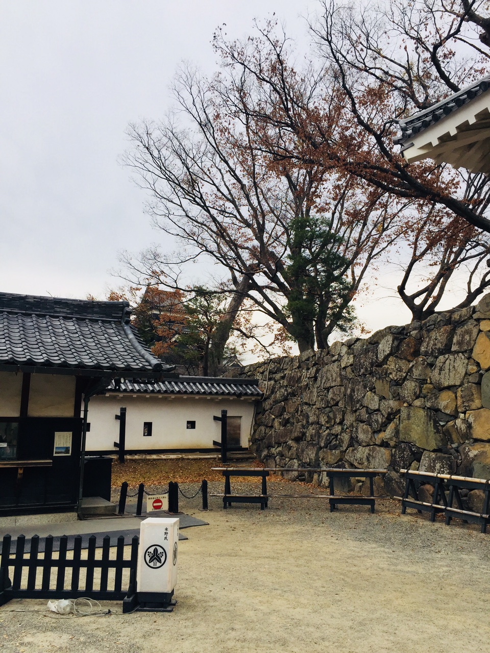 ตรงทางเข้าปราสาทก็มีร้านขายของฝากและขายขนมโอะยากิซึ่งเป็นของว่างประจำท้องถิ่นของผู้คนในบริเวณนี้ ขนมโอะยากิเป็นขนมที่ห่อด้วยแป้งสาลีสอดไส้ต่างๆ ได้แก่ ไส้มิโซะ ไส้มะเขือผัดมิโซะ ไส้ผักดองโนซาวานะ ไส้ถั่วกวน เป็นต้น จากนั้นนำขนมที่ห่อแล้วใส่ลงในกระทะแล้วเติมนำ้เล็กน้อย เมื่อแป้งสุกพลิกกลับไปมาจนด้านข้างเป็นสีเหลือง มีกลิ่นหอม