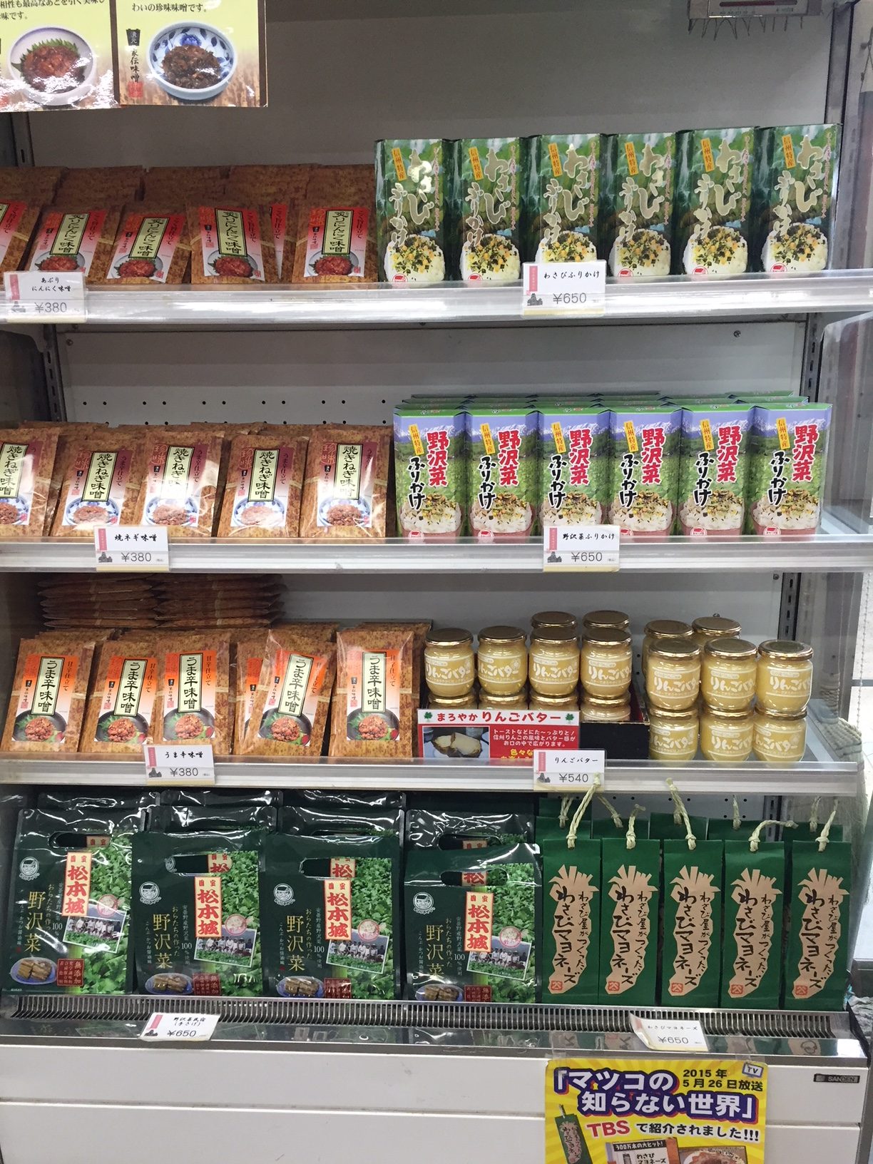 นอกจากขนมแล้วของฝากที่น่าสนใจอีกอย่างหนึ่งก็คือ “ฟุริคาเค” หรือผงโรยข้าว จะโรยบนข้าวสวยร้อนๆ หรือโรยบนข้าวต้มก็อร่อย รสยอดนิยมของที่นี่ได้แก่ รสมิโซะ เนื่องจากนากาโน่เป็นแหล่งผลิตมิโซะขนาดใหญ่เป็นอันดับ 1 ของประเทศญี่ปุ่น และรสวาซาบิ เนื่องจากมัตสึโมโต้อยู่ติดกับเมืองอะซูมิโน่ซึ่งมีฟาร์มเพาะวาซาบิที่ใหญ่ที่สุดในประเทศญี่ปุ่นนั่นเอง