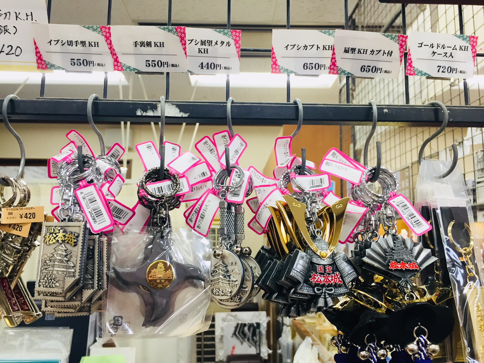 นอกจากนี้ ที่ร้านขายของฝากในปราสาทมัตสึโมโต้ยังมีความพิเศษกว่าที่อื่นๆ ตรงที่มีหมวกนักรบขนาดเล็กและดาบญี่ปุ่นจำหน่ายอีกด้วย