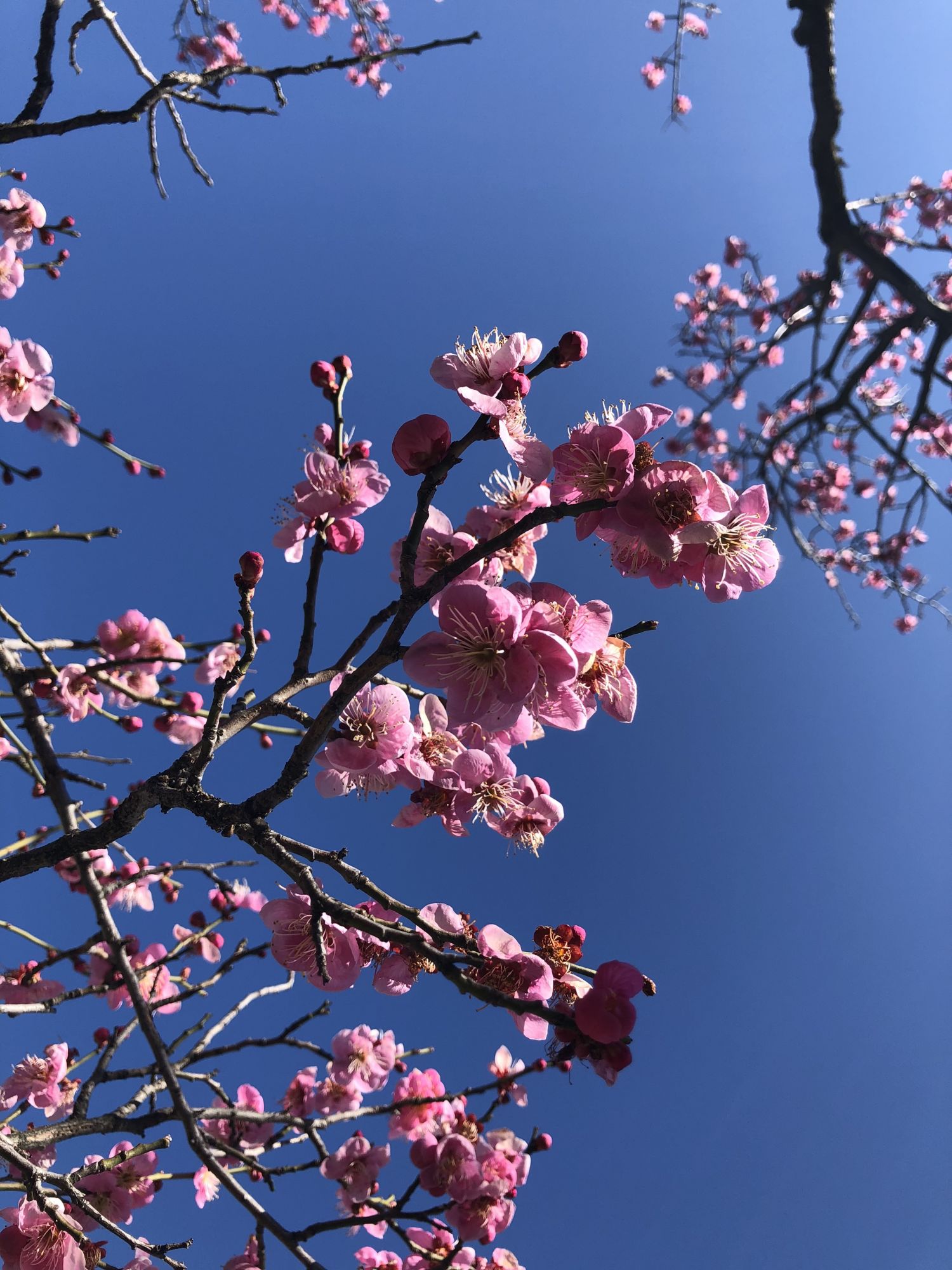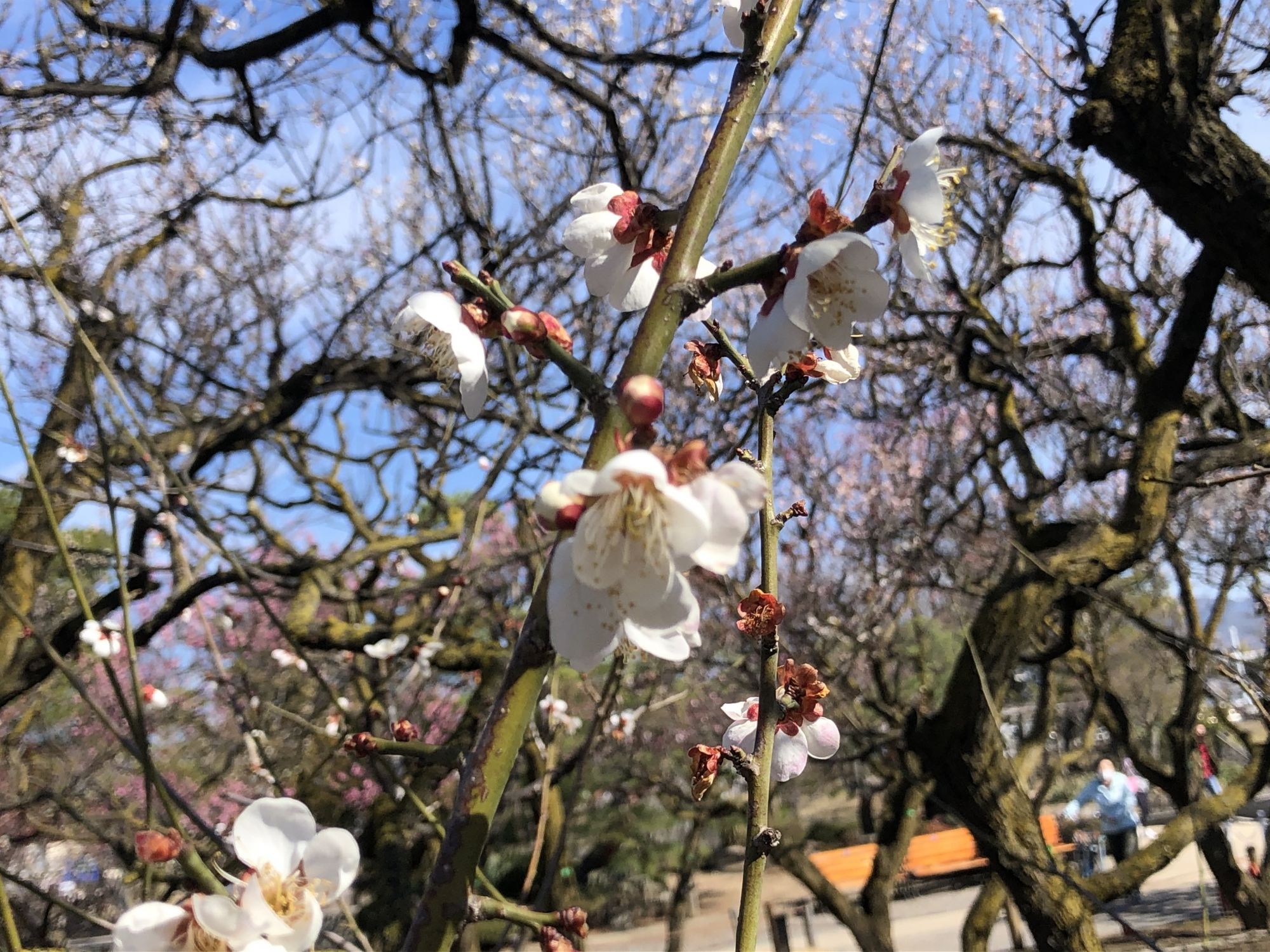 ด้านล่างนี้เป็นภาพดอกบ๊วย (Plum) นะคะ วิธีสังเกตุดอกบ๊วยกับดอกซากุระอย่างง่ายๆ ให้ดูที่ลักษณะกลีบดอก จำนวนกลีบดอก กลีบดอกบ๊วยจะมีลักษณะโค้งมน กลีบดอกไม่เยอะและไม่ซ้อนกันแบบซากุระ บ๊วยจะเป็นดอกเดี่ยวๆ ออกดอกไล่ไปตามกิ่ง กลีบดอกจะหนากว่า สามารถมองเห็นเกษรได้ชัดเจน