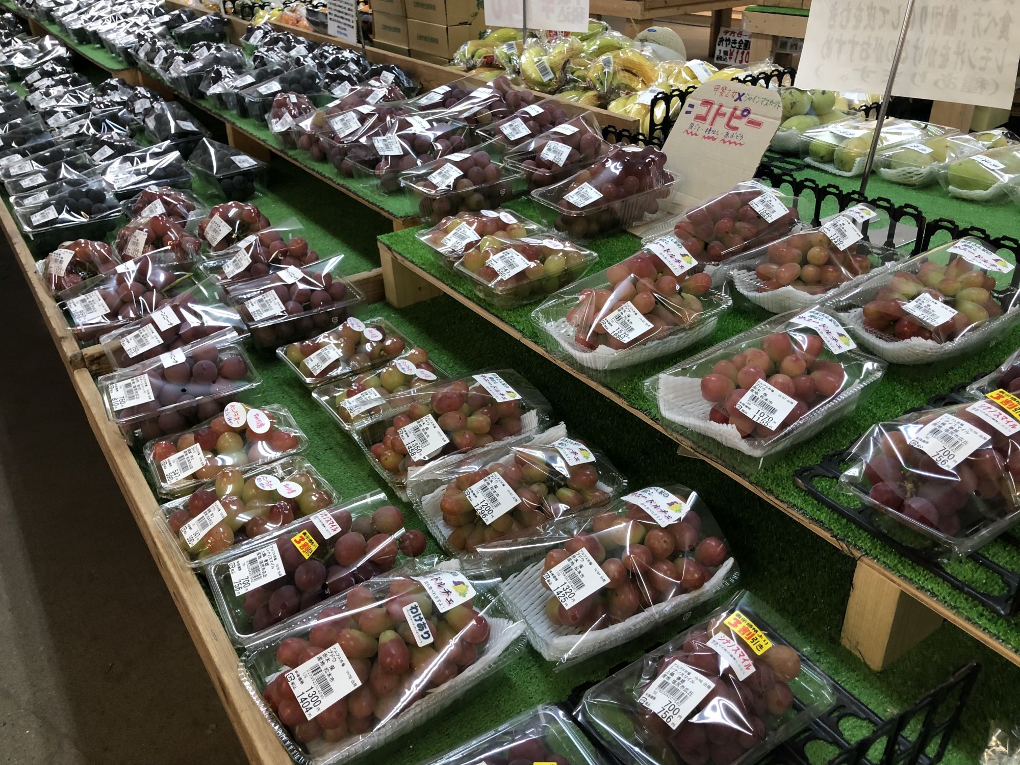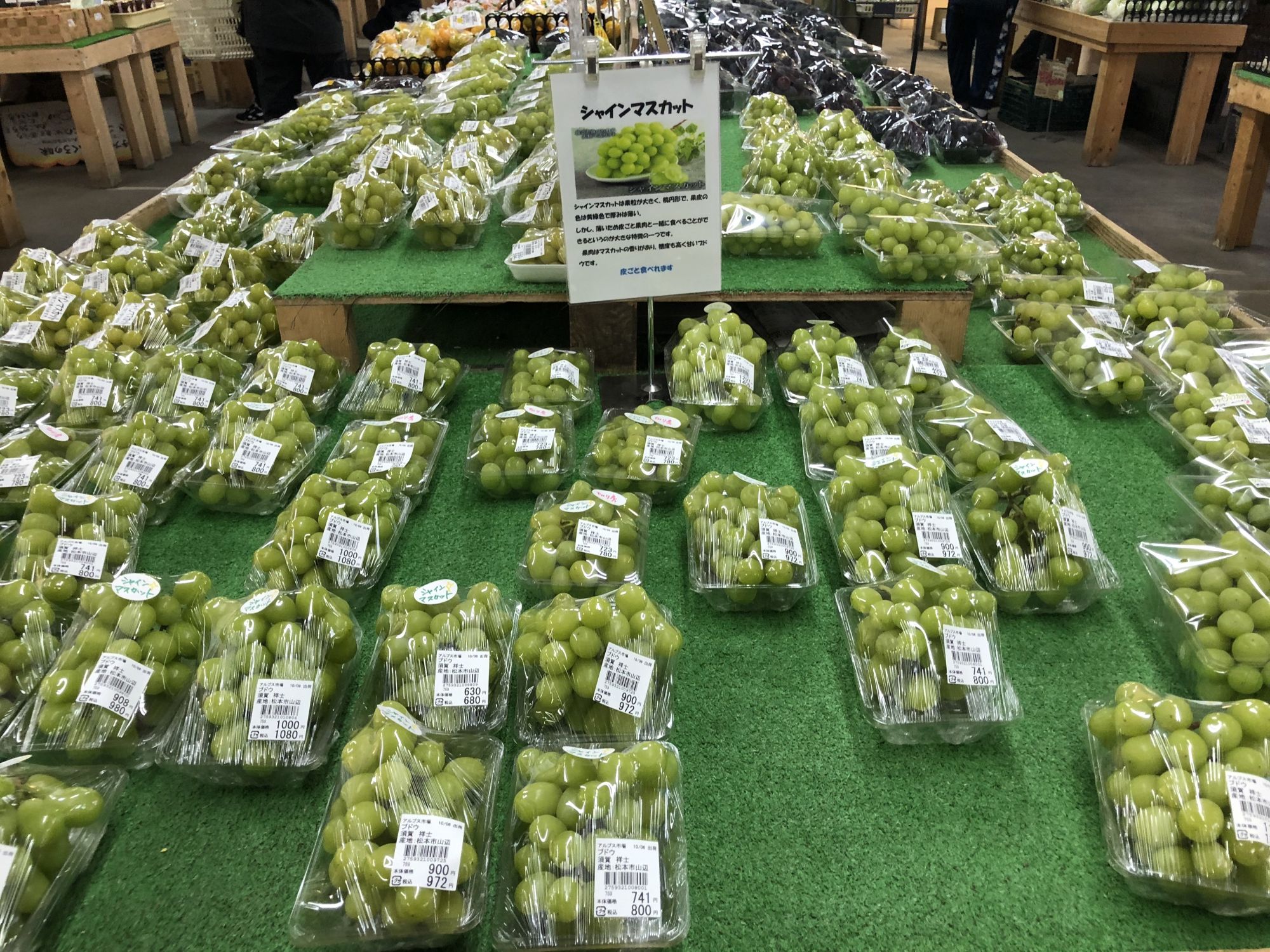 ครั้งนี้ได้มีโอกาสไปซื้อของที่ตลาดขายสินค้าเกษตรกร “อะรุปุสุ อิชิบะ” ภายในตลาดจะมีผัก ผลไม้ตามฤดูกาลราคาไม่แพง ช่วงนี้เป็นช่วงที่องุ่นพันธุ์ต่างๆ ออกเยอะมาก องุ่นอร่อยๆ ราคาไม่แพง มีให้เลือกทั้งพันธุ์ไชน์มัสคัต องุ่นแดง องุ่นม่วงอย่างพันธุ์เคียวโฮและพันธุ์อื่นๆ
