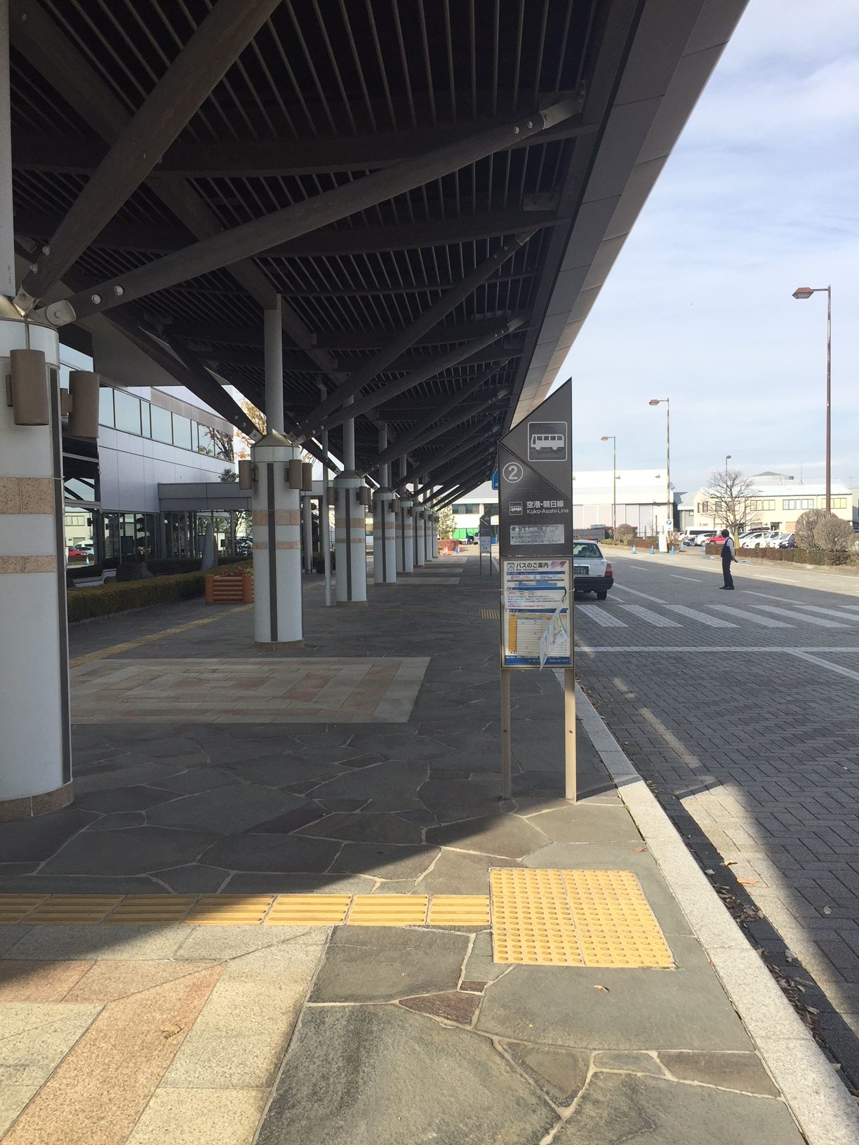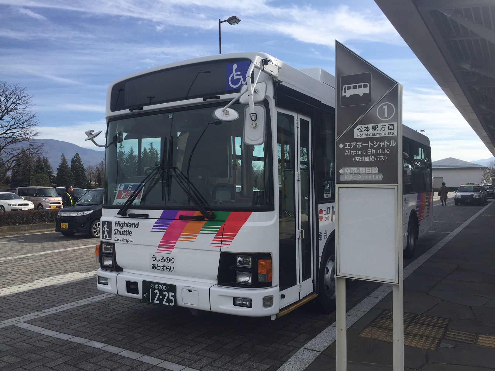 ด้านนอกสนามบินจะมีลานจอดรถและที่สำหรับขึ้นรถแท็กซี่และป้ายขึ้นรถบัสเพื่อเข้าสู่ตัวเมืองมัตสึโมโต้และไปยังตัวจังหวัดนากาโน่