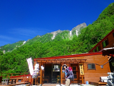 1日目、僕は朝6時に乗鞍高原を出発。上高地着で7時過ぎから岳沢への登山道を登って行きます! そして、この「岳沢小屋」に到着したのは9時過ぎ・・・。この先には水場が全く無いのでお水を補給させて頂き、いよいよヴァリエーションルートの「天狗沢」へ登って行きました。