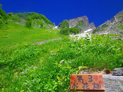 この「天狗沢」から先は上級者のみのルートと書きましたが、途中の「お花畑」までは登山道もかなり綺麗に整備されていて、夏のシーズンには高山植物の花々が咲いて、とても美しい場所になります。この「天狗沢のお花畑」までなら、通常の登山者でも大丈夫です! 花のシーズンには一度は来る価値があると思います。