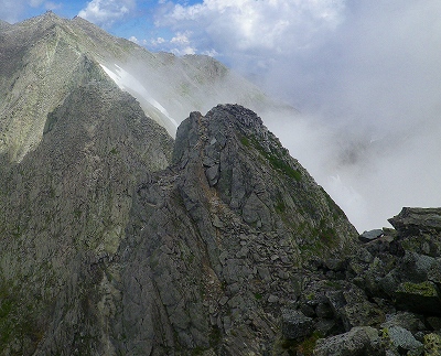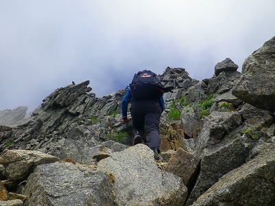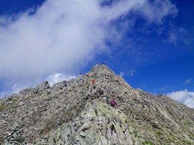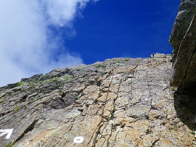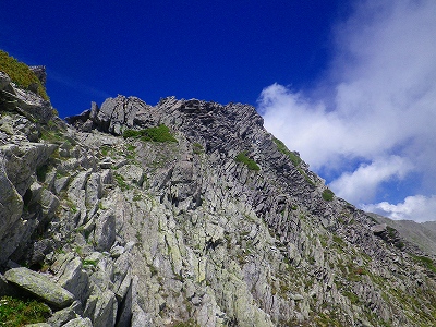 この「馬の背」の登りは約10~15m程なのですが、あまりにもスッパリと切れ落ちている細くて急な岩場だったので、さすがに僕もゾクゾクしてしまいました!!・・・・。このルートを逆方向に下りで通過することはしたくないな~と思う程でした・・・。
