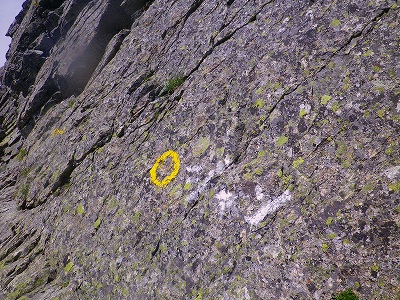 稜線の岩場の登山道ではありますが、ルートの目印であるペンキの「〇」印は、比較的ちゃんと付けられていて、分かり易かったと思います。